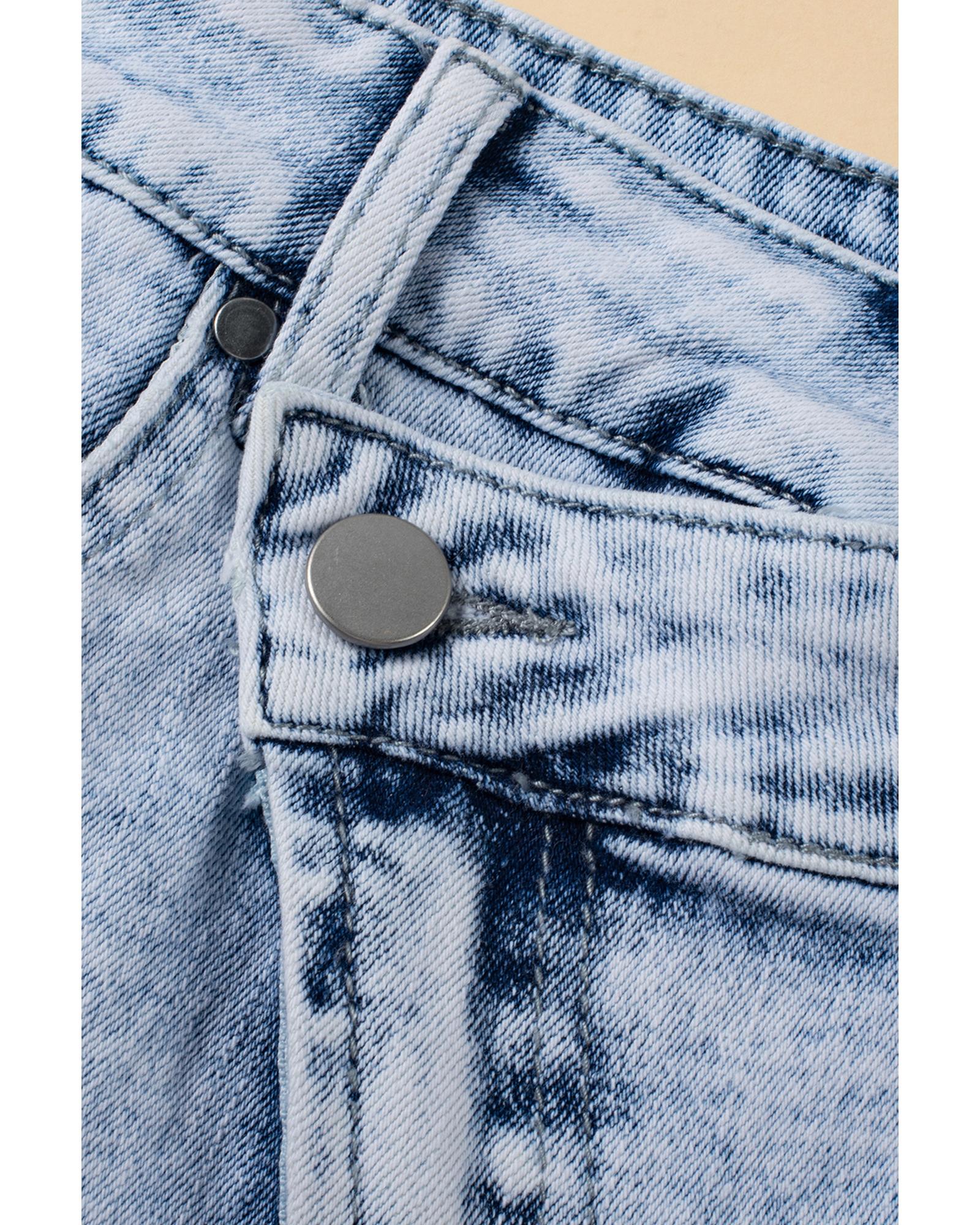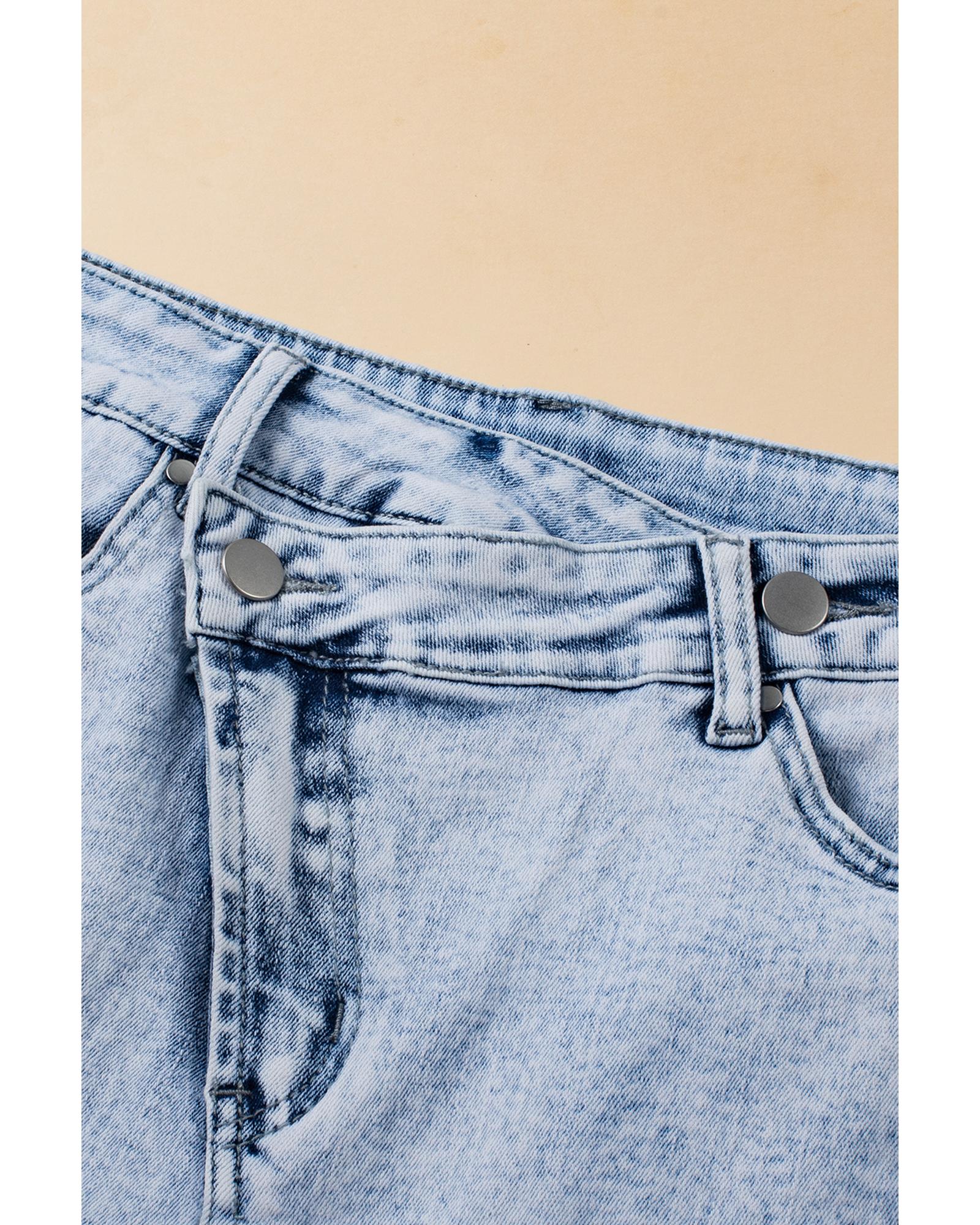 Light Blue Acid Wash Crossed Raw Edge Denim Shorts - 16 US