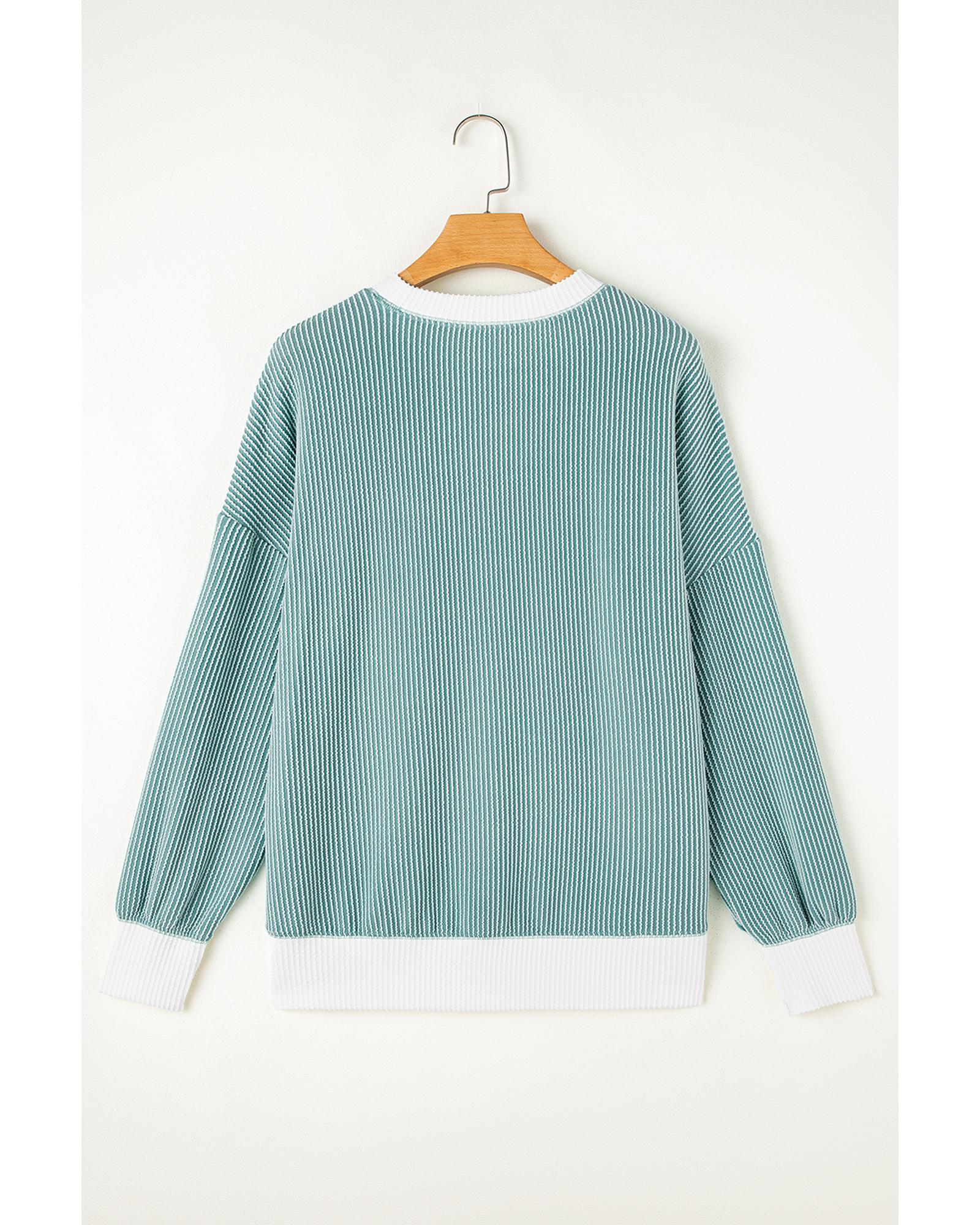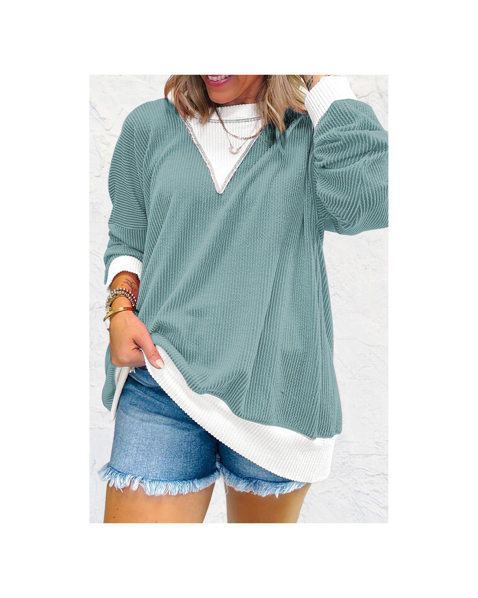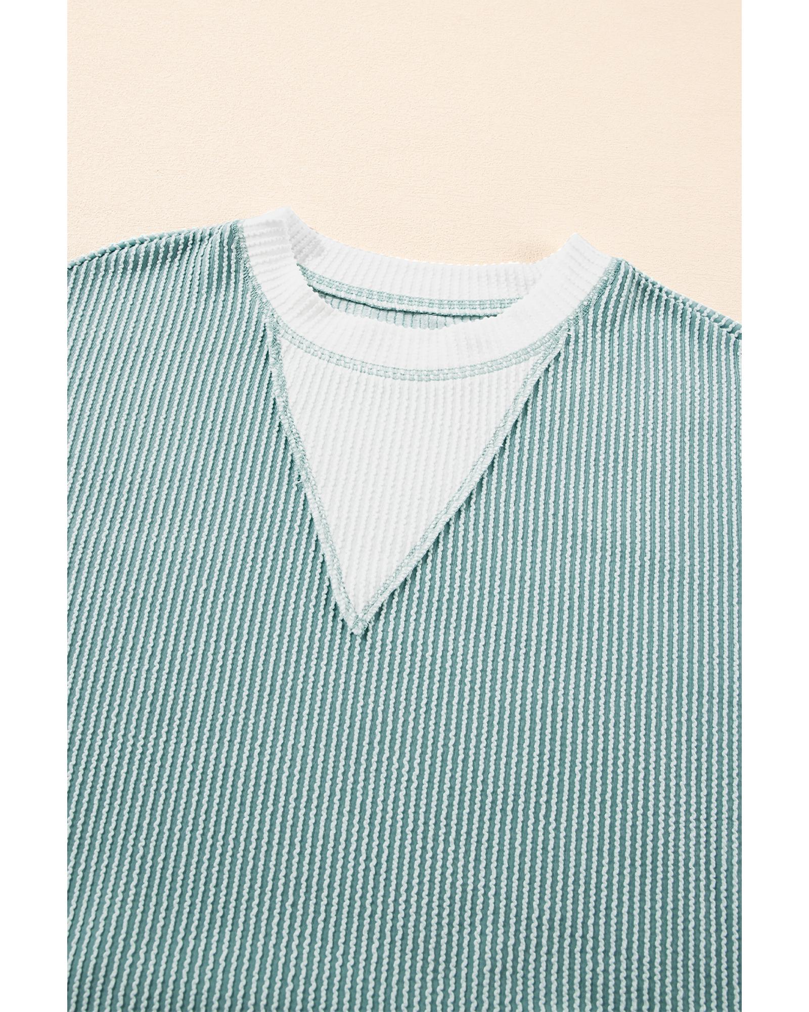 Light Blue Corded Colorblock Drop Shoulder Loose Top – S