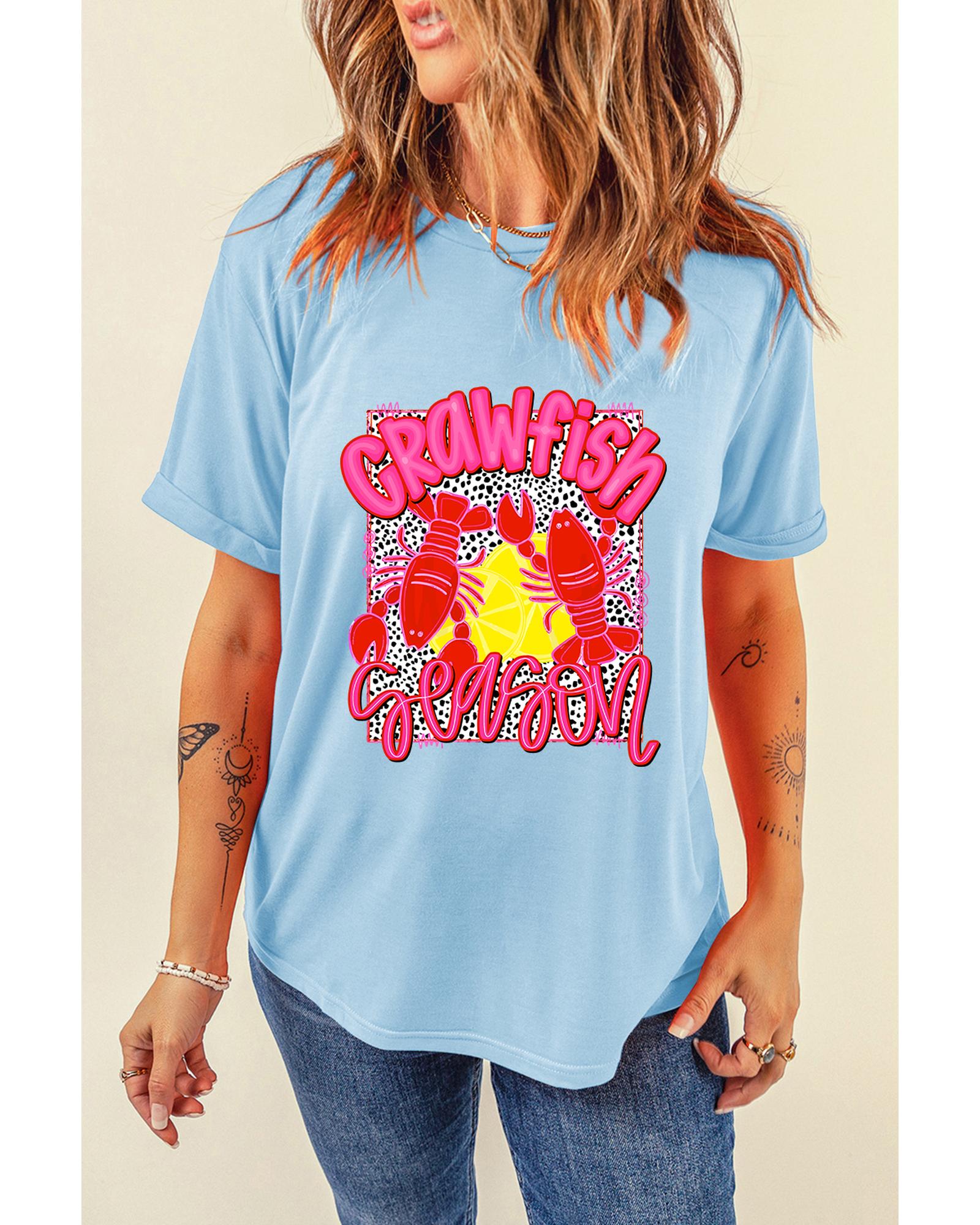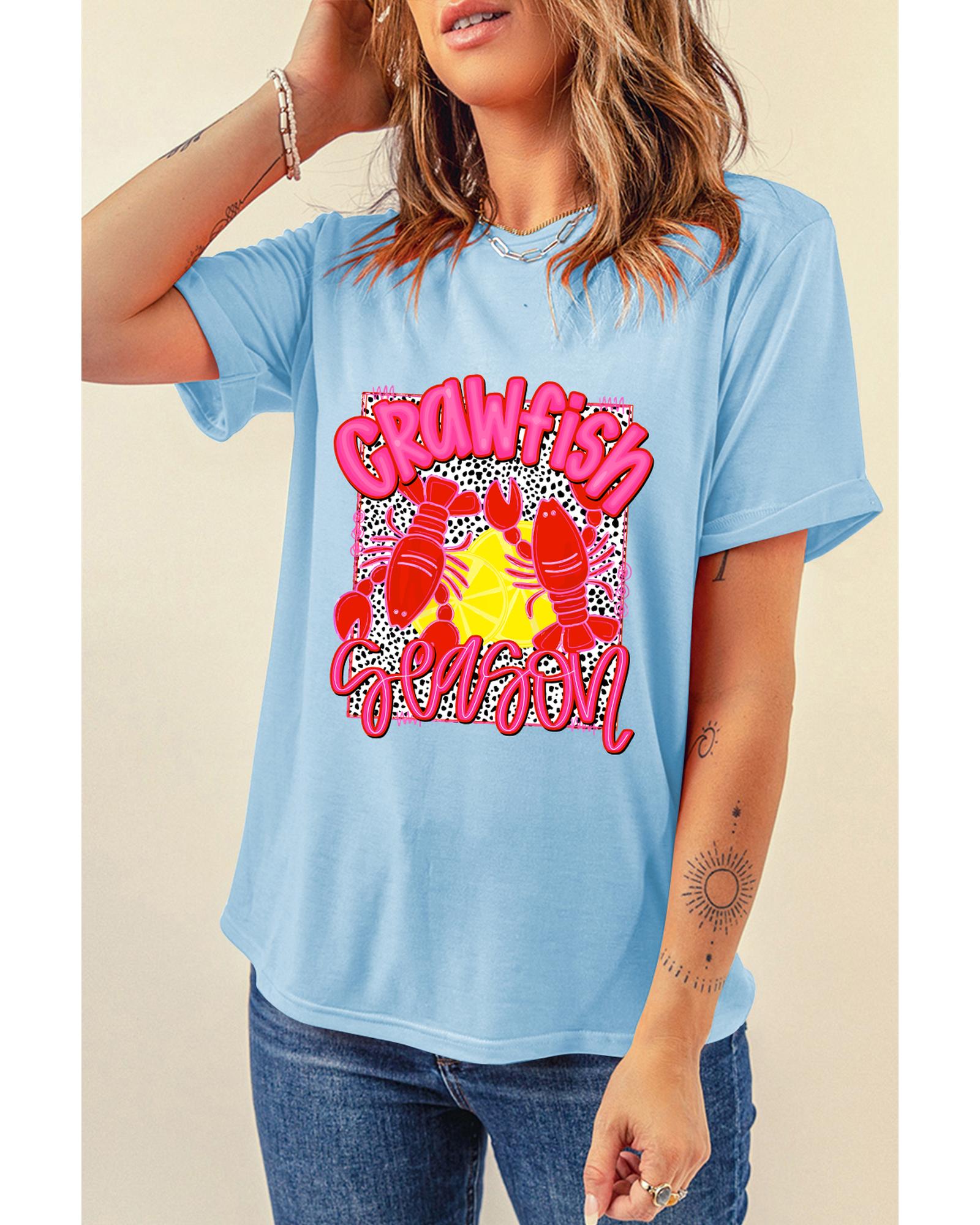Light Blue Crawfish Season Fashion Graphic T Shirt – XL