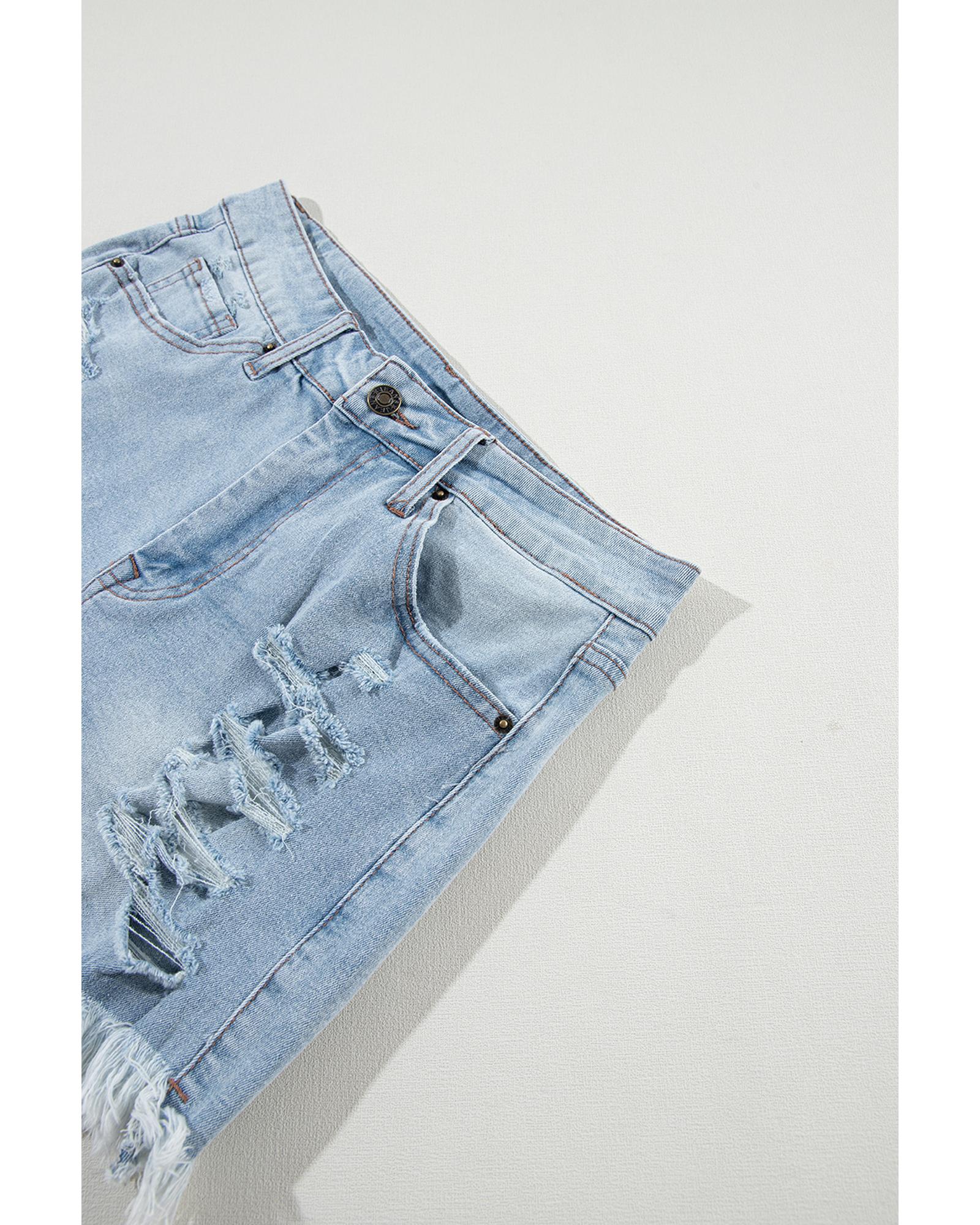 Light Blue Distressed Ripped Raw Hem High Waist Denim Shorts – 12 US