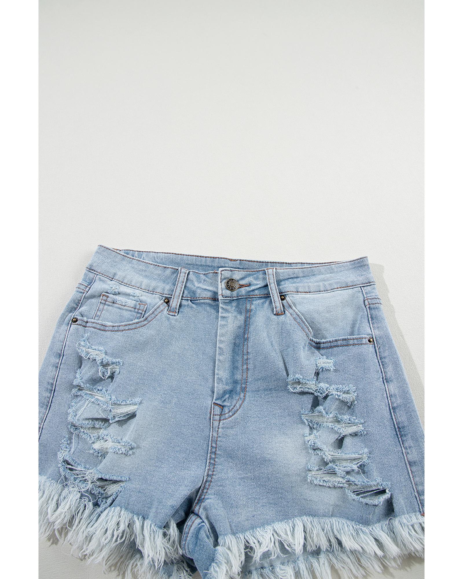 Light Blue Distressed Ripped Raw Hem High Waist Denim Shorts – 16 US