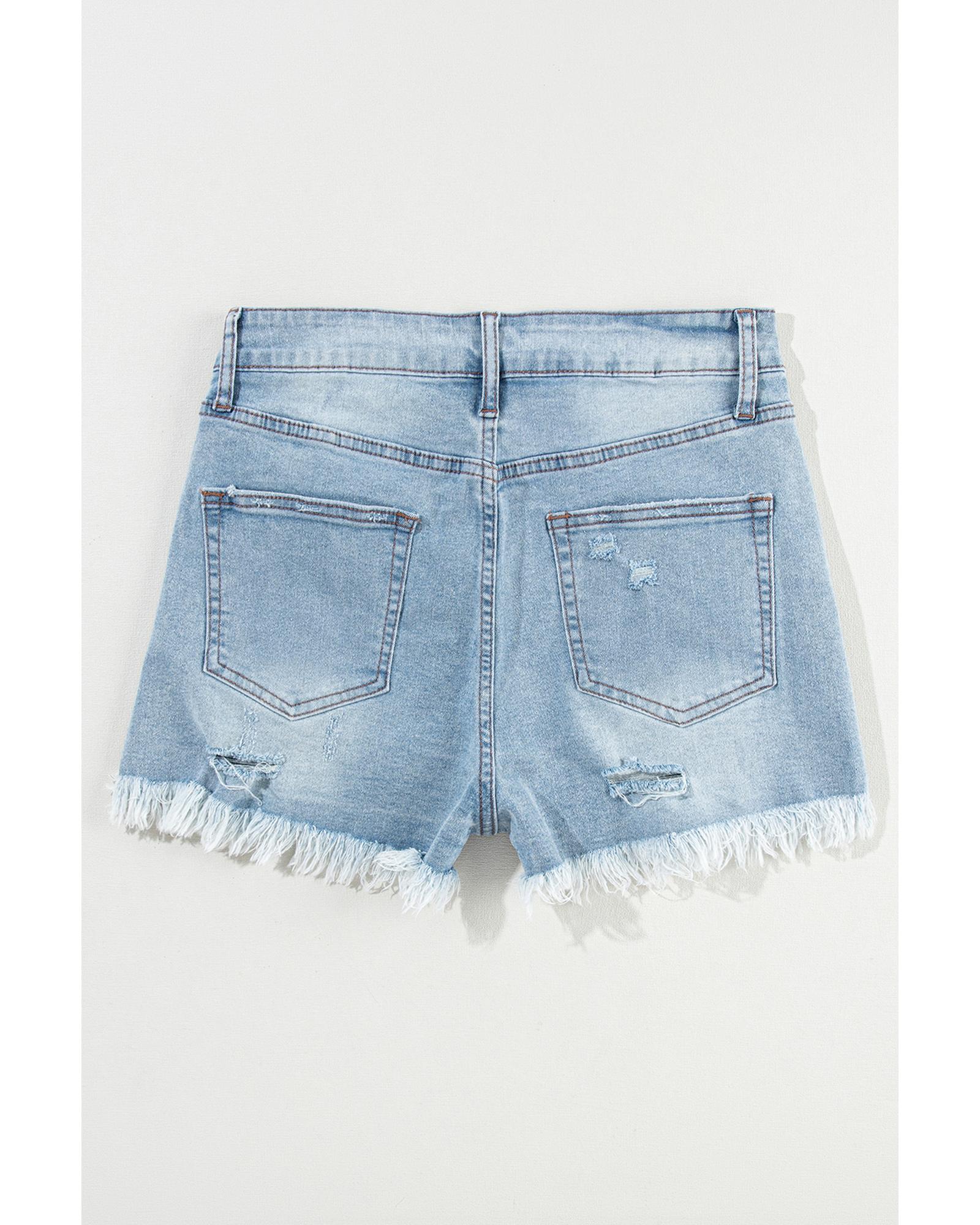 Light Blue Distressed Ripped Raw Hem High Waist Denim Shorts – 8 US