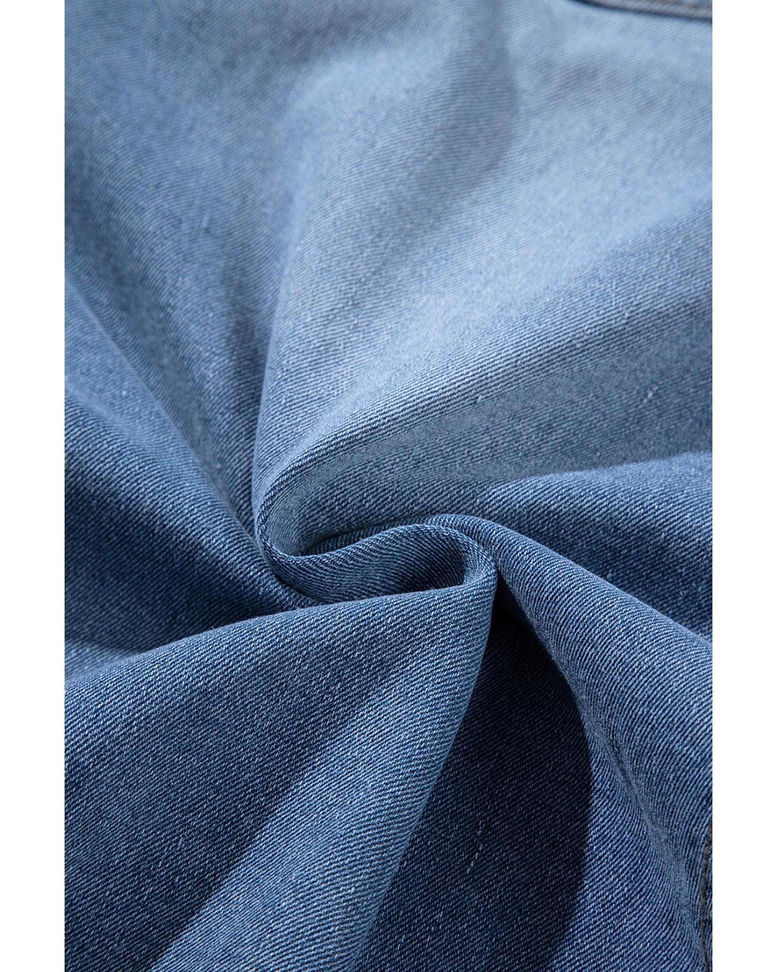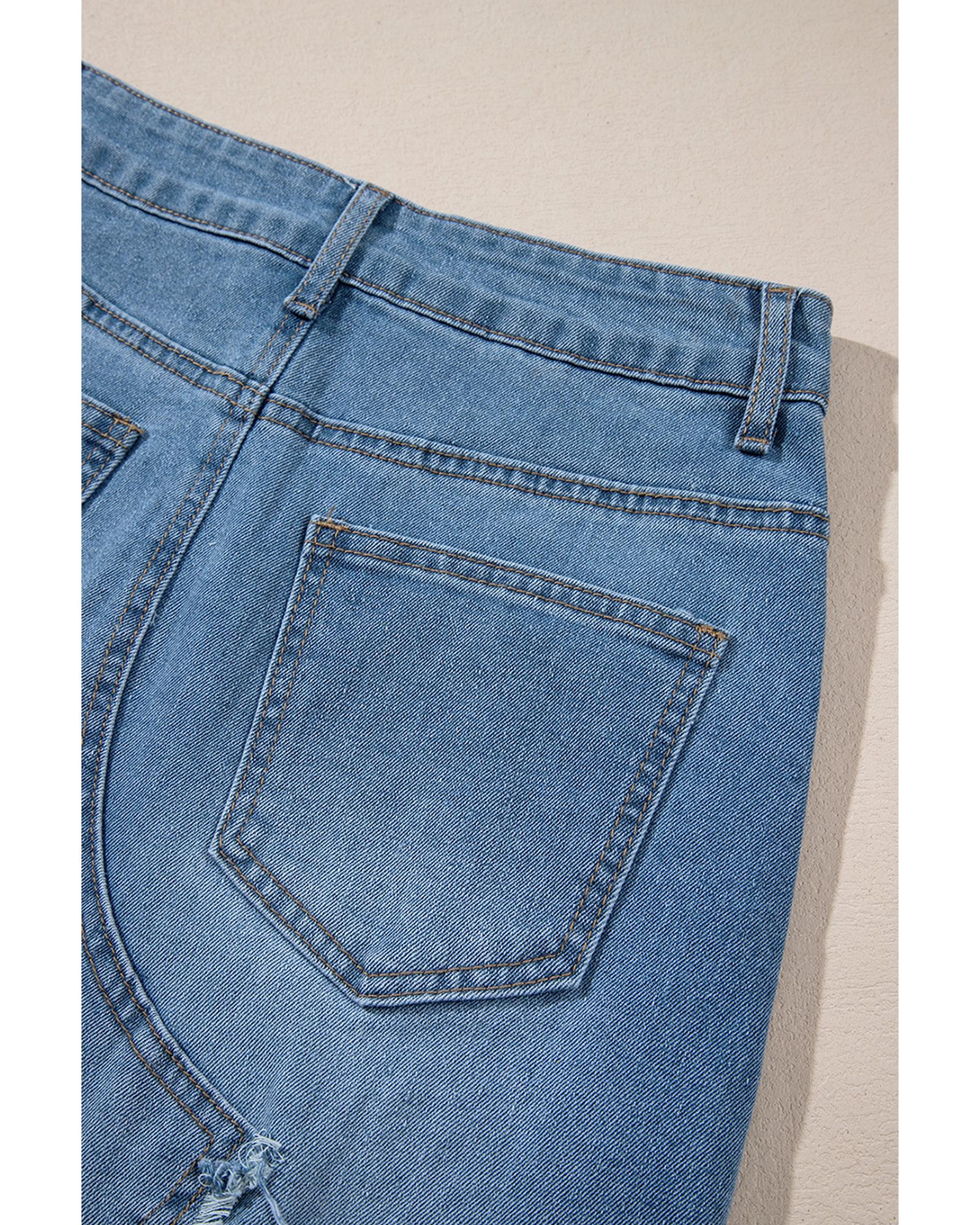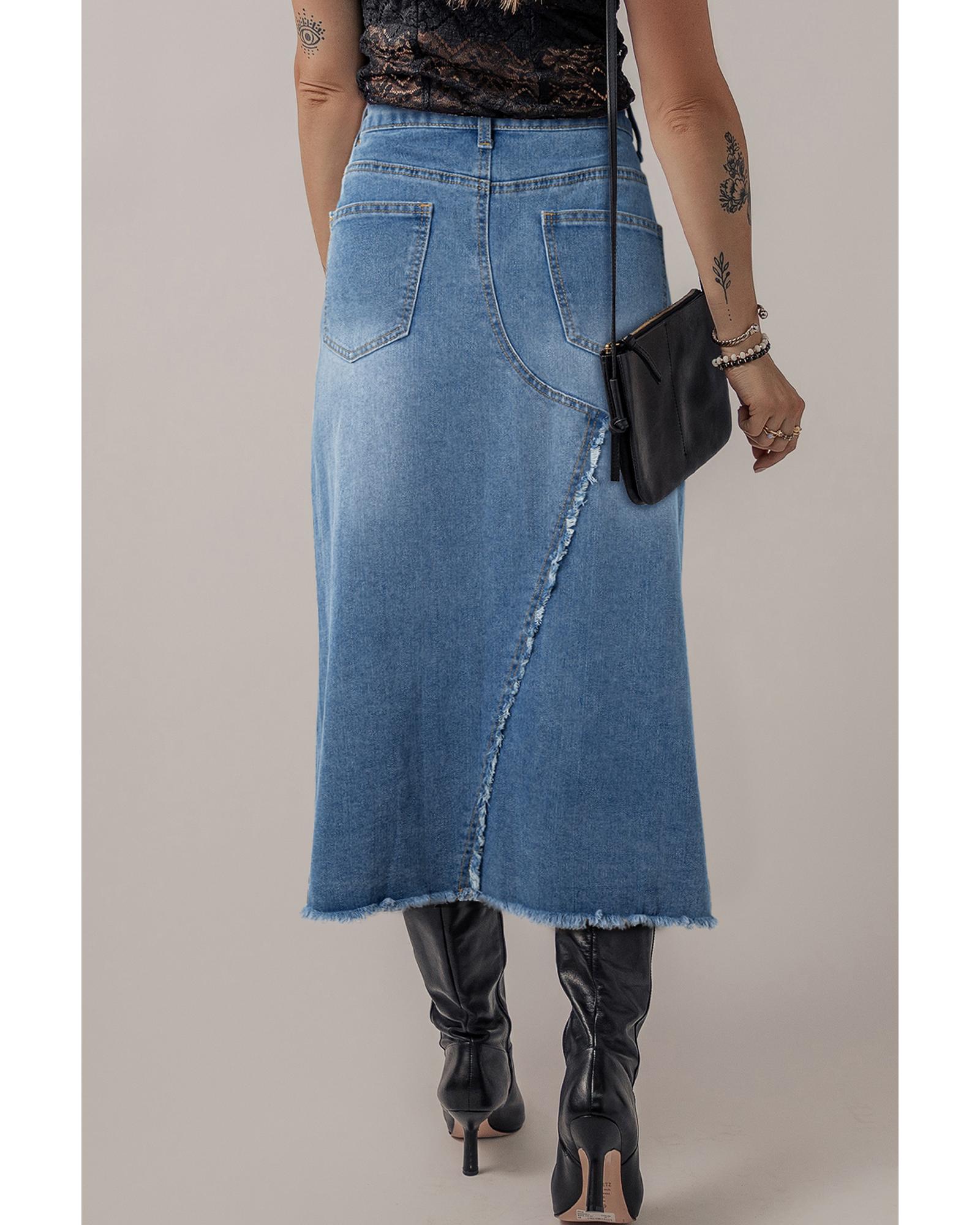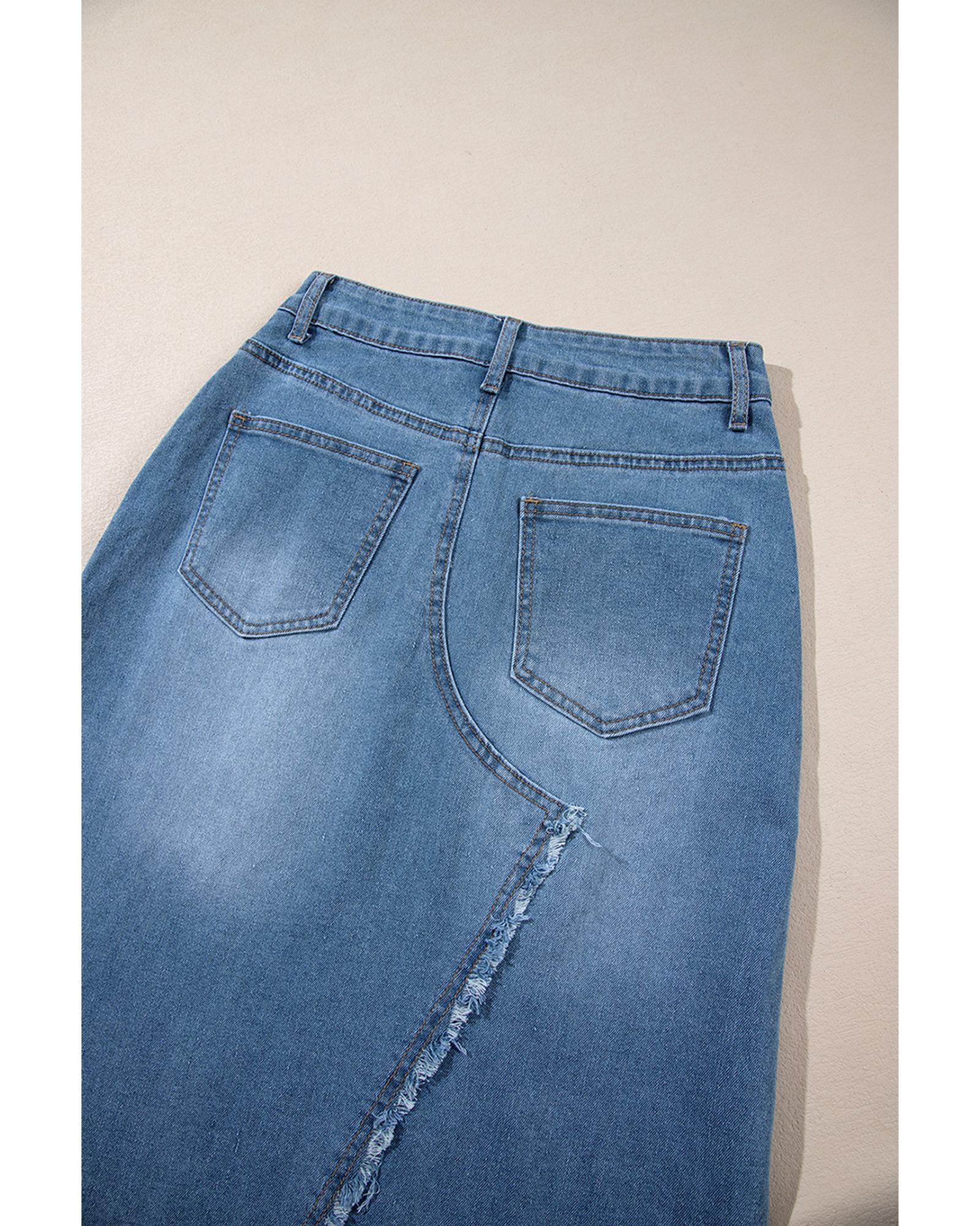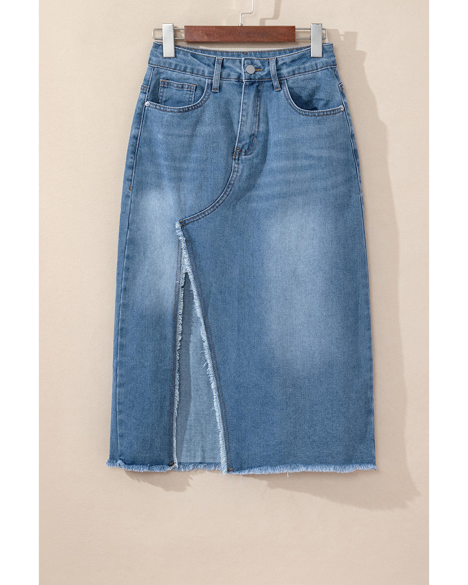 Light Blue Frayed Slit Asymmetric Denim Midi Skirt – XL