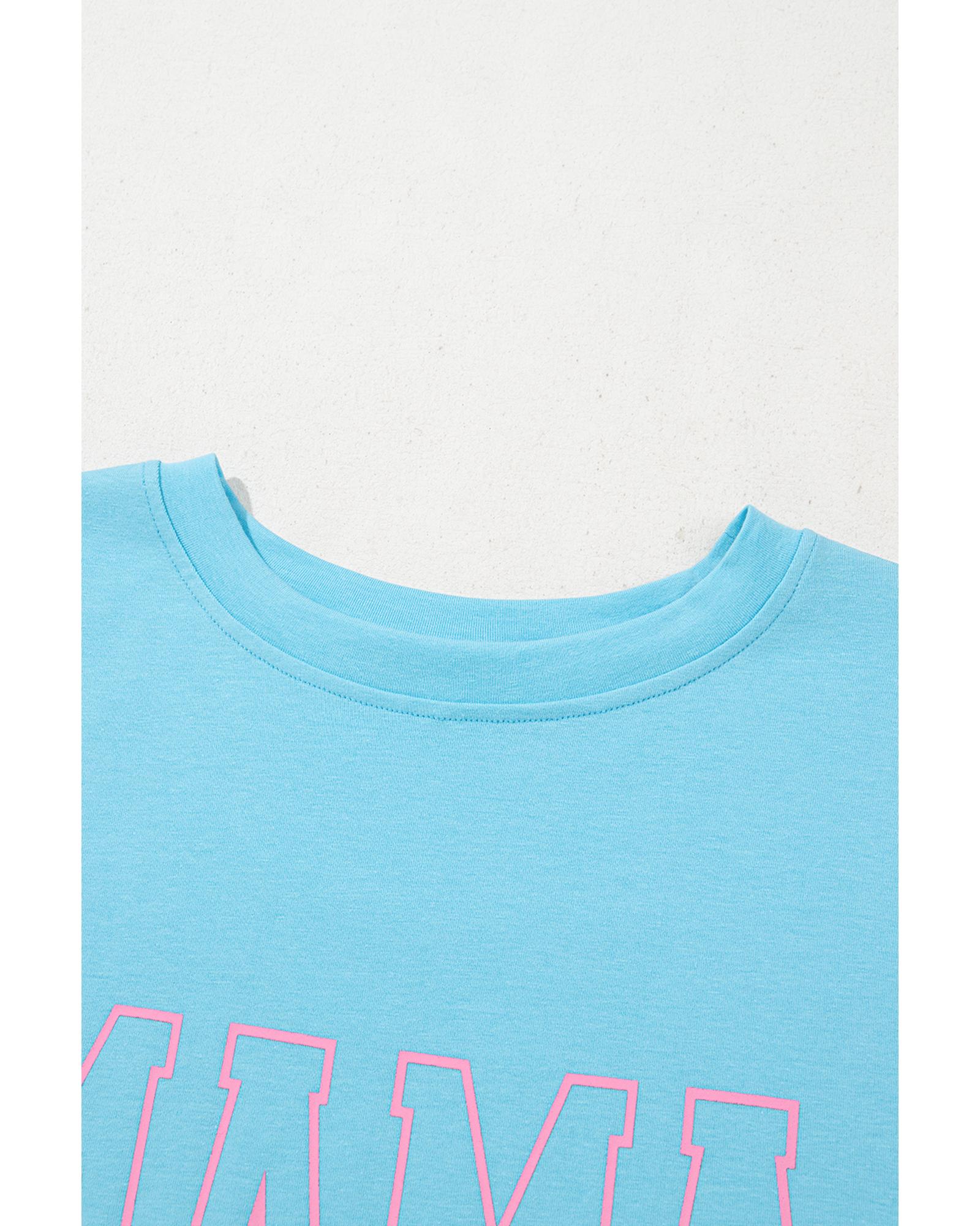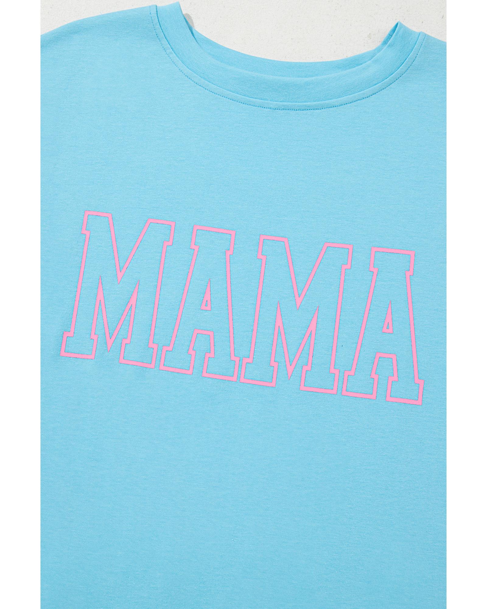 - Light Blue MAMA Letter Graphic Neon T Shirt
