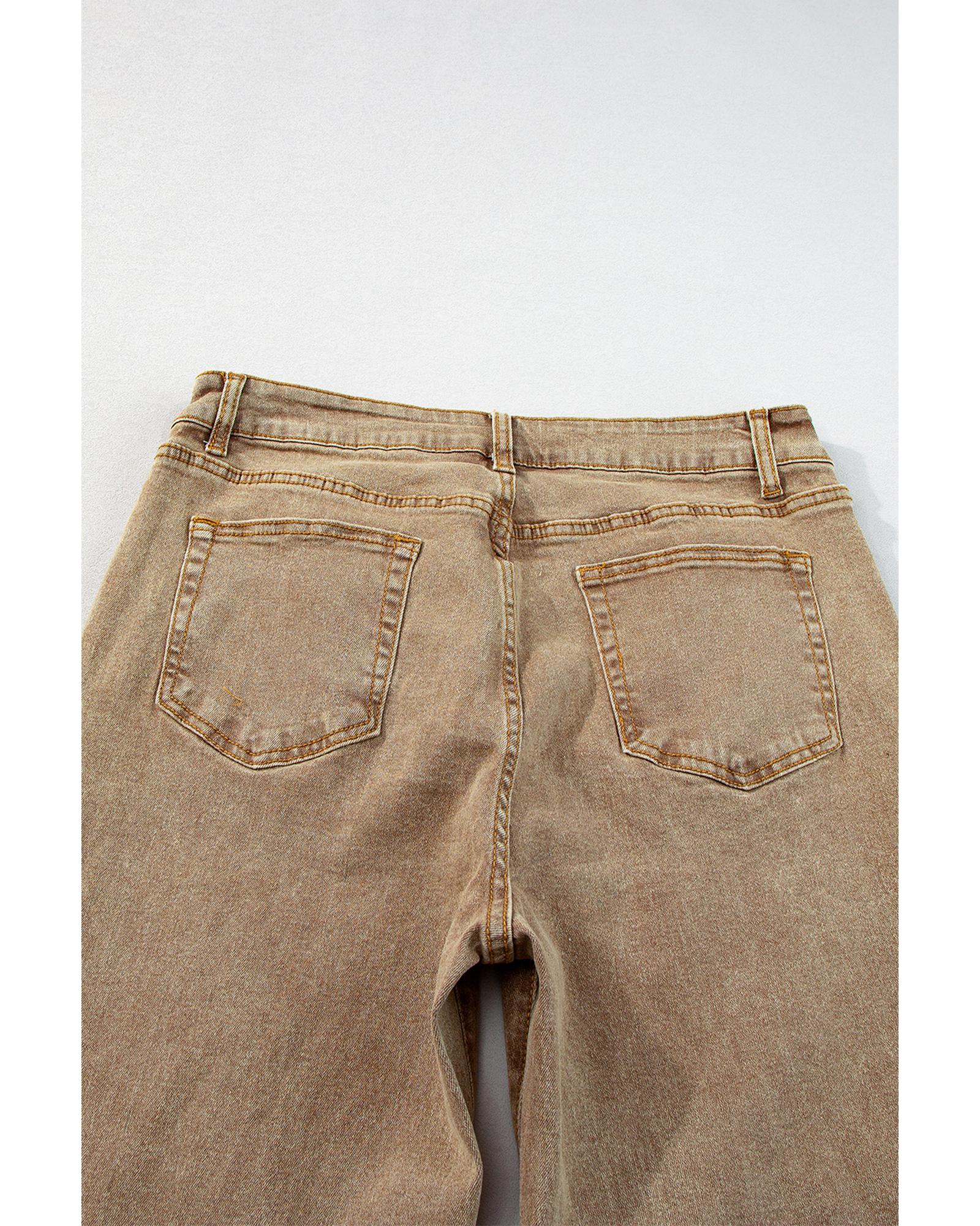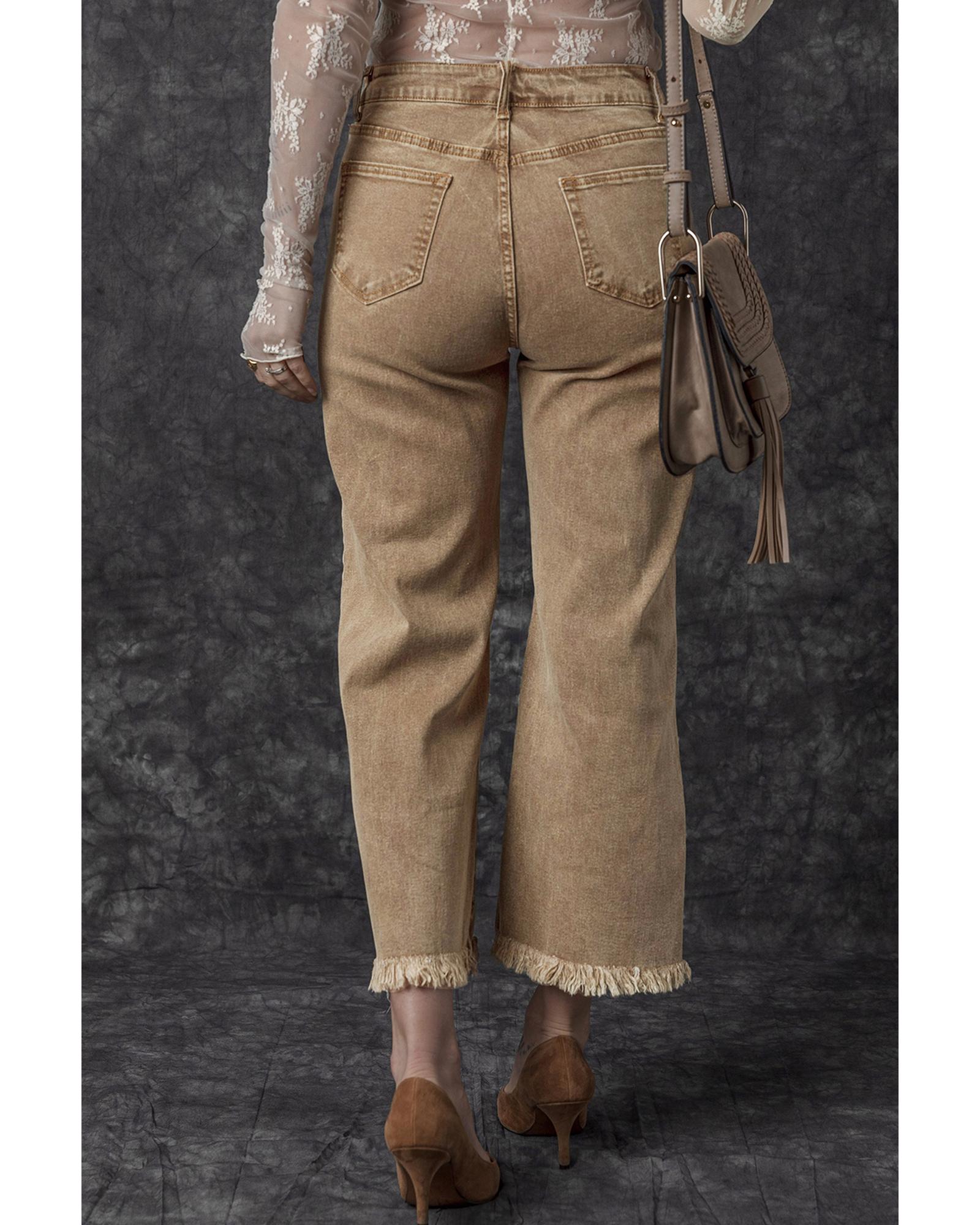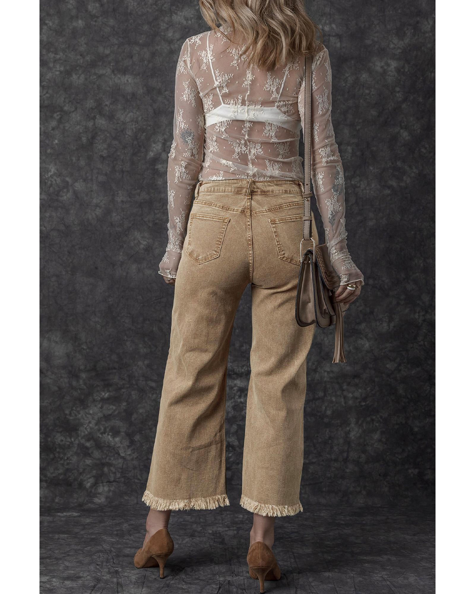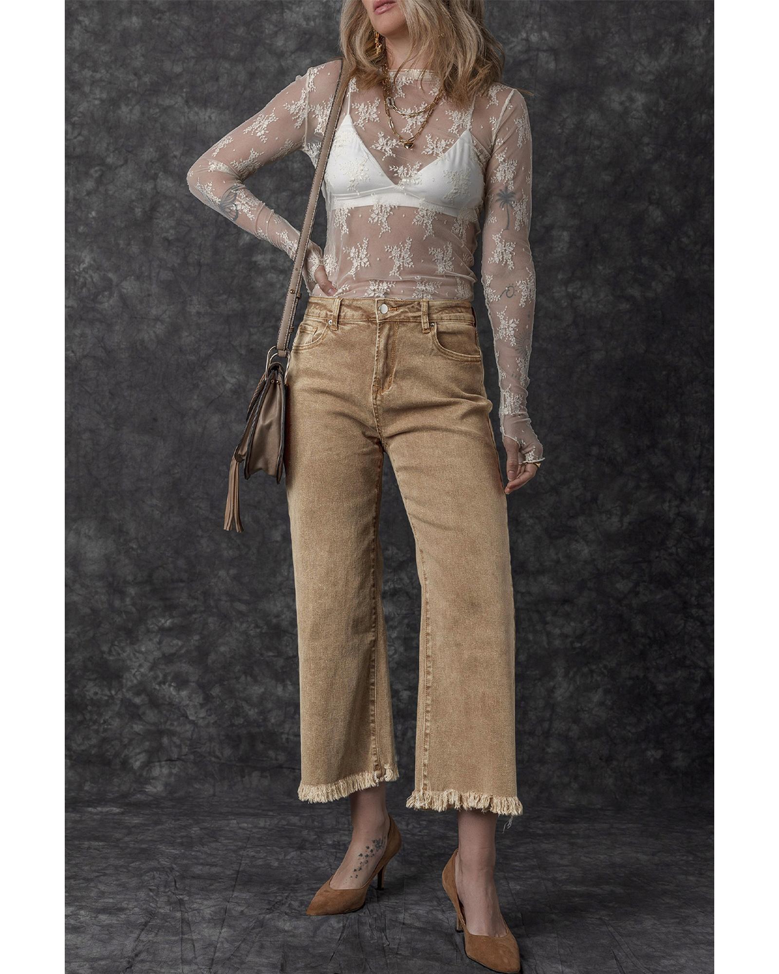 - Light French Beige Acid Washed High Rise Cropped Wide Leg Jeans for women