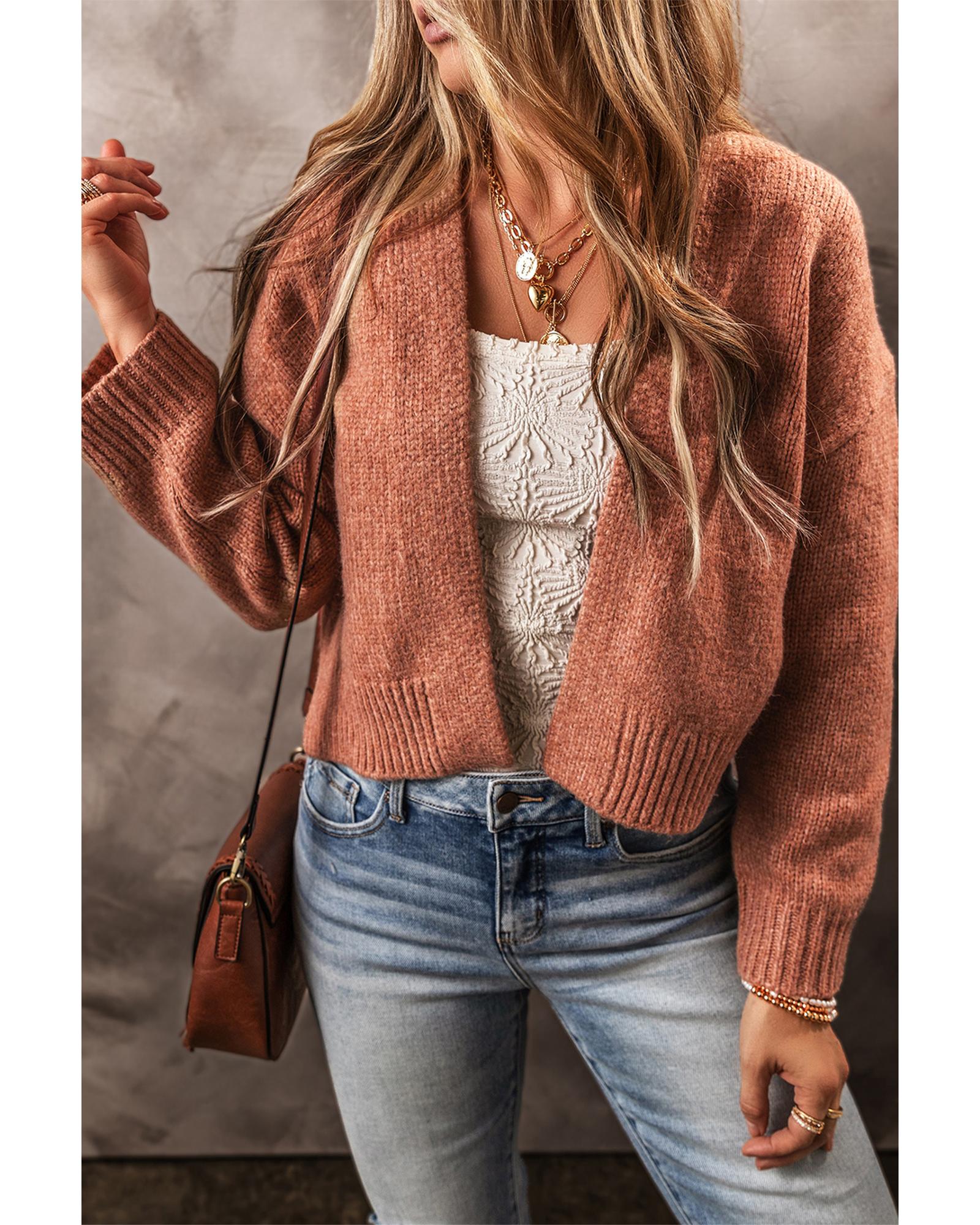 Light French Beige Drop Shoulder Open Front Cropped Cardigan – XL