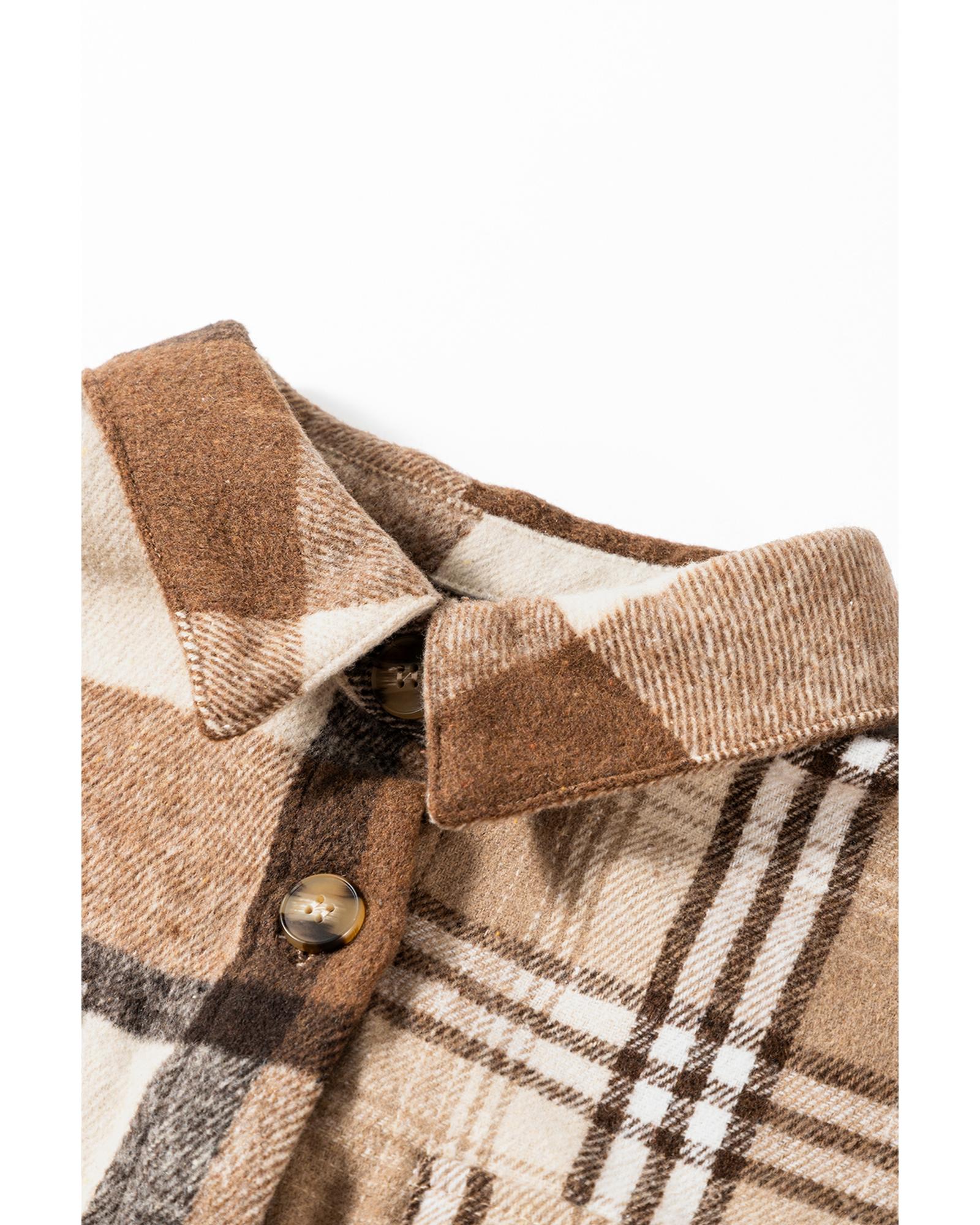 Light French Beige Flannel Plaid Double Flap Pocket Shacket – L
