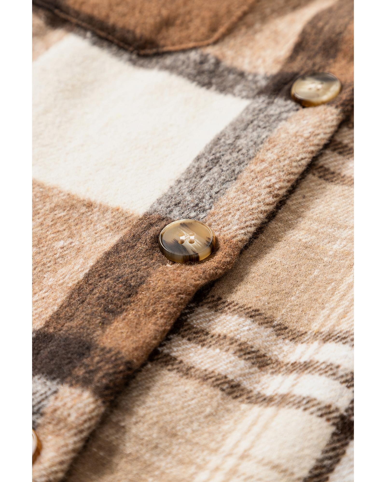 Light French Beige Flannel Plaid Double Flap Pocket Shacket - S
