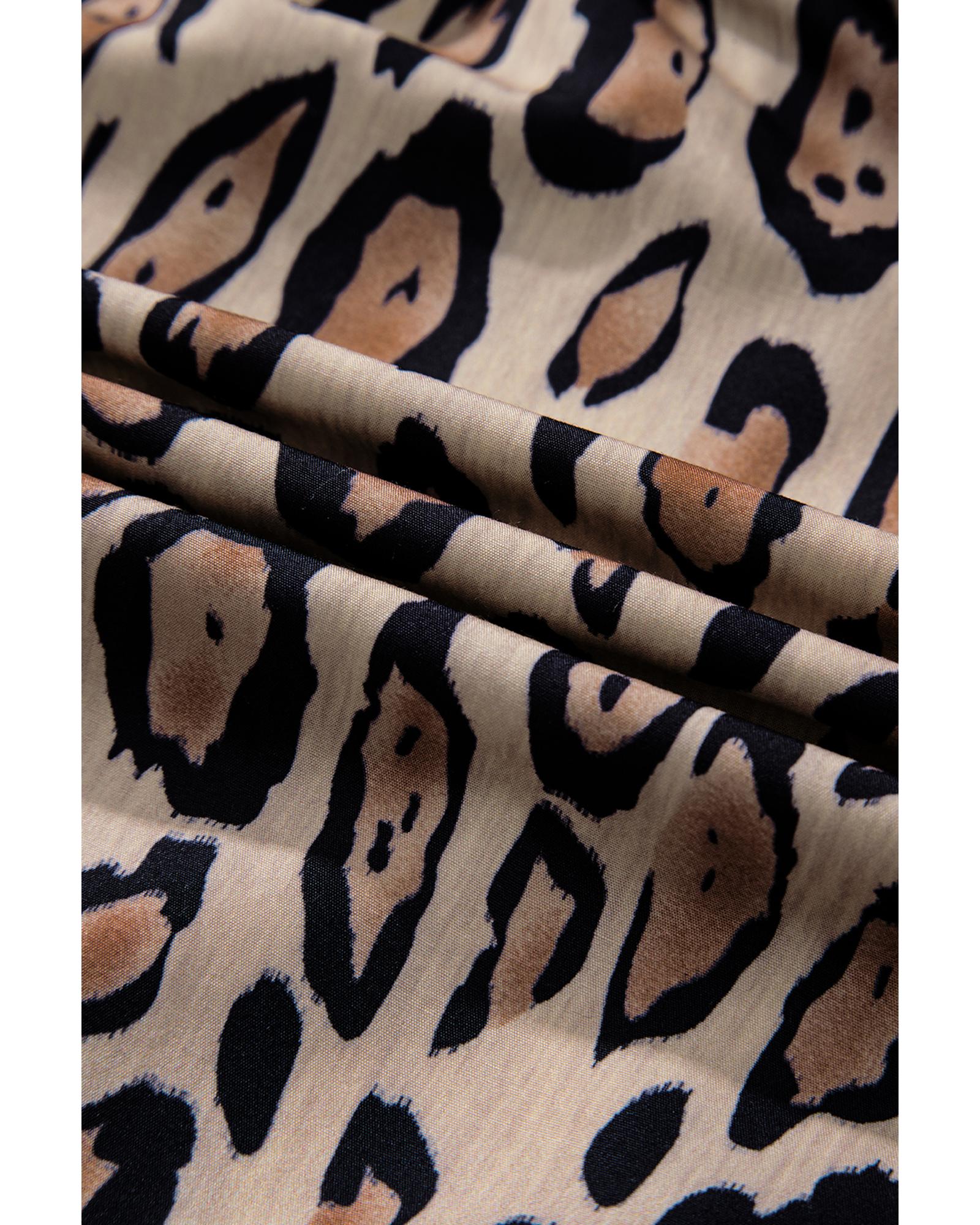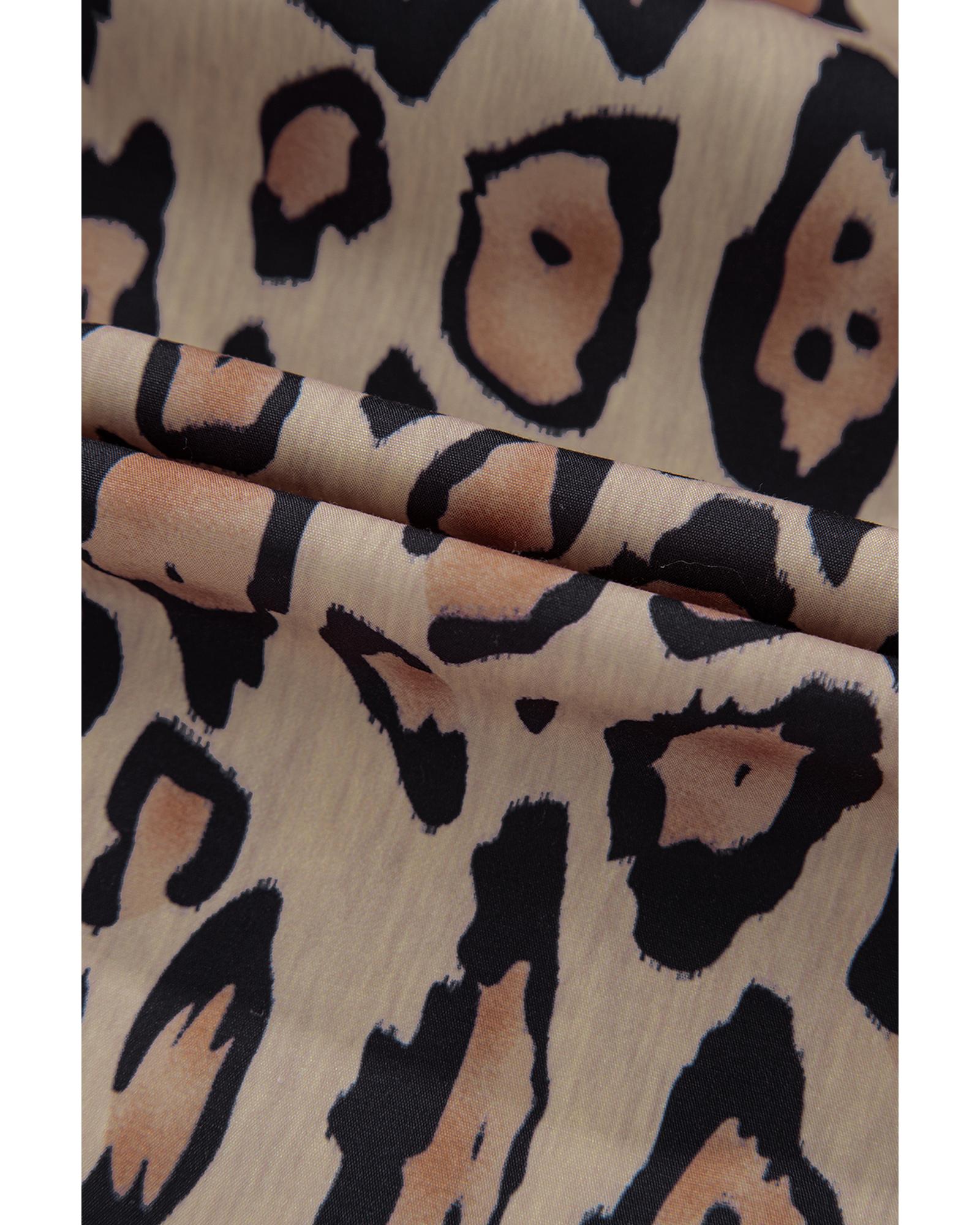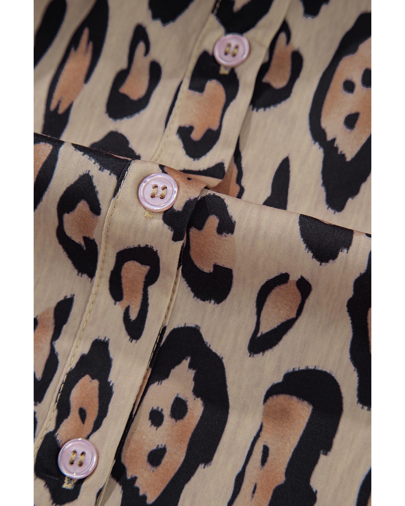 Light French Beige Oversized Leopard Print Balloon Sleeve Casual Shirt – M