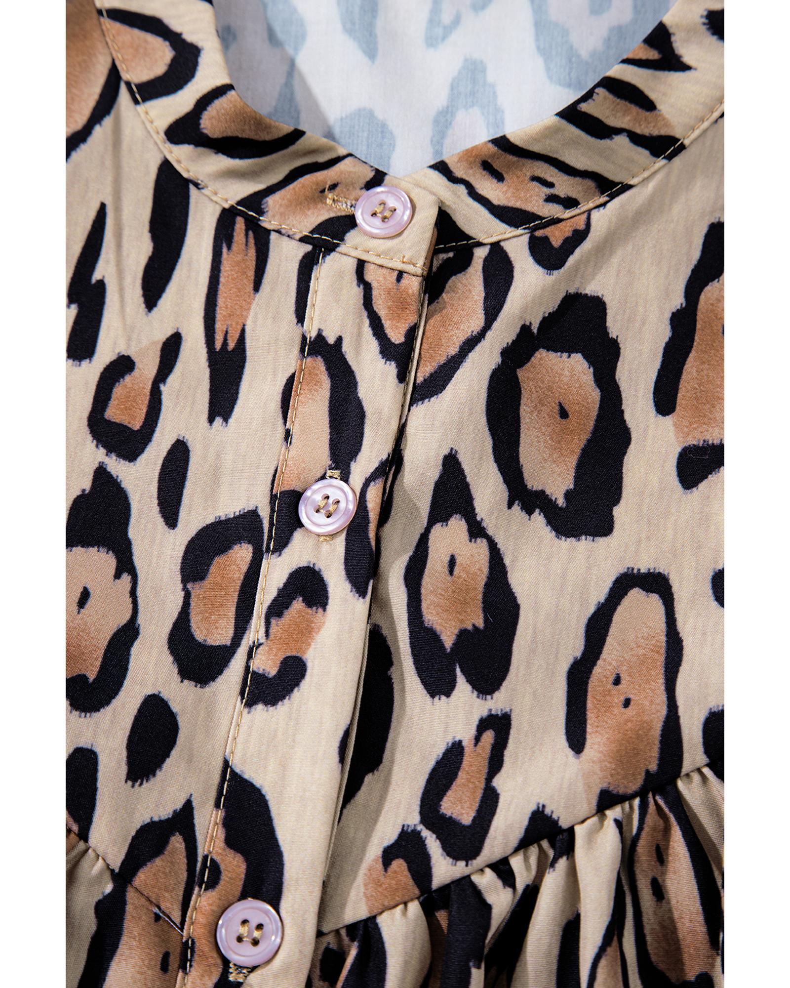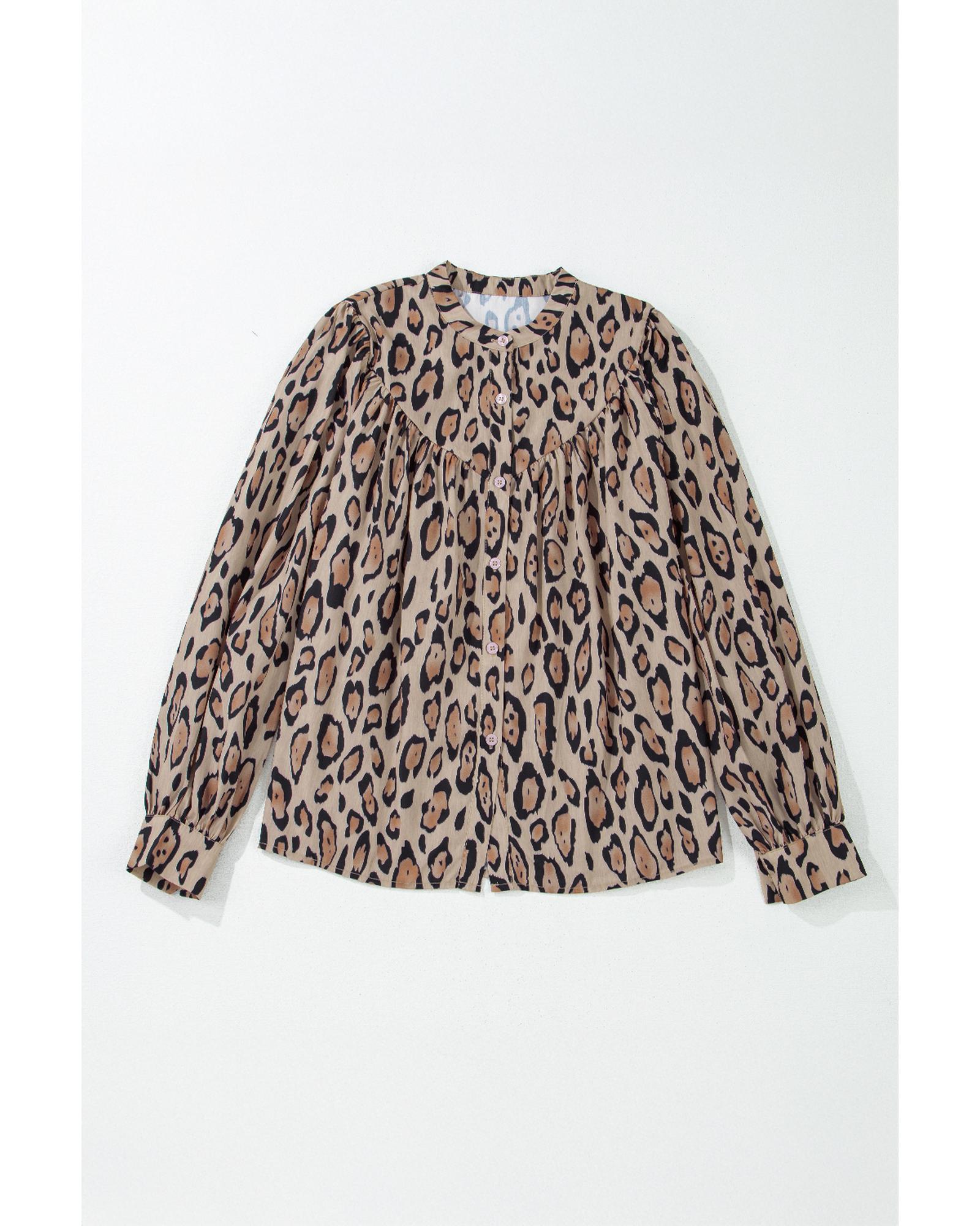 Light French Beige Oversized Leopard Print Balloon Sleeve Casual Shirt – S