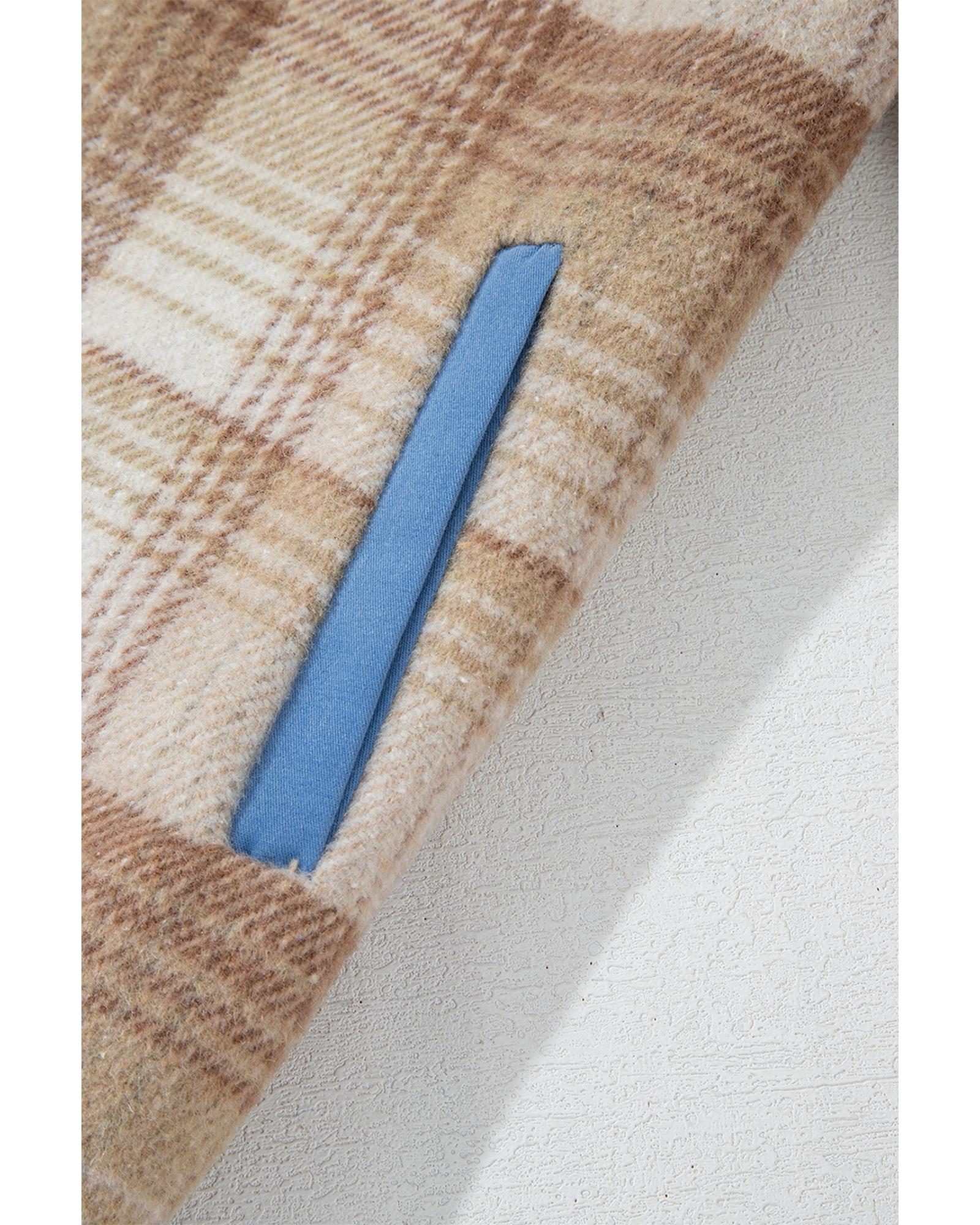 Light French Beige Plaid Patchwork Flap Detail Button Up Shacket – S