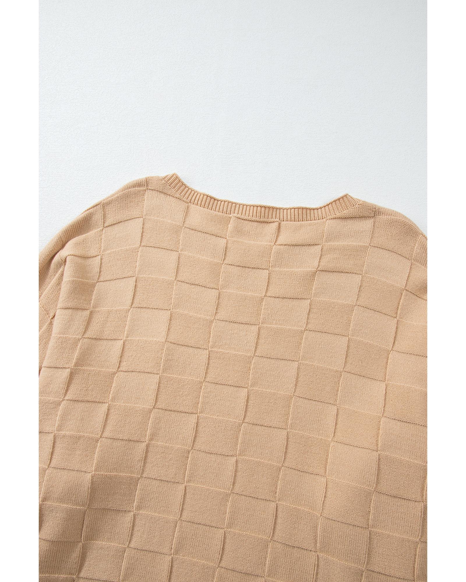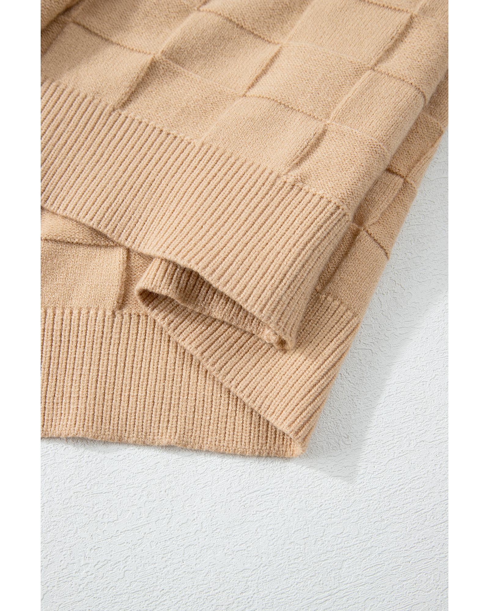 - Simple yet elegant Light French Beige Solid Checkered Textured Knit sweater