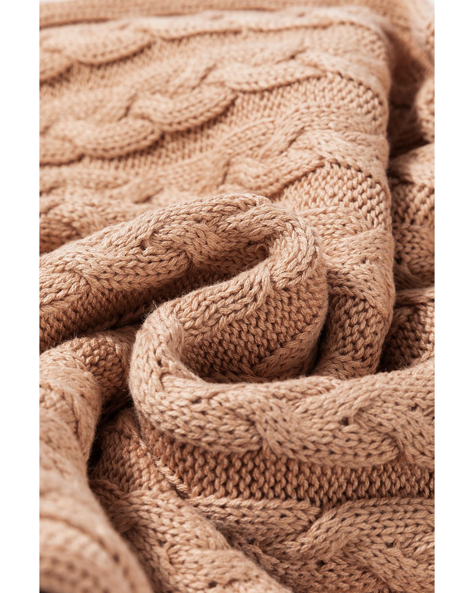 Light French Beige Solid Color Cable Knit High Neck Tank Top – S