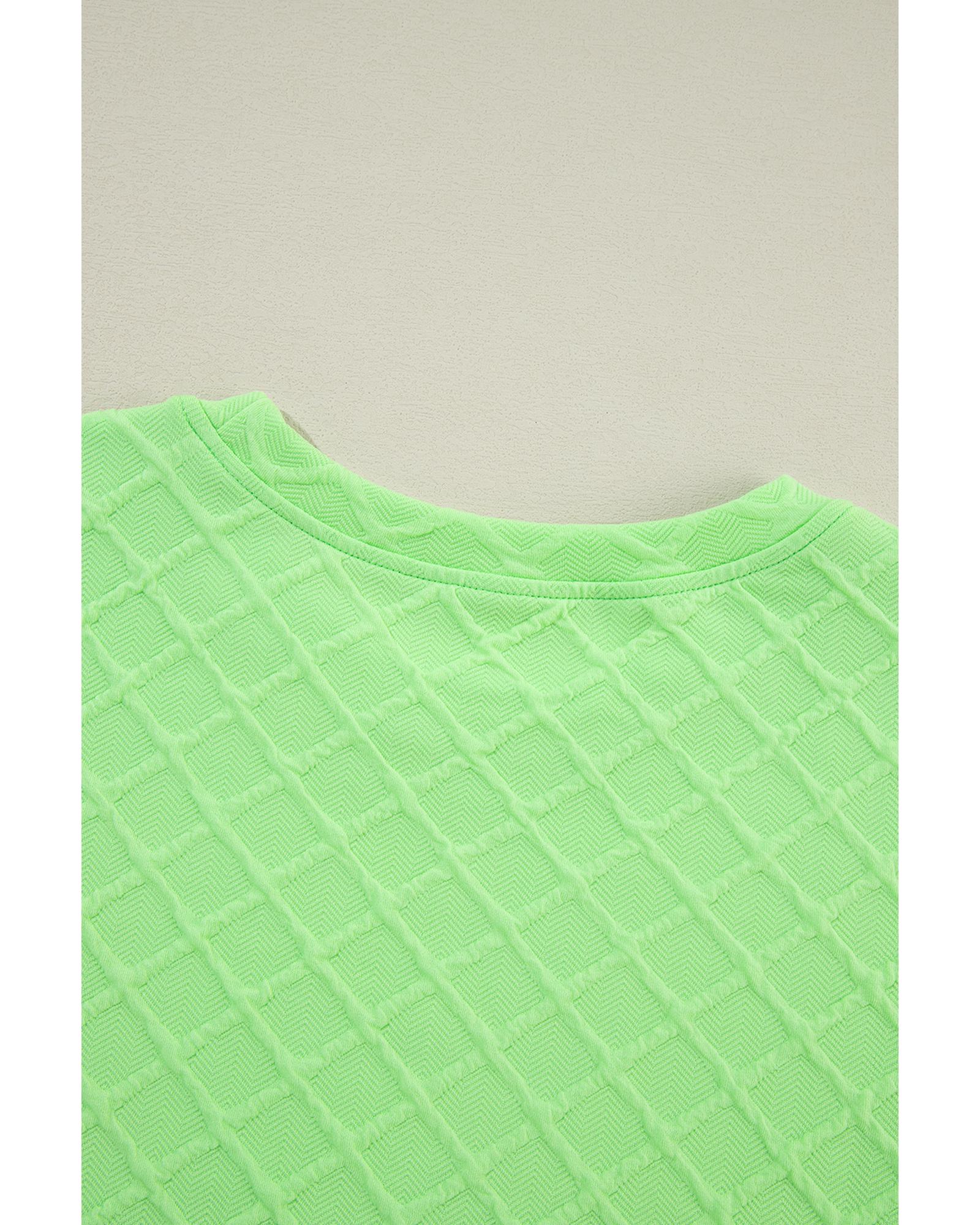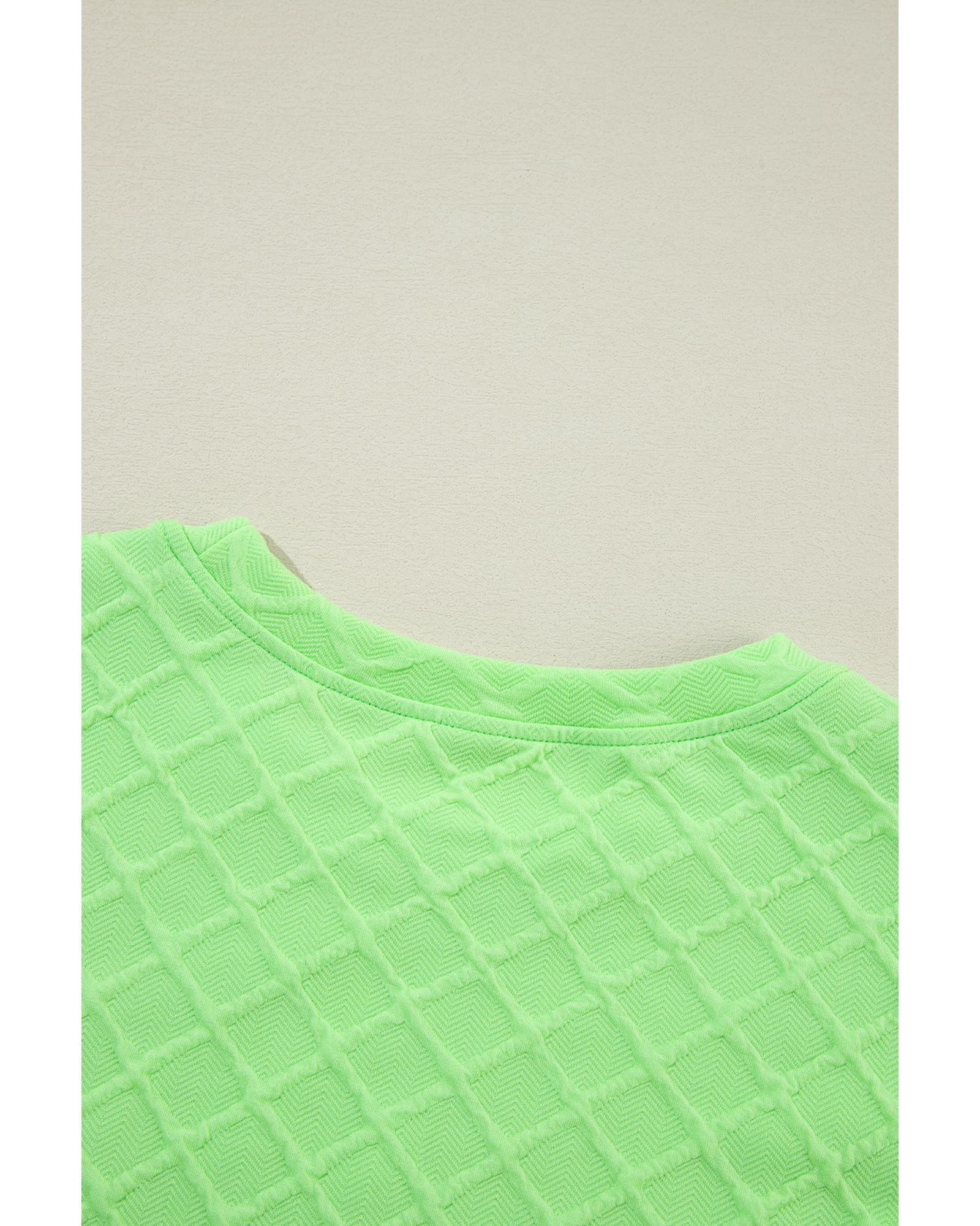 Light Green Checkered Textured Tee and Drawstring Shorts – L