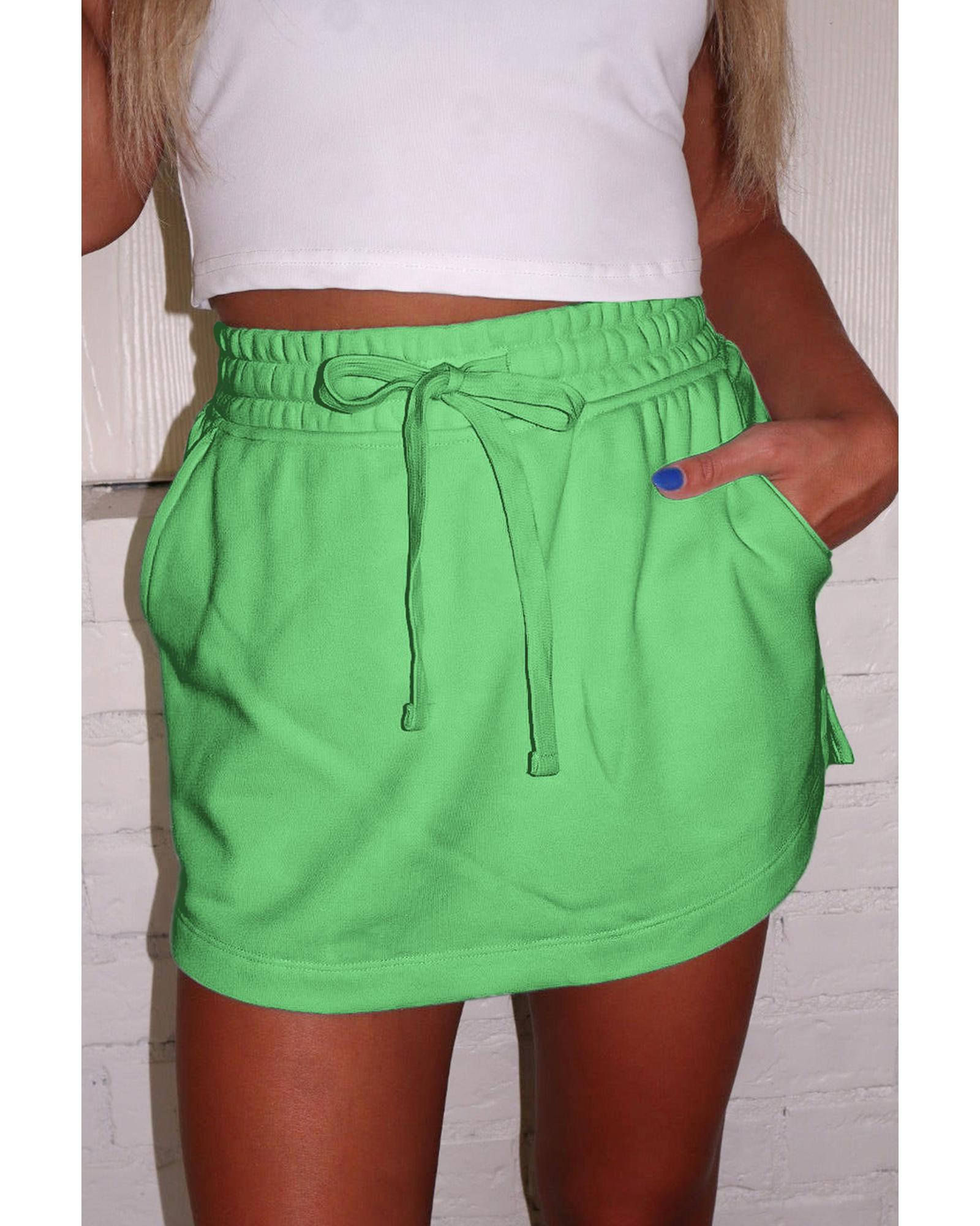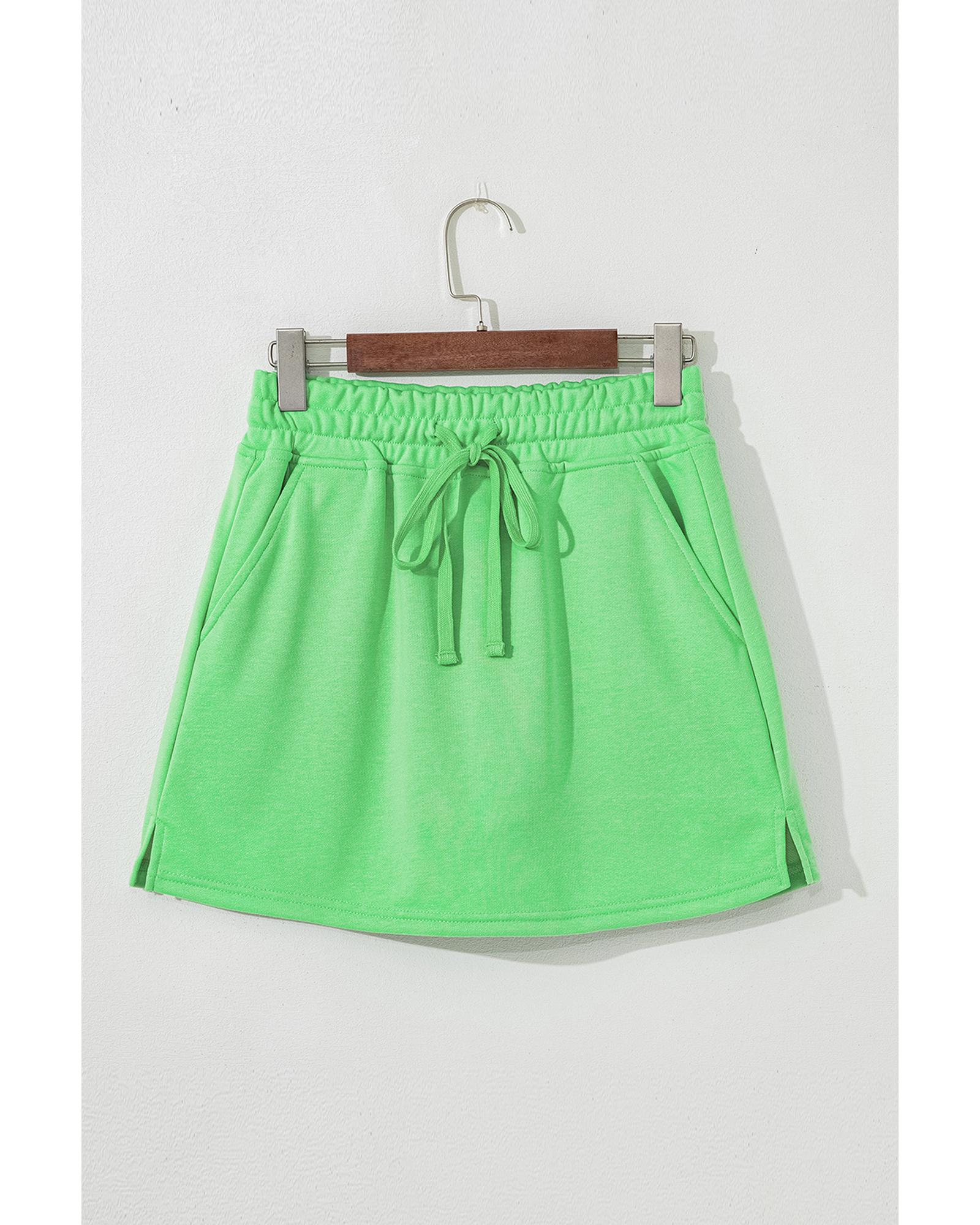 Light Green French Terry Drawstring Mini Skort with Pockets - S