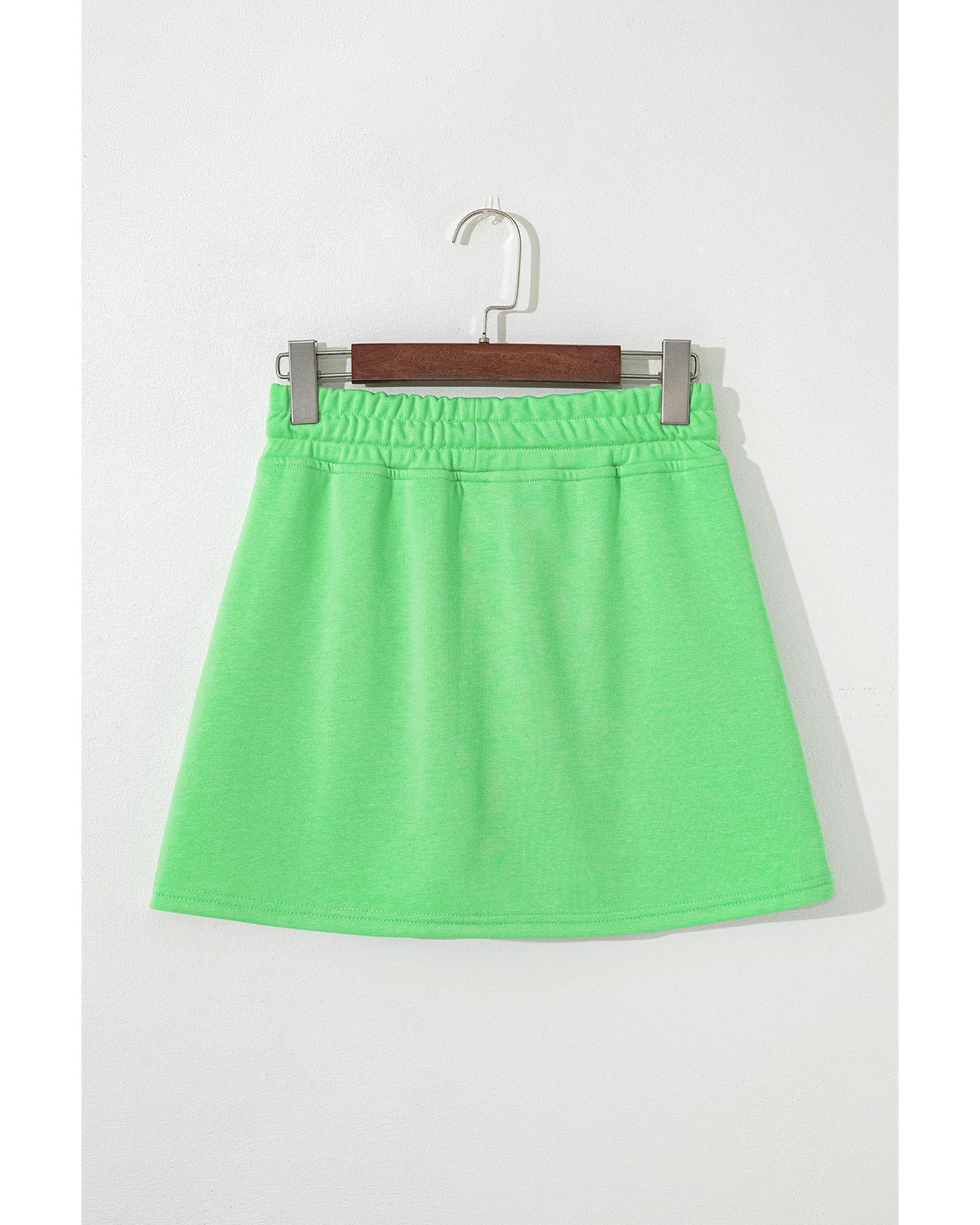 Light Green French Terry Drawstring Mini Skort with Pockets – M
