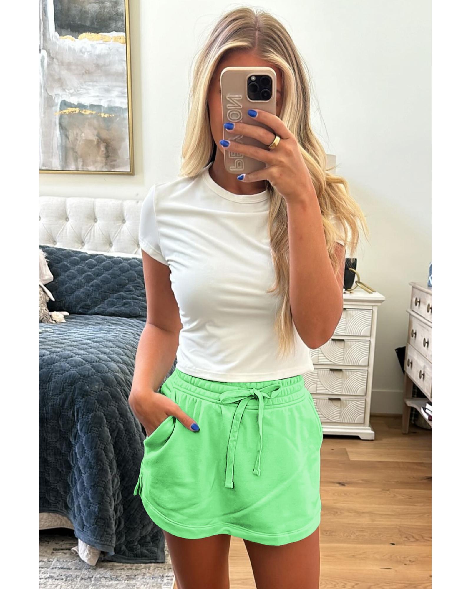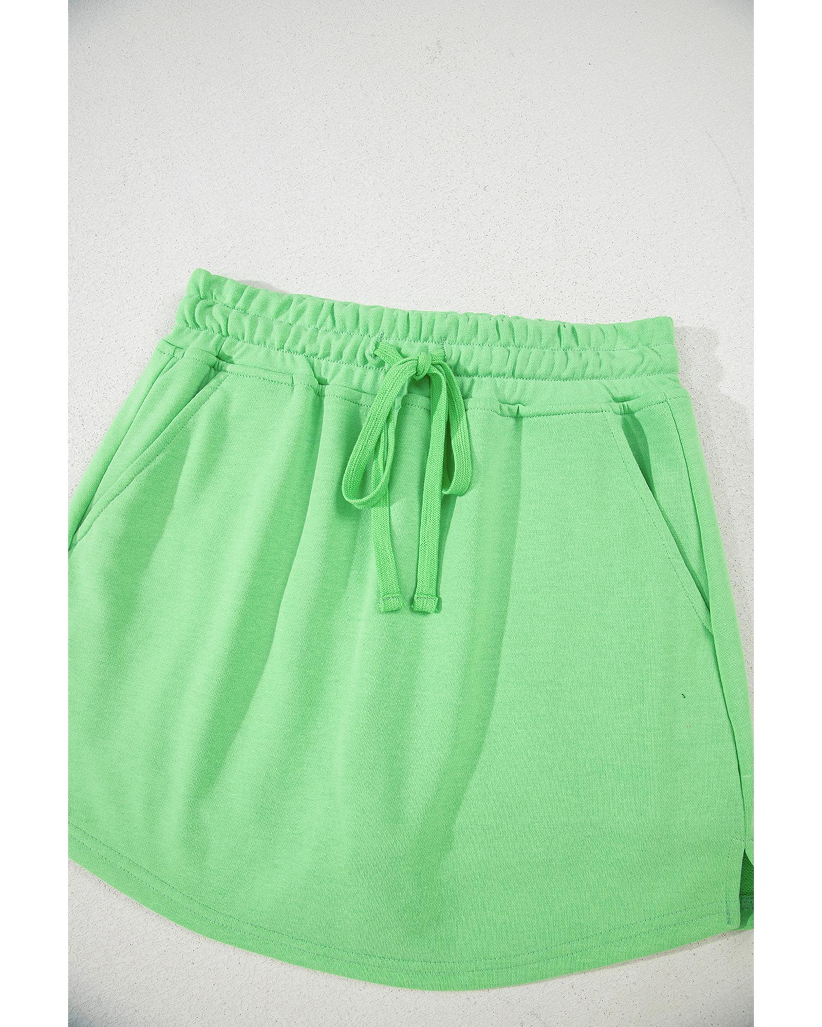 Light Green French Terry Drawstring Mini Skort with Pockets – XL