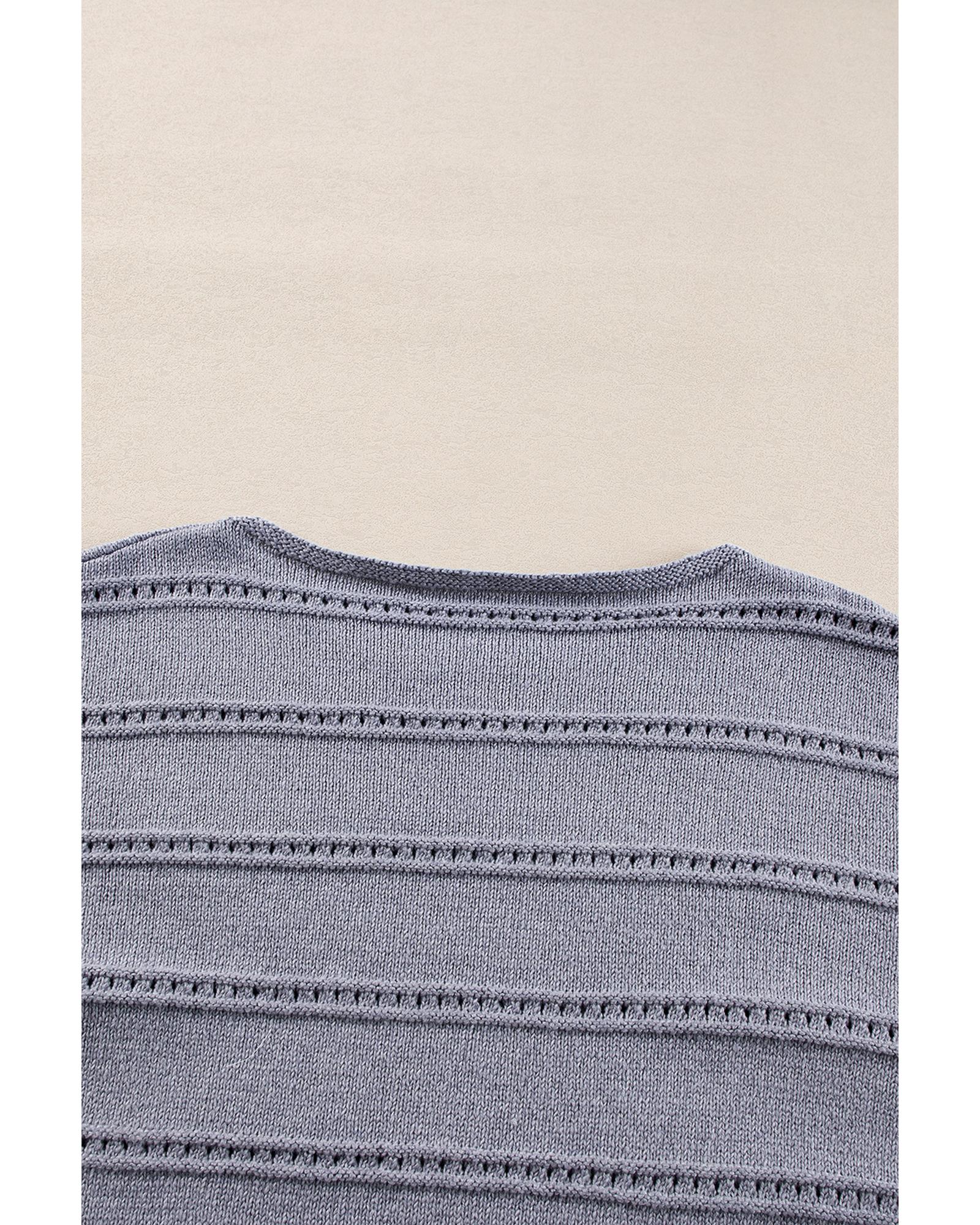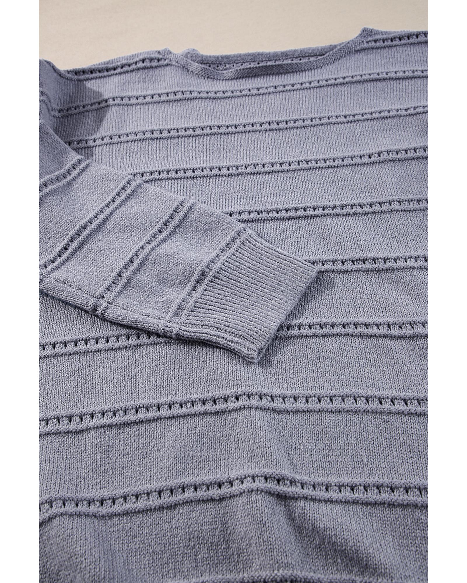 Light Grey Boat Neck Drop Shoulder Pointelle Knit Sweater – L