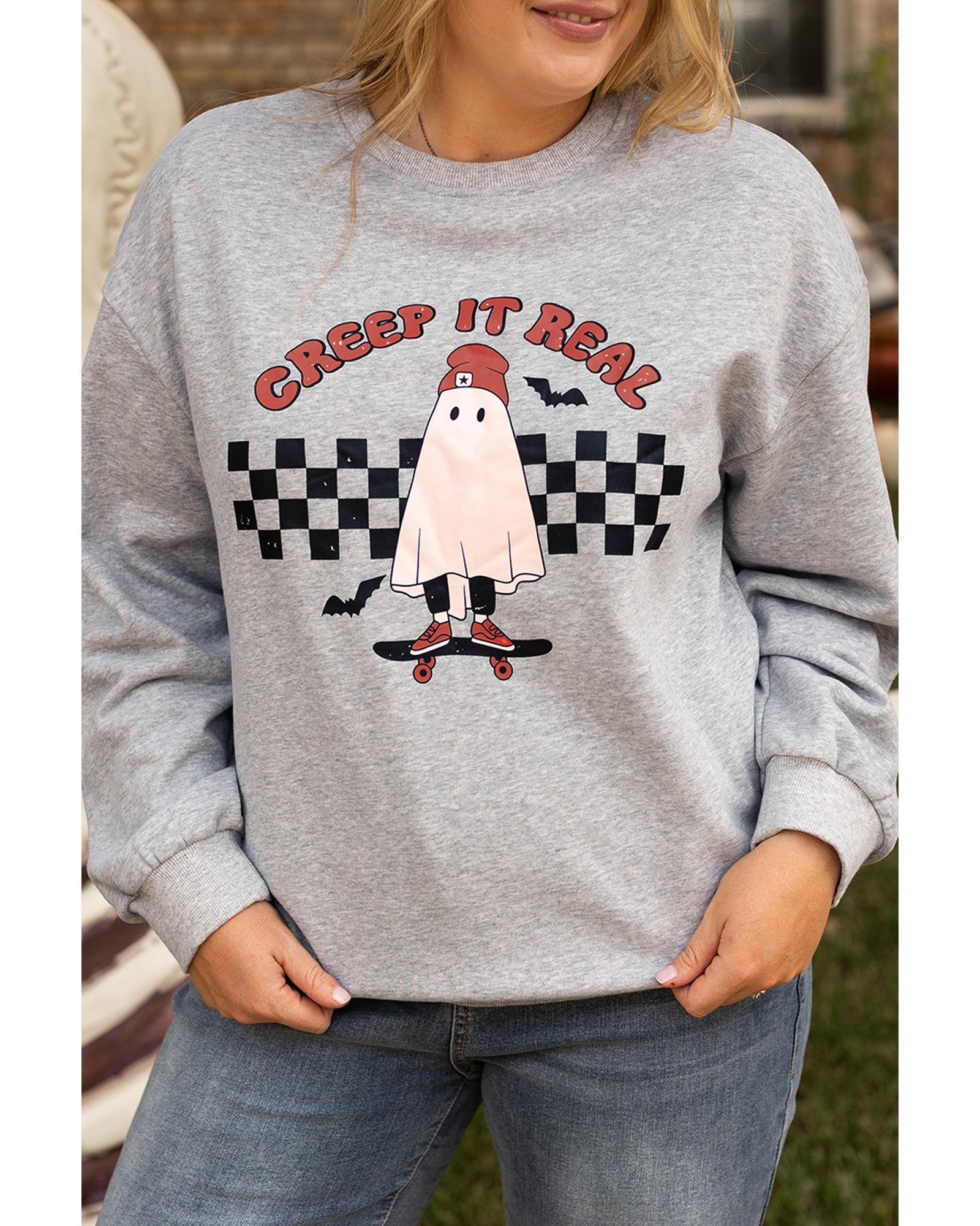 Light Grey Creep It Real Ghost Print Plus Size Sweatshirt – 2X