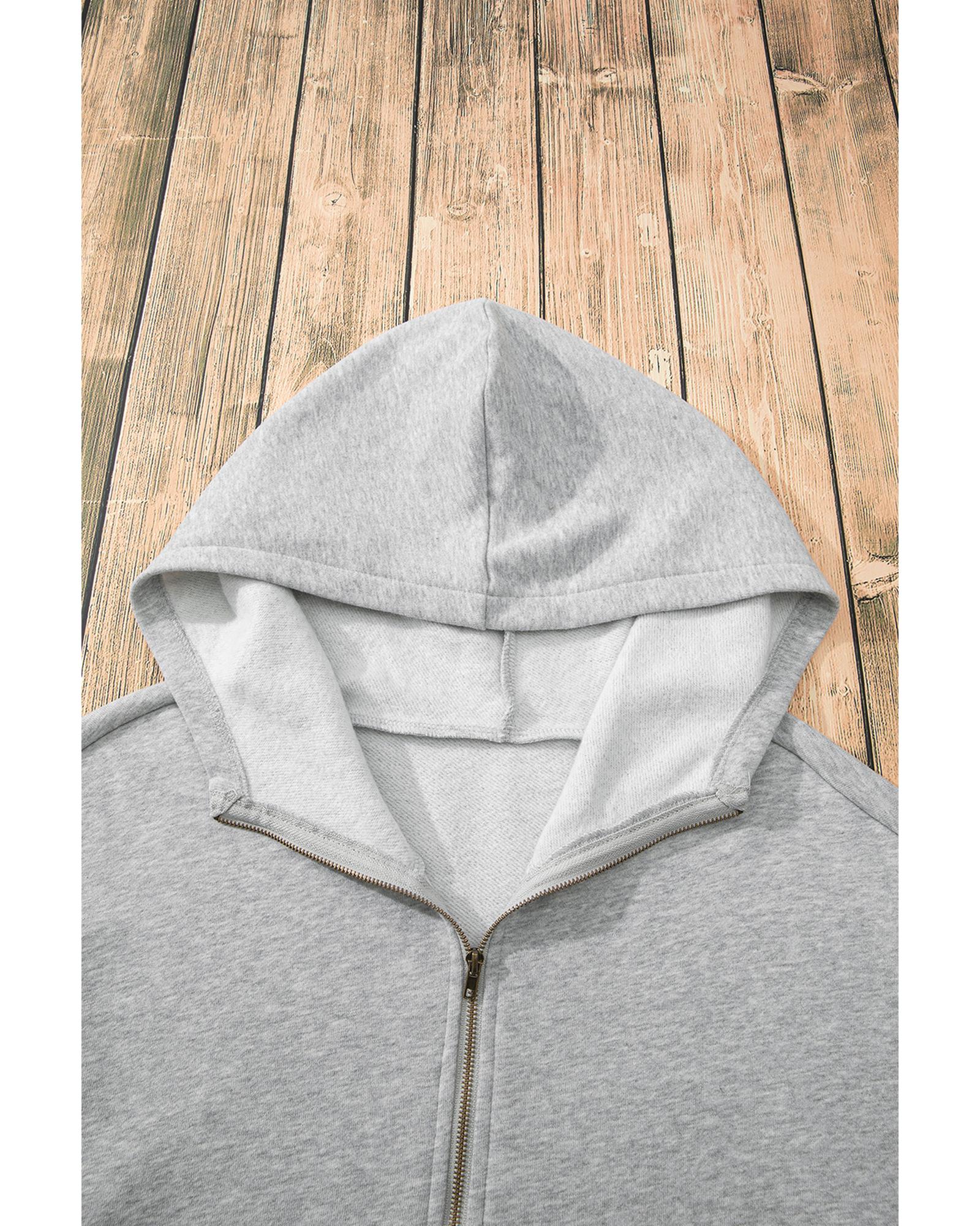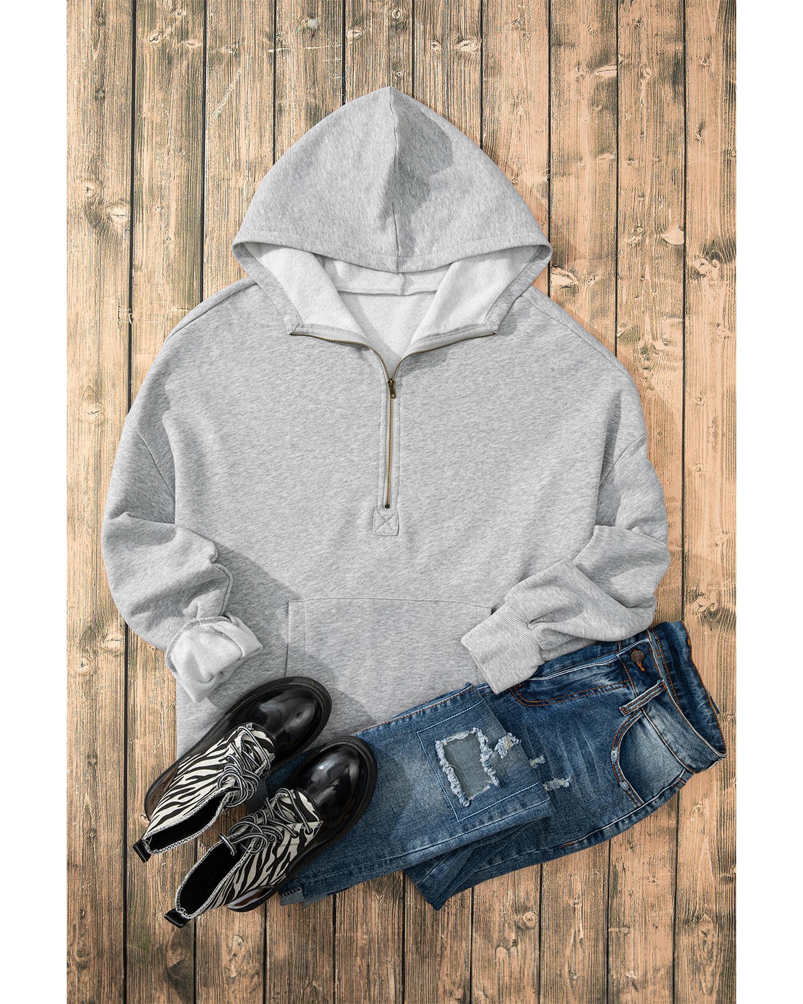 Light Grey Fleece Lined Half Zipper Kangaroo Pockets Loose Hoodie – 2XL