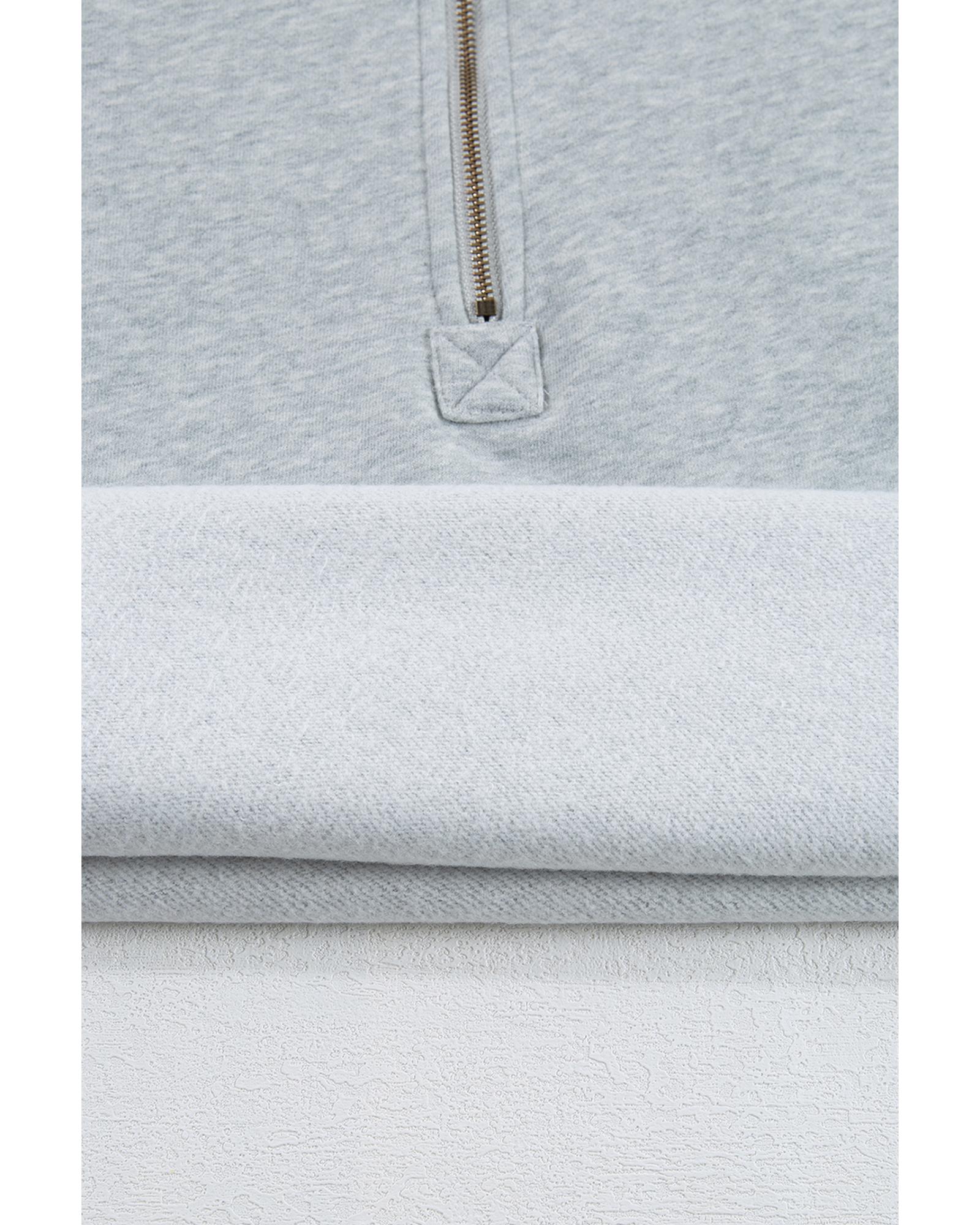 Light Grey Fleece Lined Half Zipper Kangaroo Pockets Loose Hoodie – L