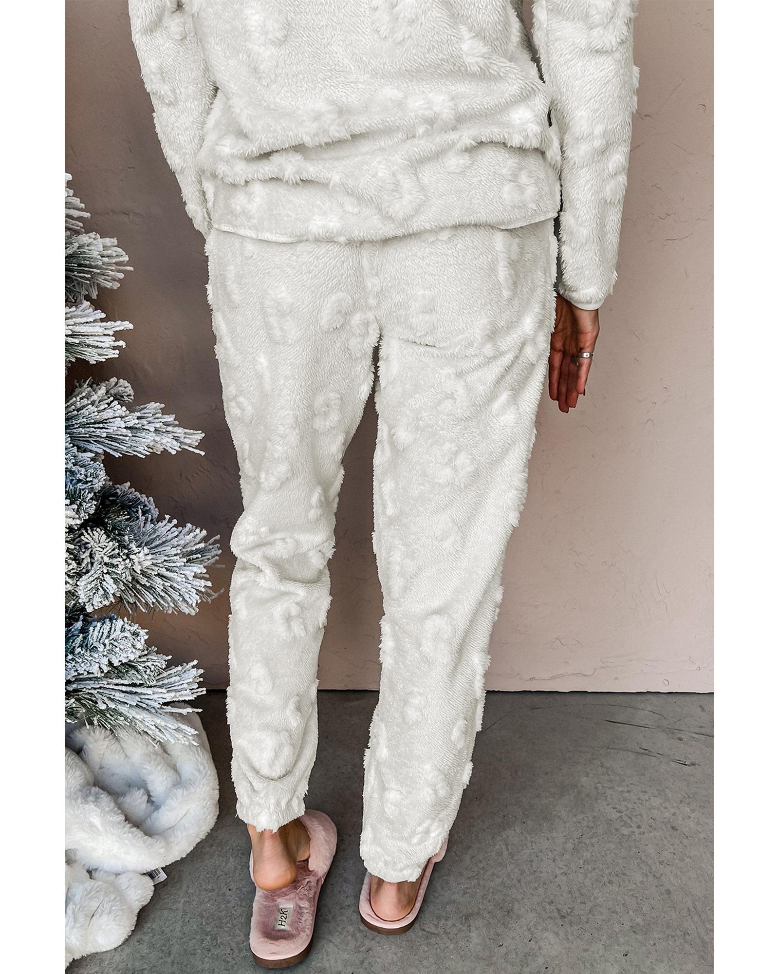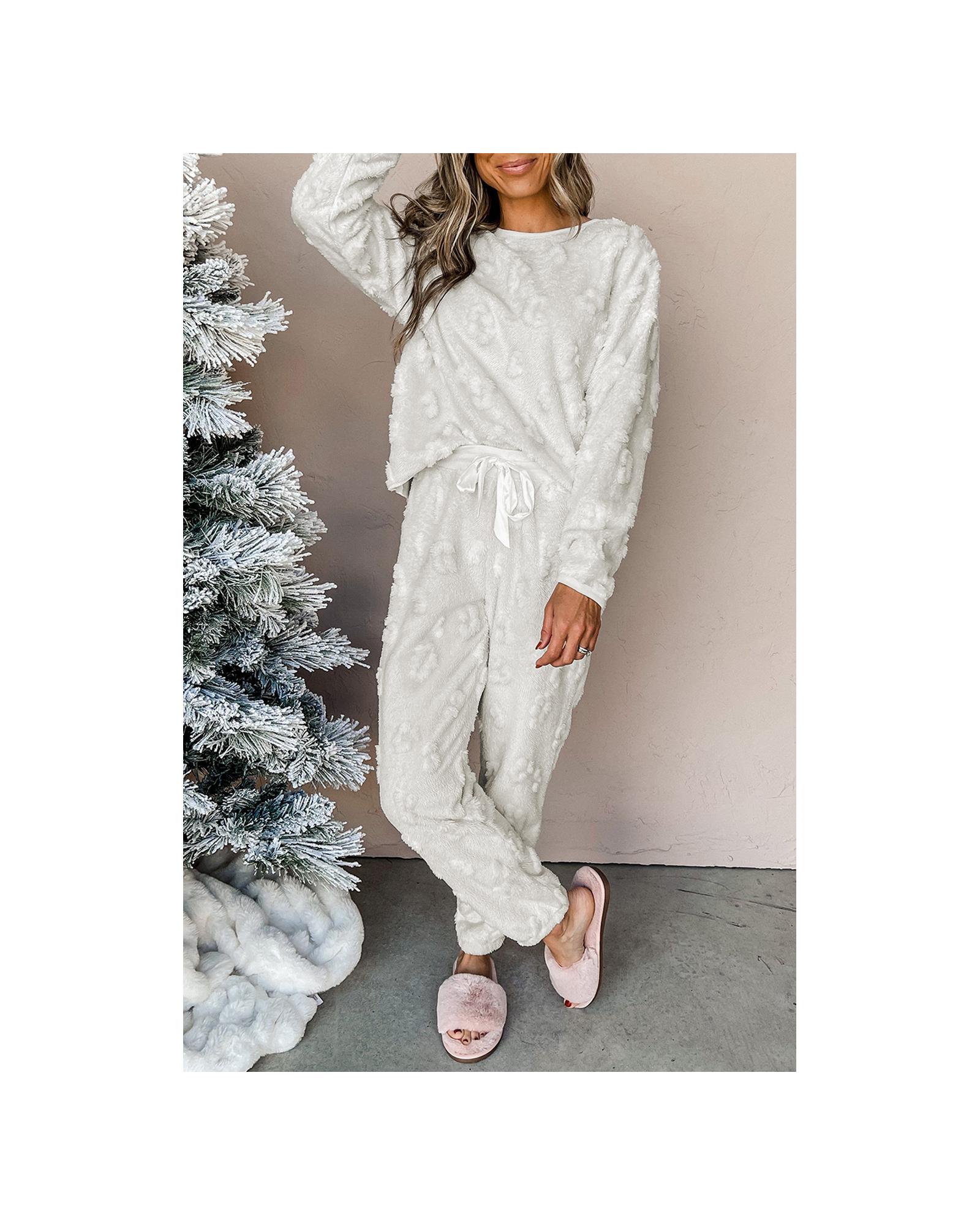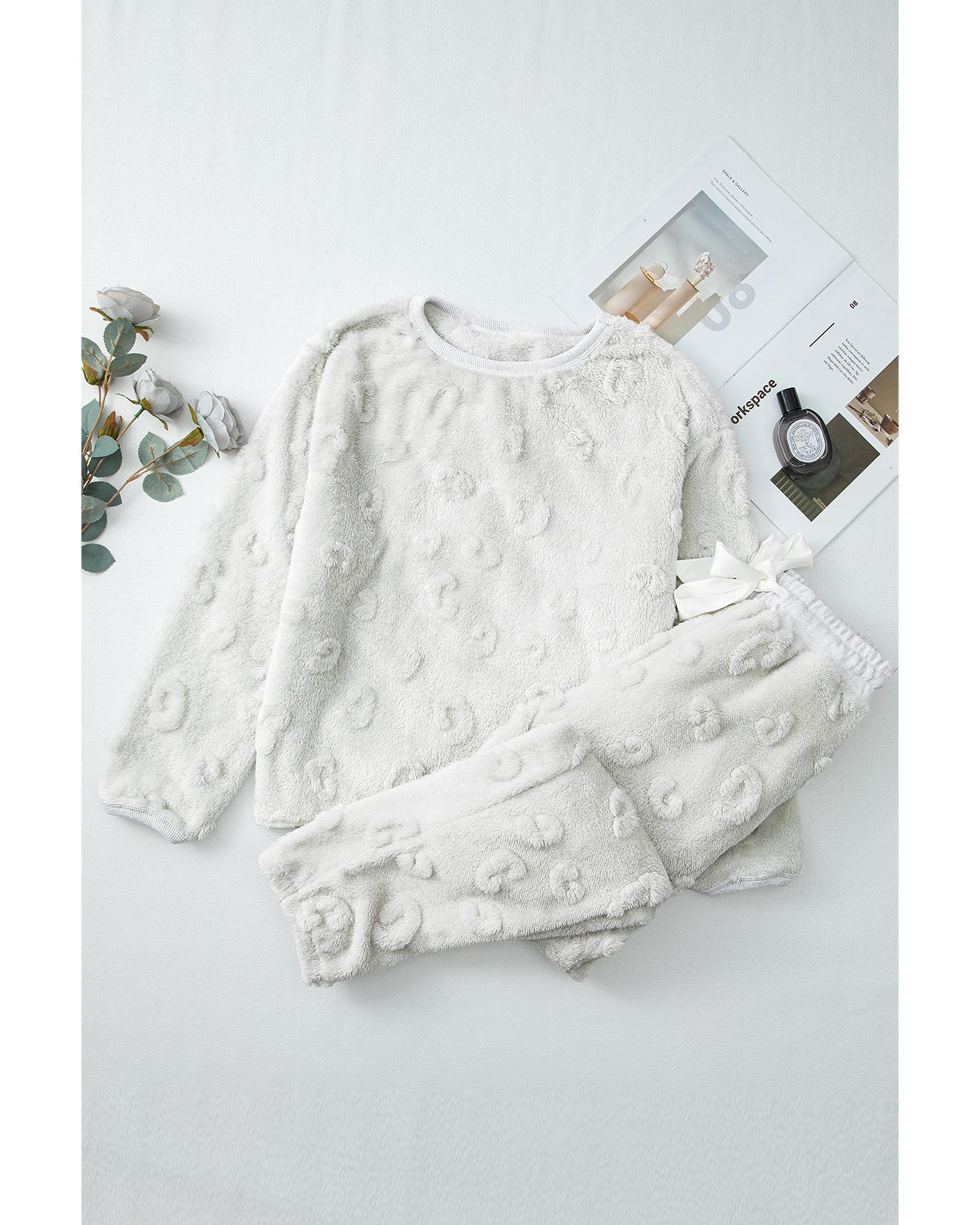 Light Grey Leopard Textured Loose Fit Fleece Lounge Set – M
