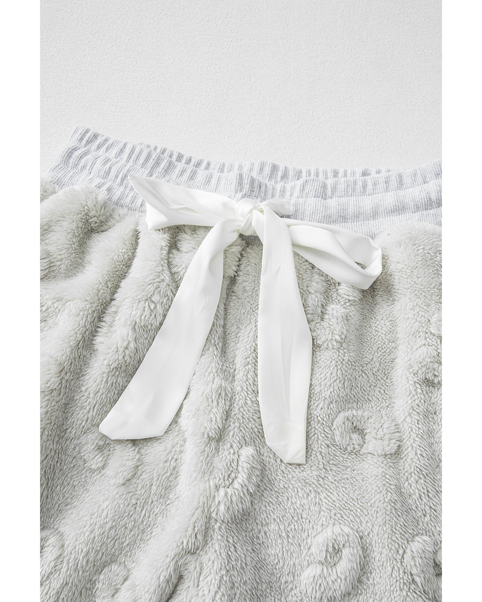 Light Grey Leopard Textured Loose Fit Fleece Lounge Set – S