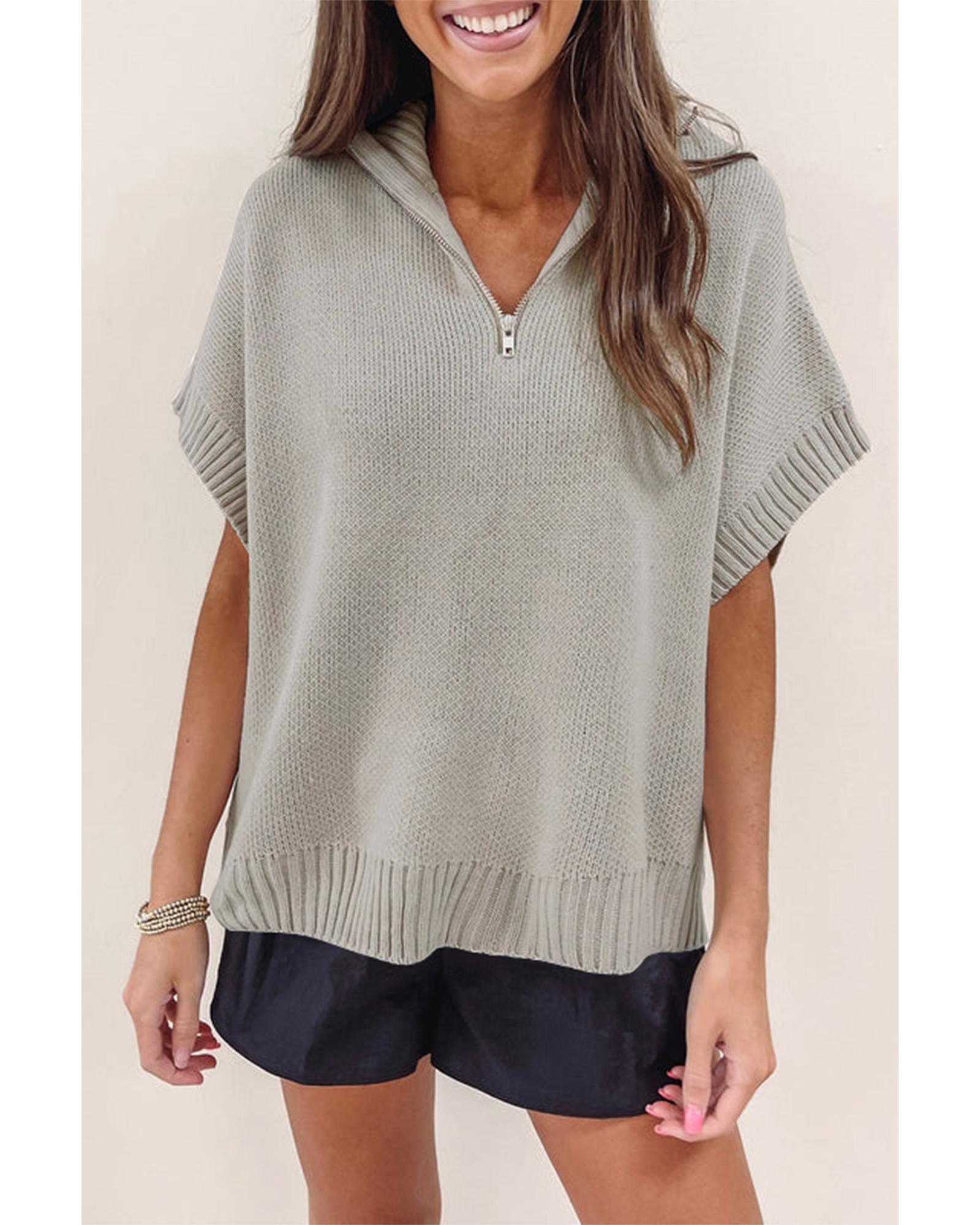 Light Grey Quarter Zip Short Batwing Sleeve Sweater – XL