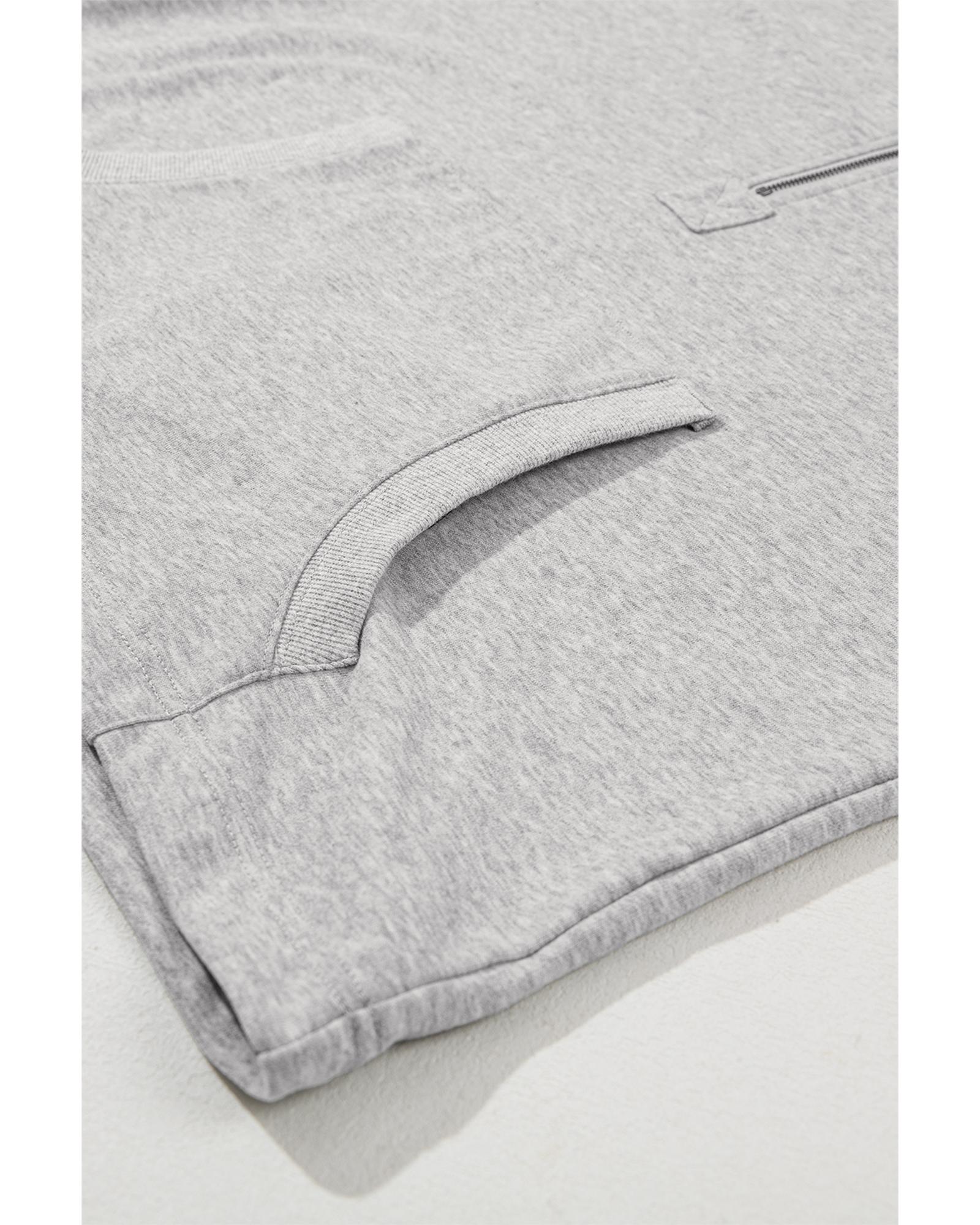 Light Grey Solid Kangaroo Pocket Half Zipper Oversized Hoodie – 2XL