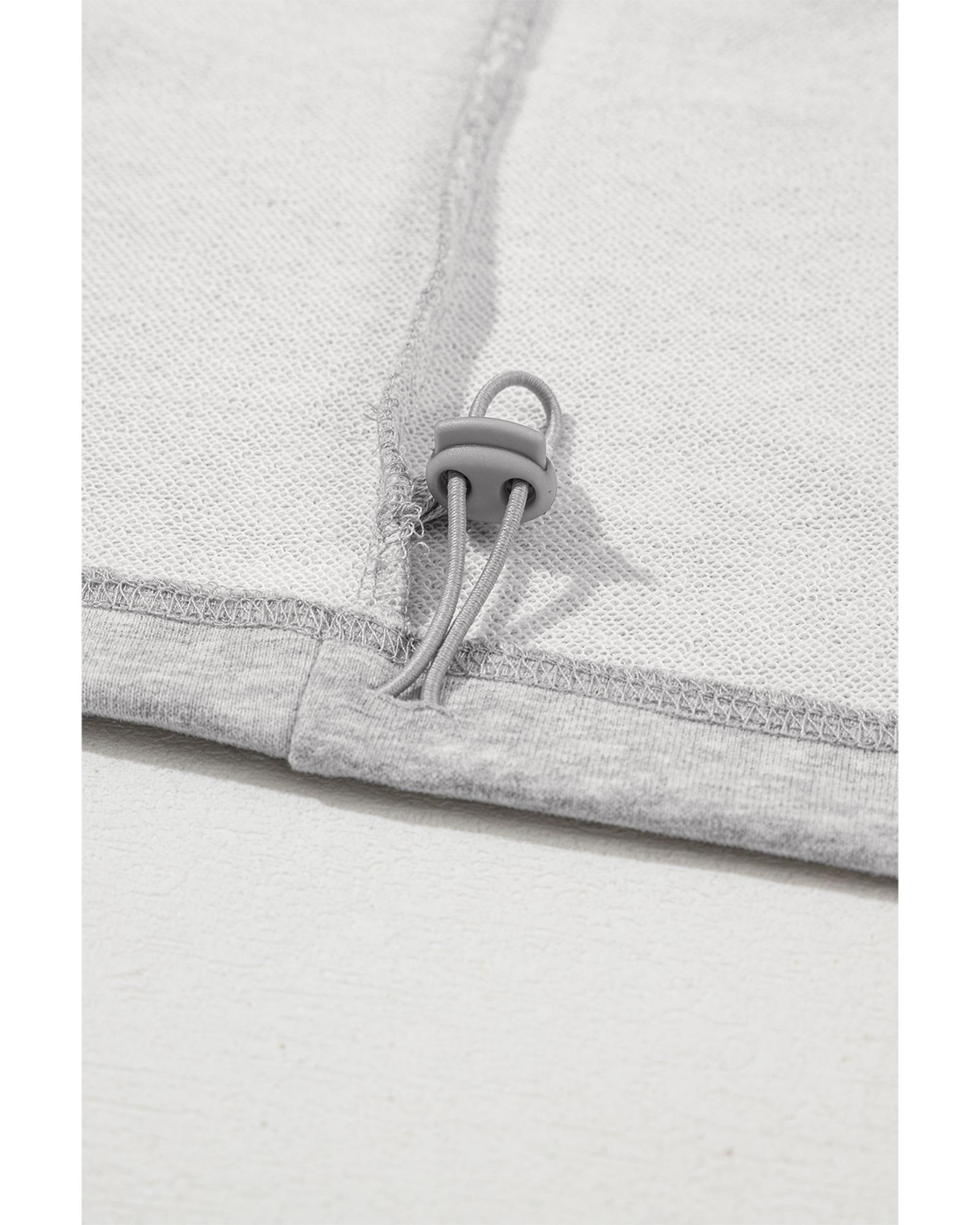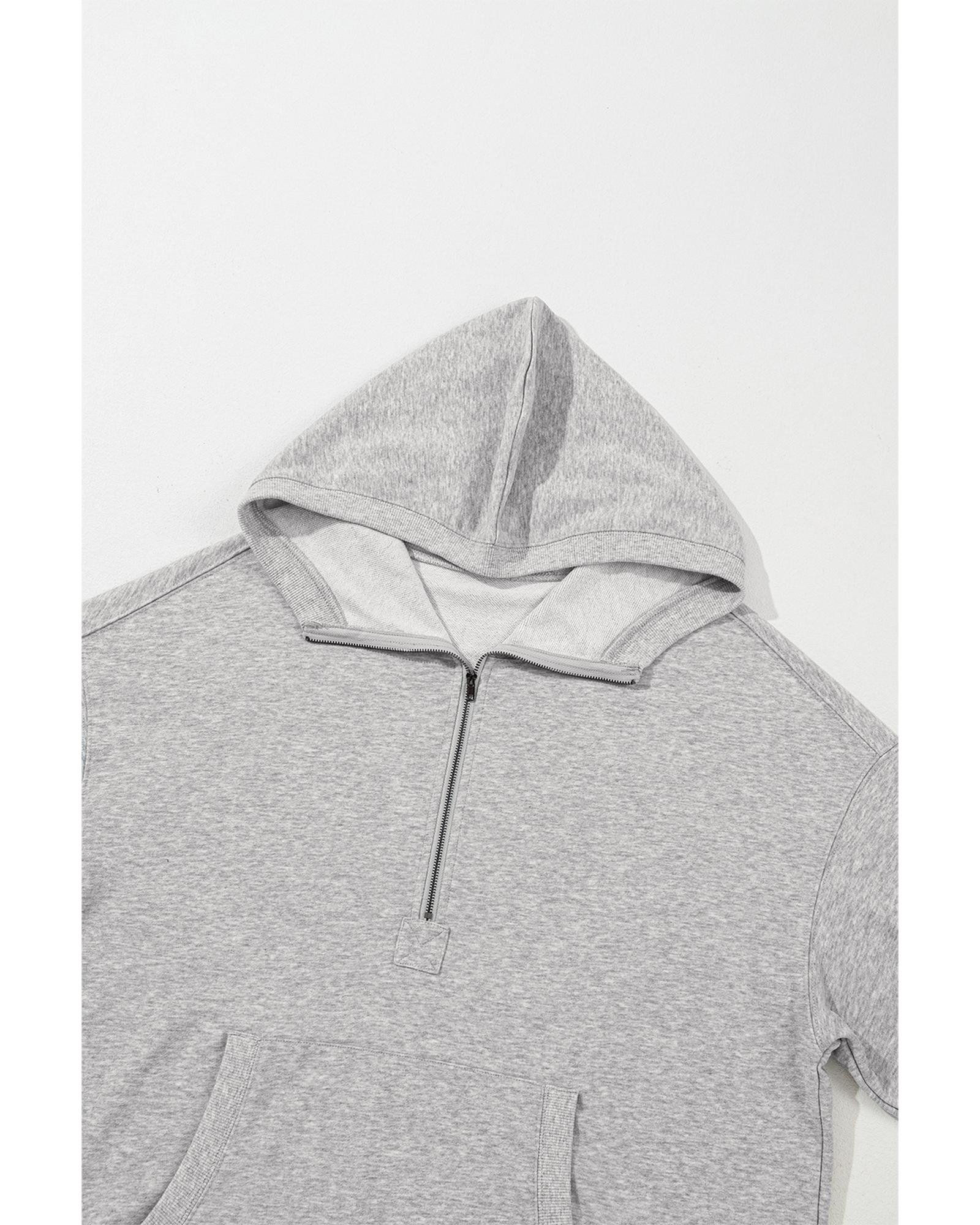Light Grey Solid Kangaroo Pocket Half Zipper Oversized Hoodie – M