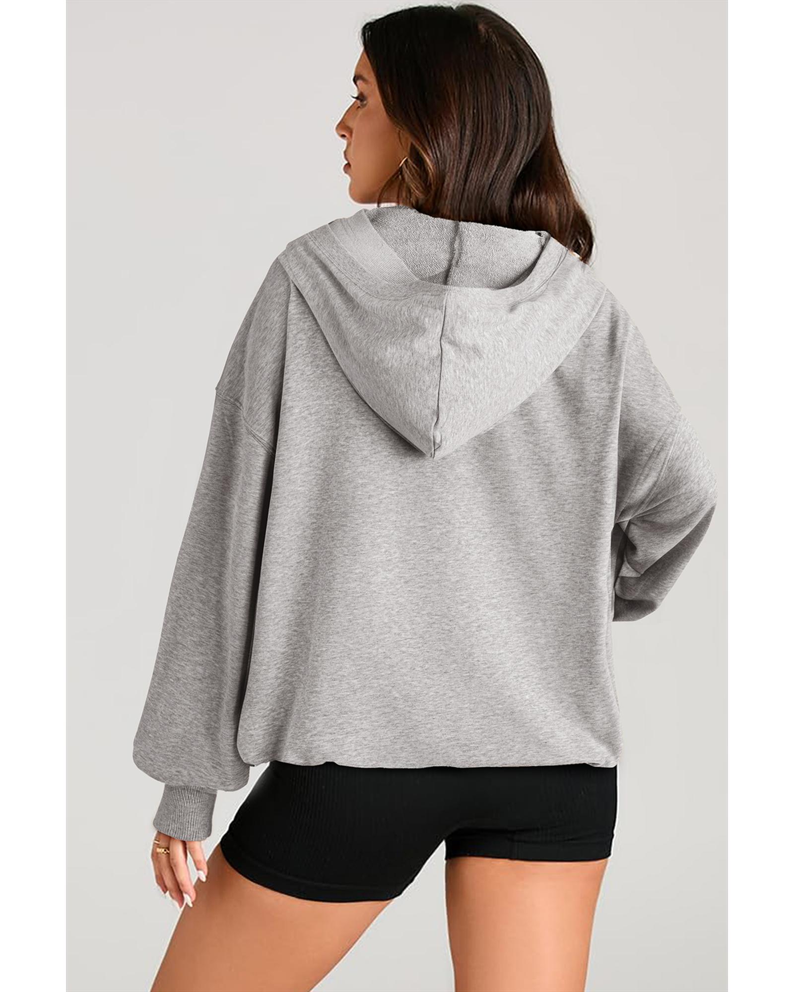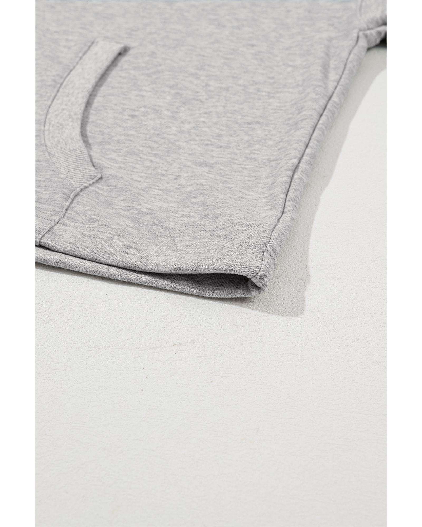 Light Grey Solid Kangaroo Pocket Half Zipper Oversized Hoodie – XL