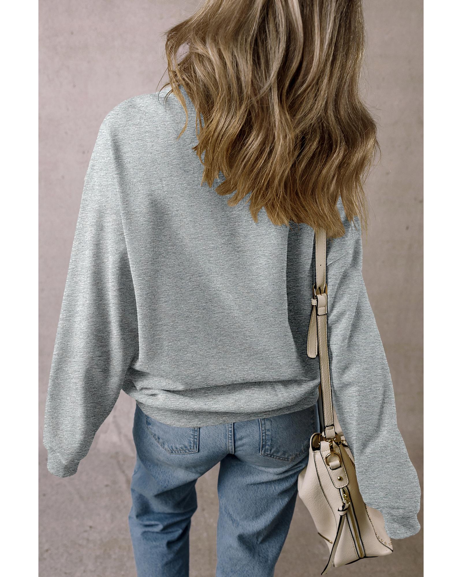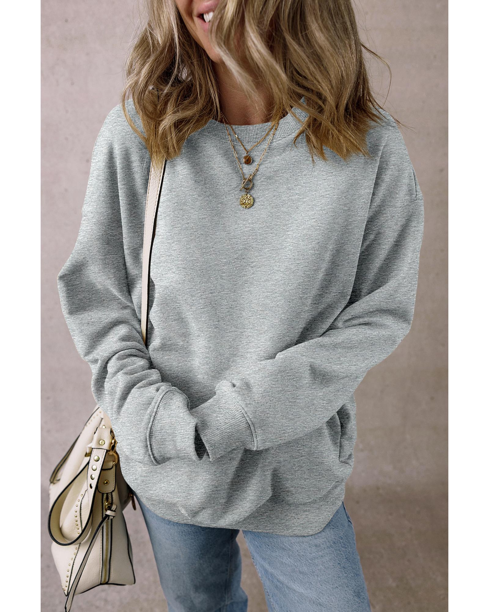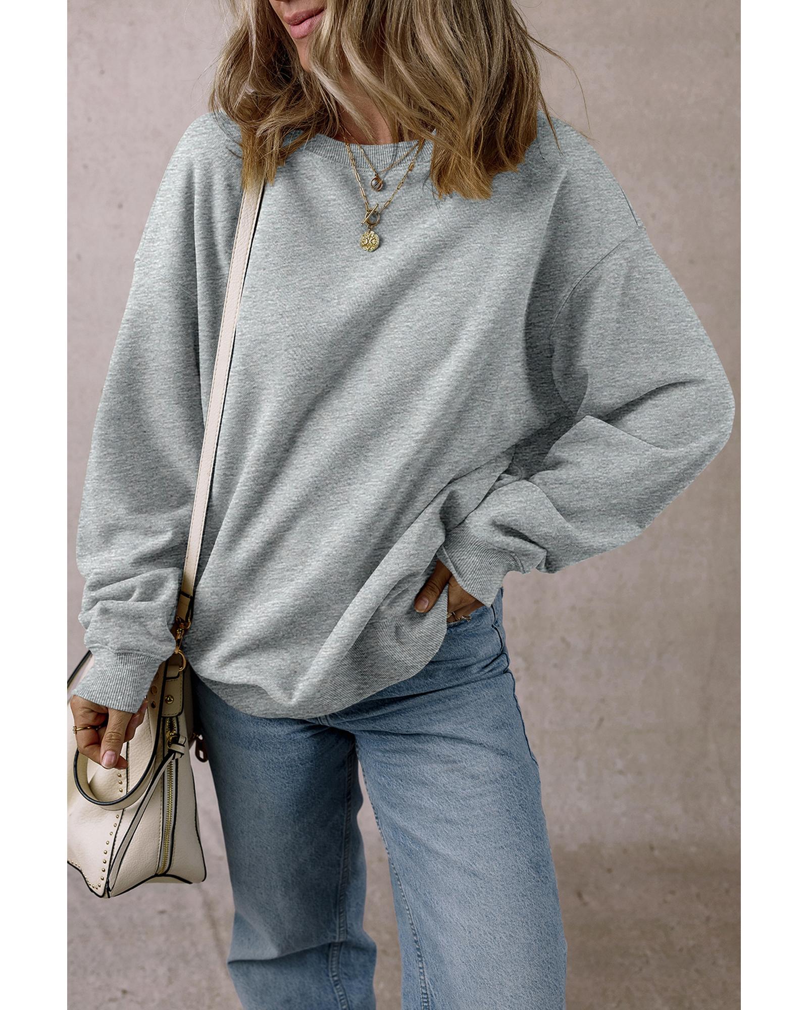 Light Grey Solid Loose Crew Neck Fleece Sweatshirt – S