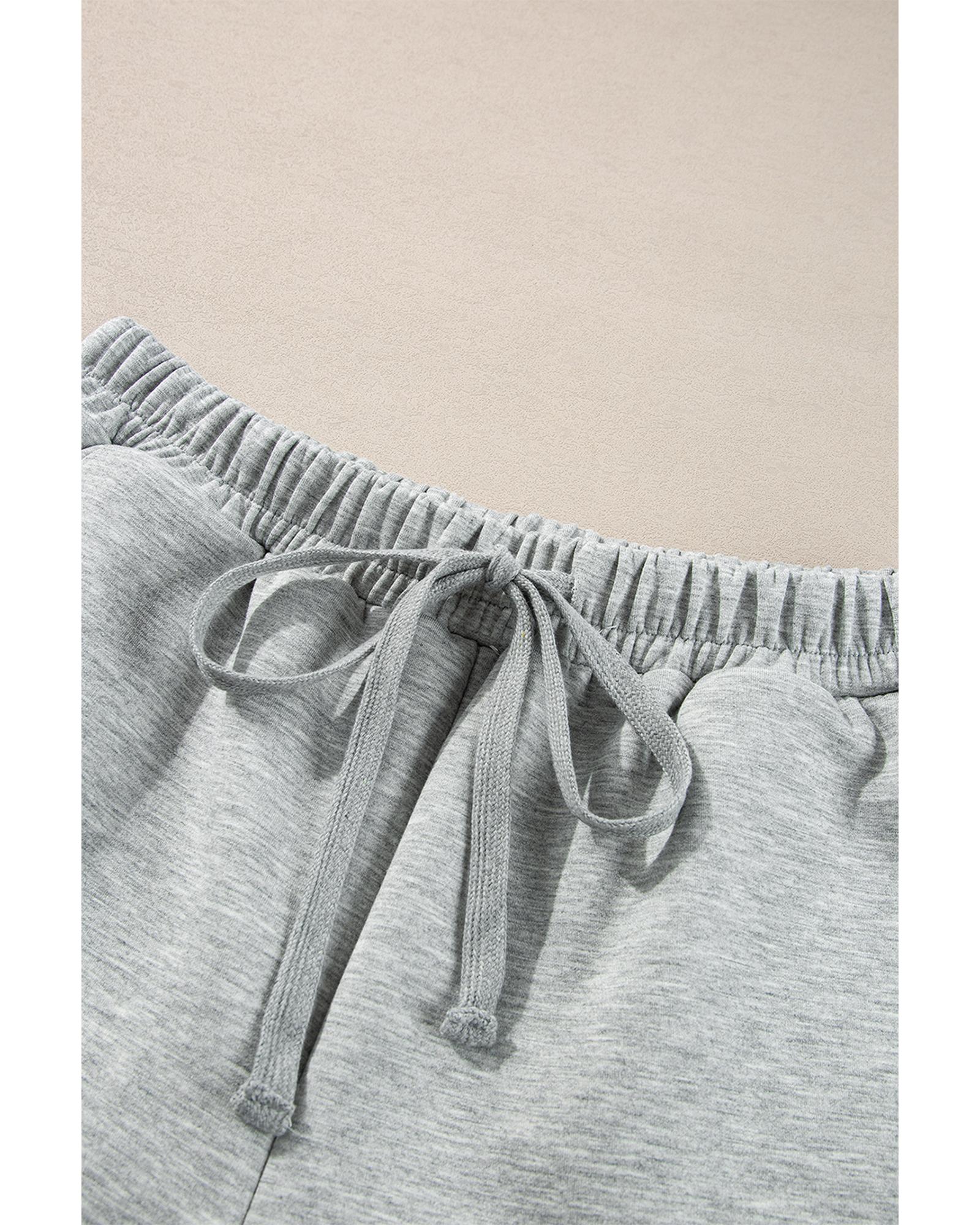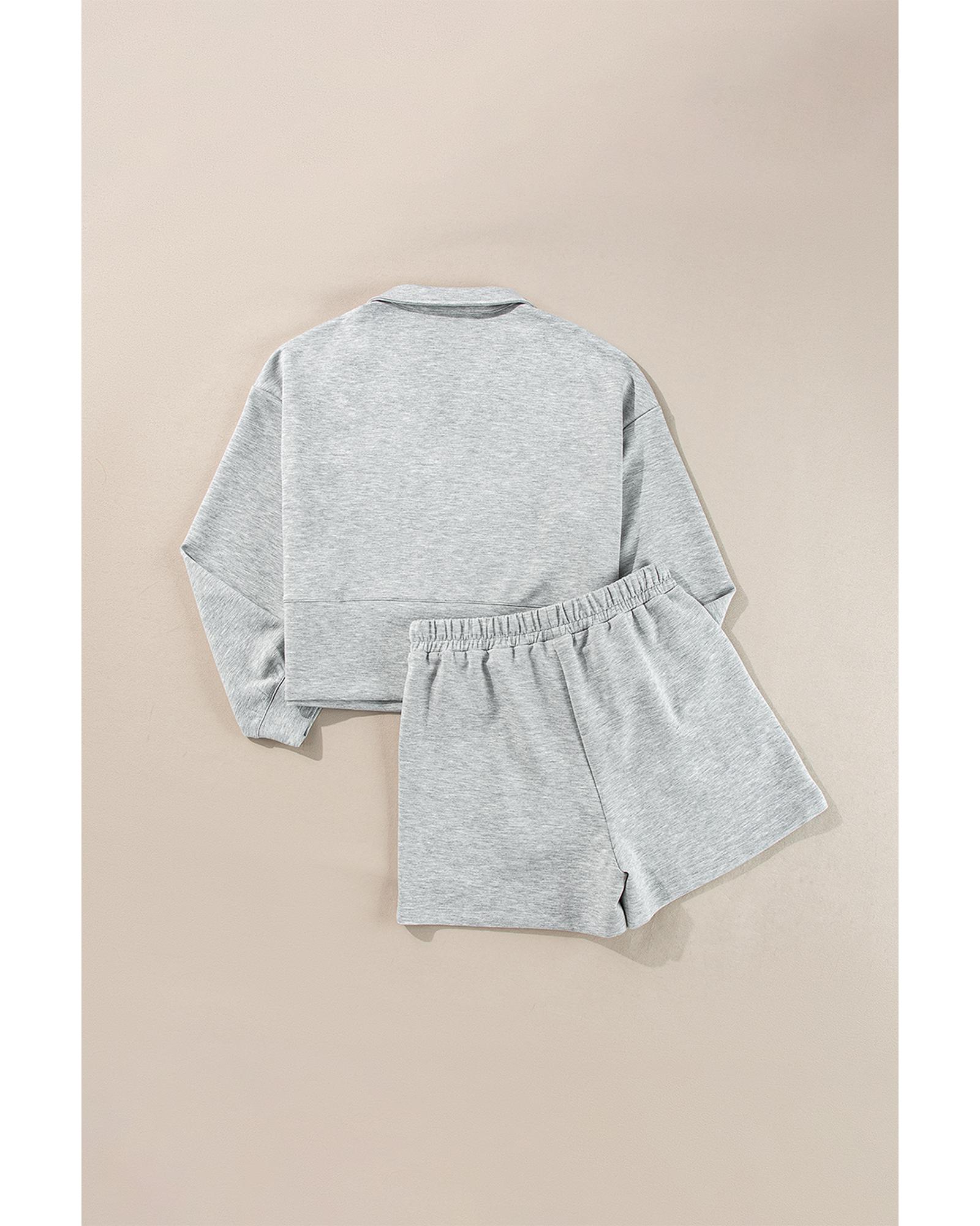 Light Grey Stand Neck Zipped Sweatshirt and Shorts Set – M