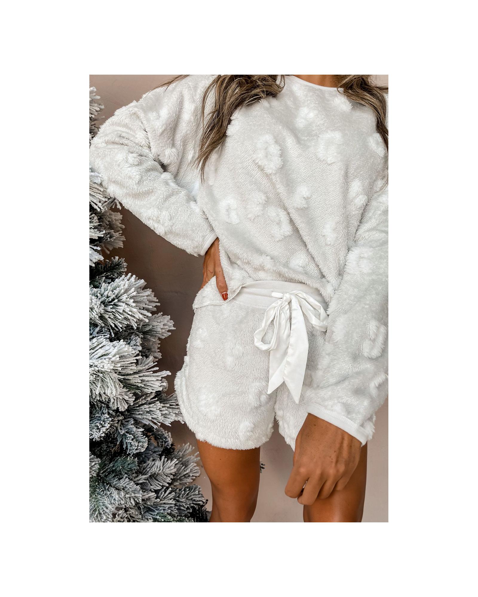 - Light Grey Textured Leopard Fleece Loose Two Piece Lounge Set