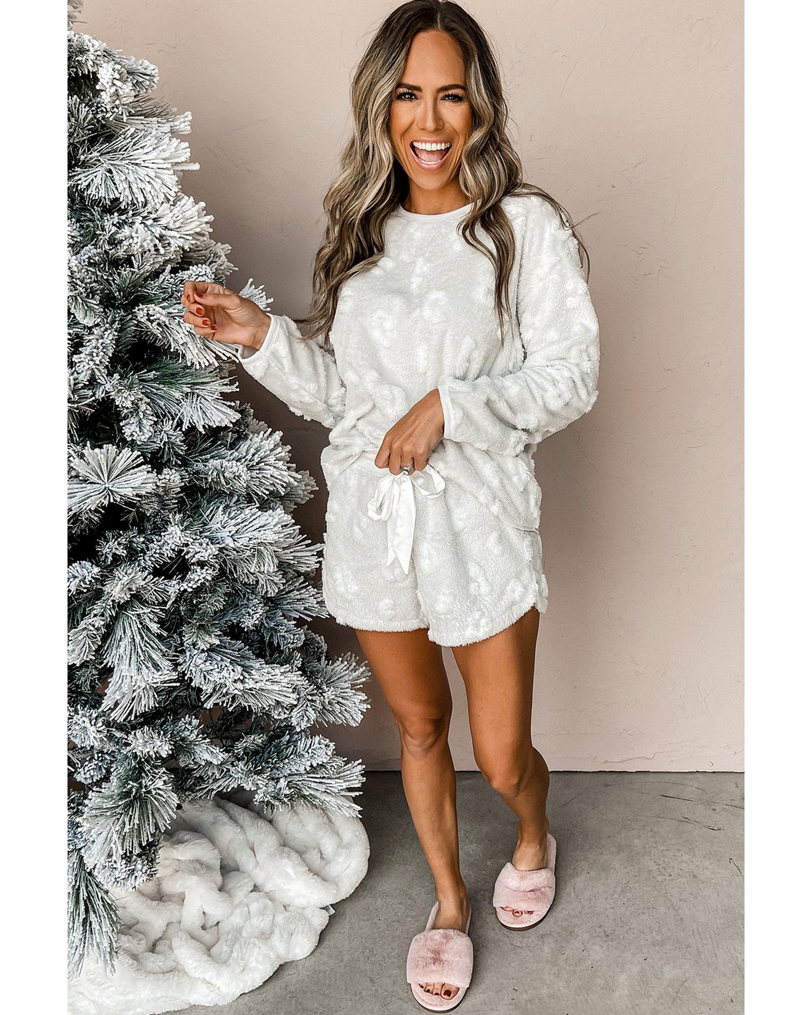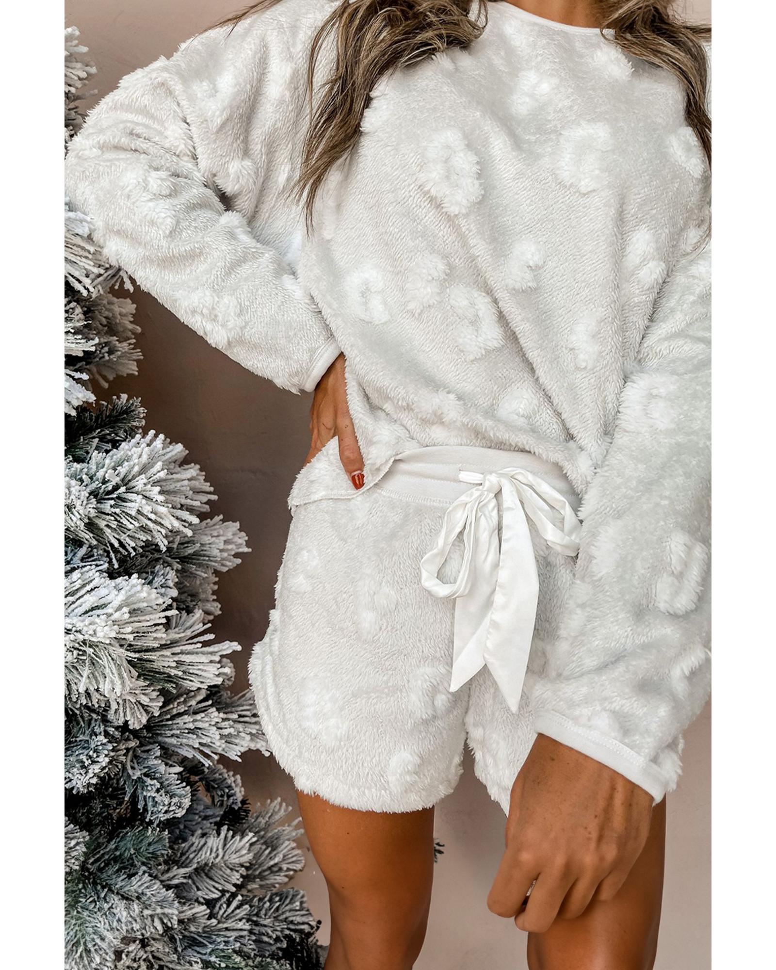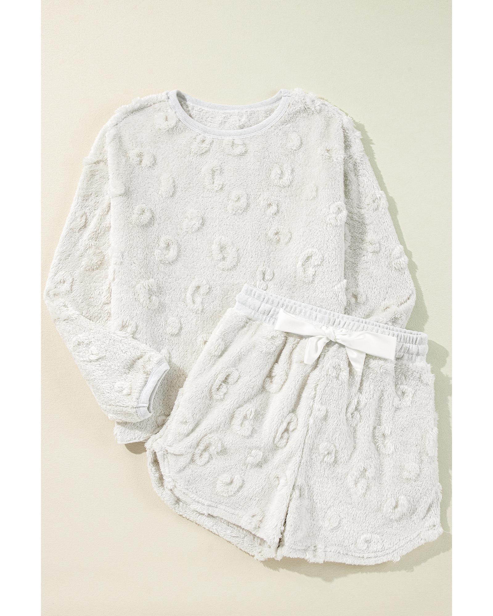 Light Grey Textured Leopard Fleece Loose Two Piece Lounge Set – M