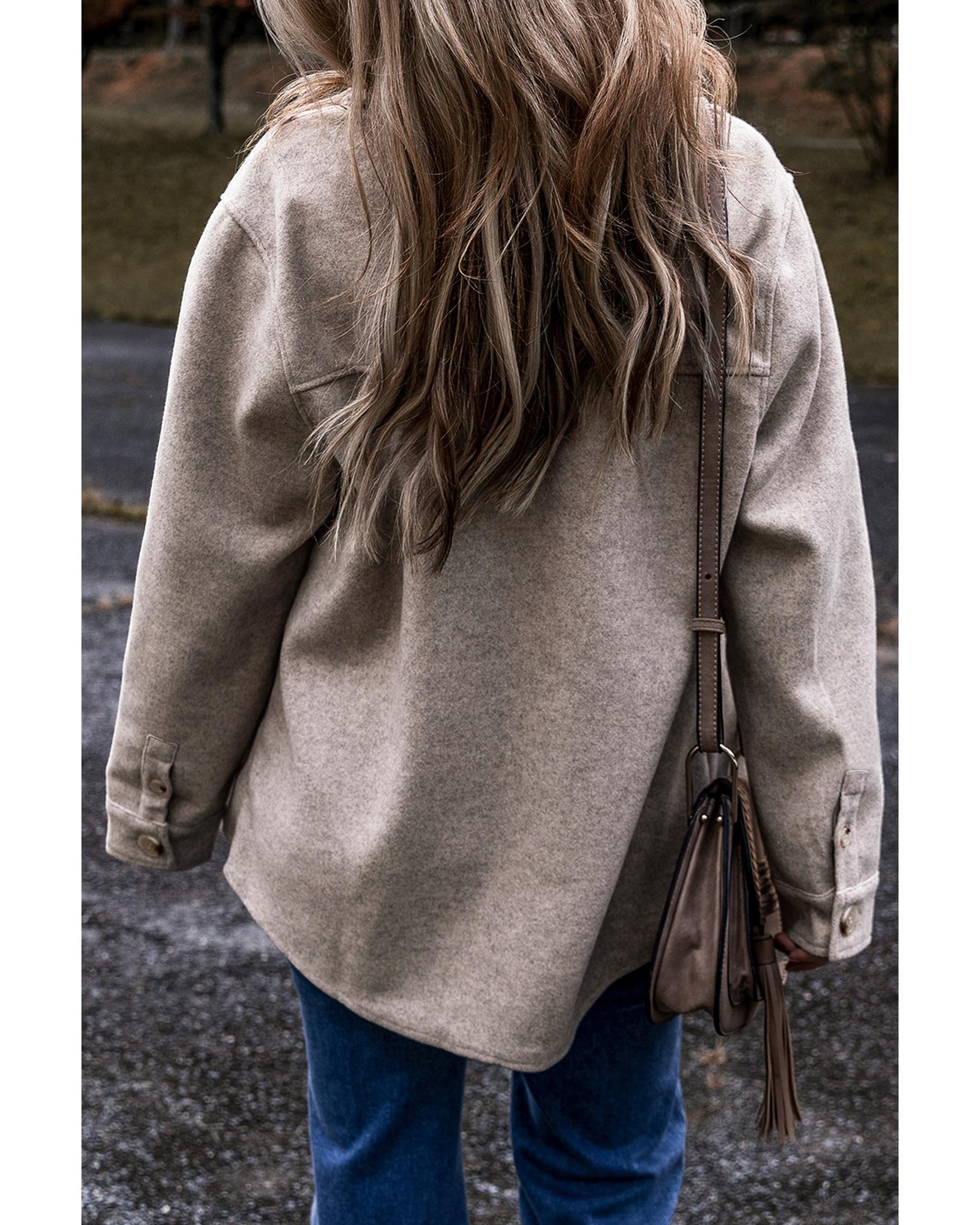 Light Grey Turn Down Collar Flap Pockets Buttoned Shacket – XL
