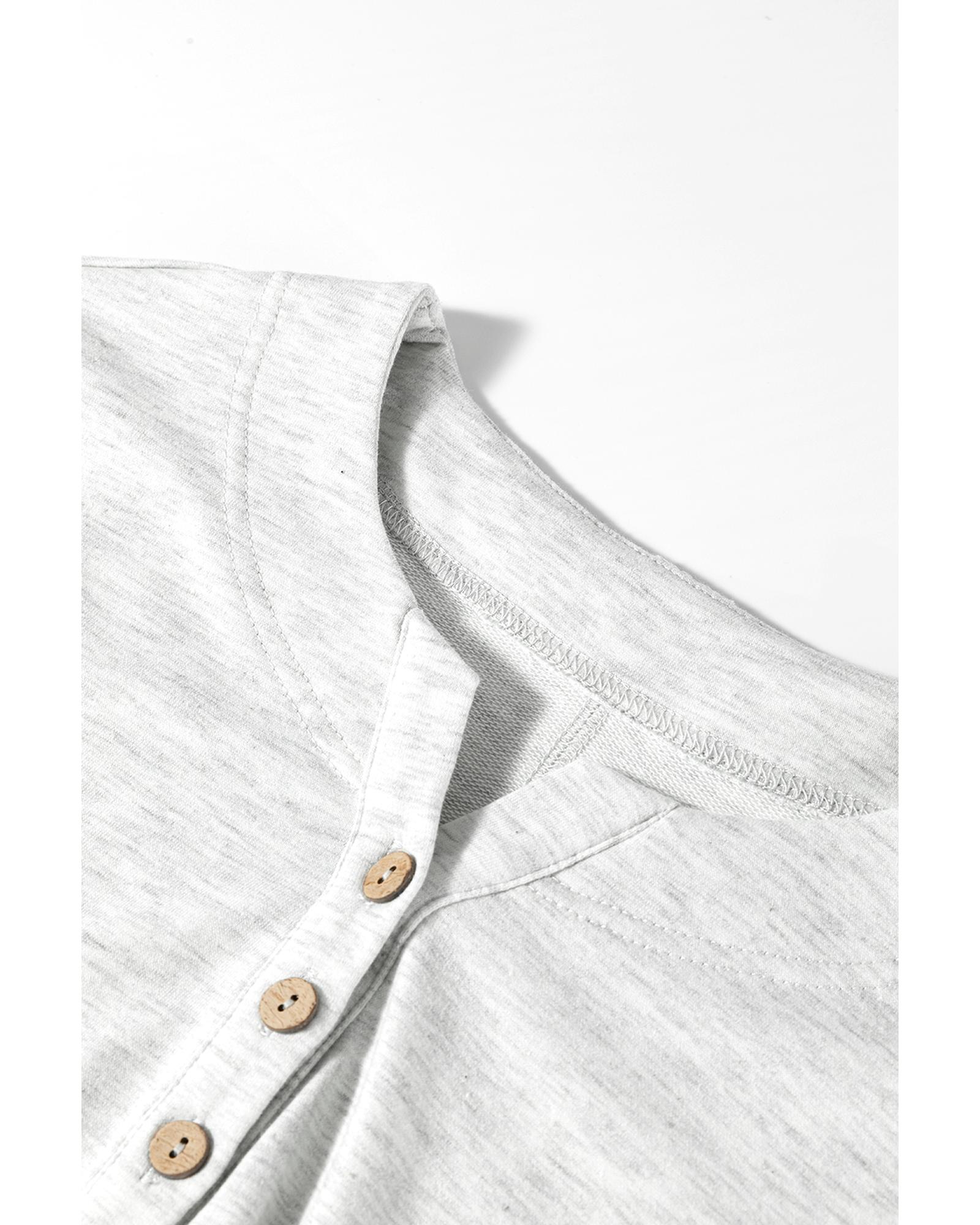 Light Grey Two Tone Contrast Waffle Knit Patched Buttoned V Neck Top – XL