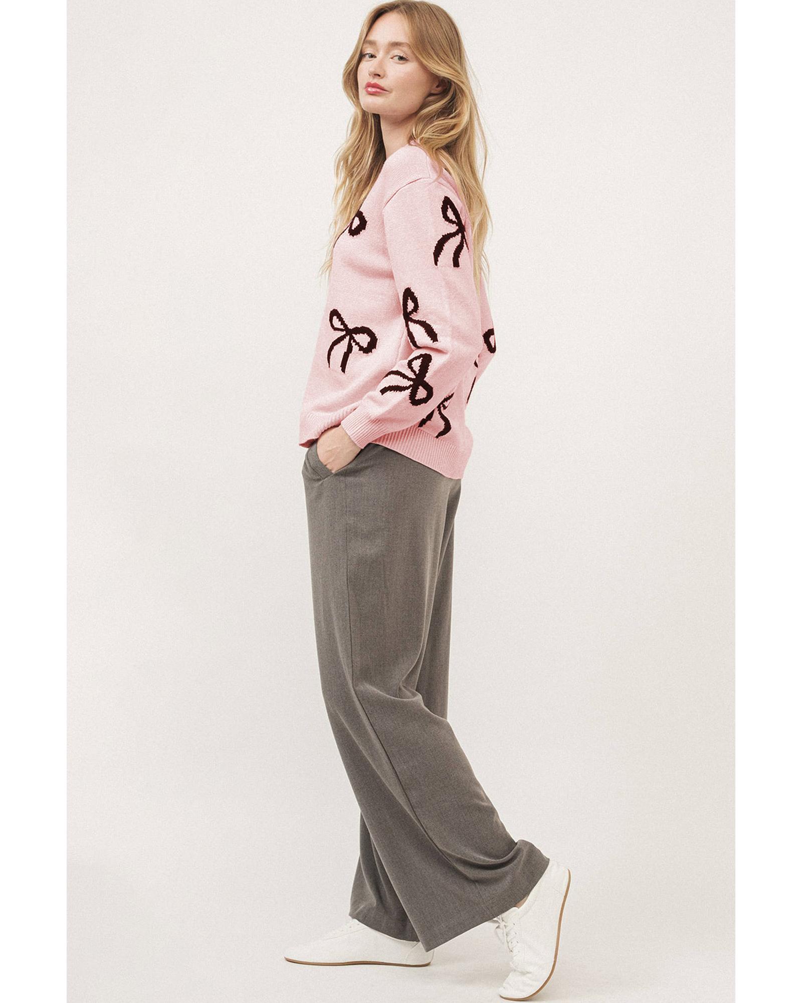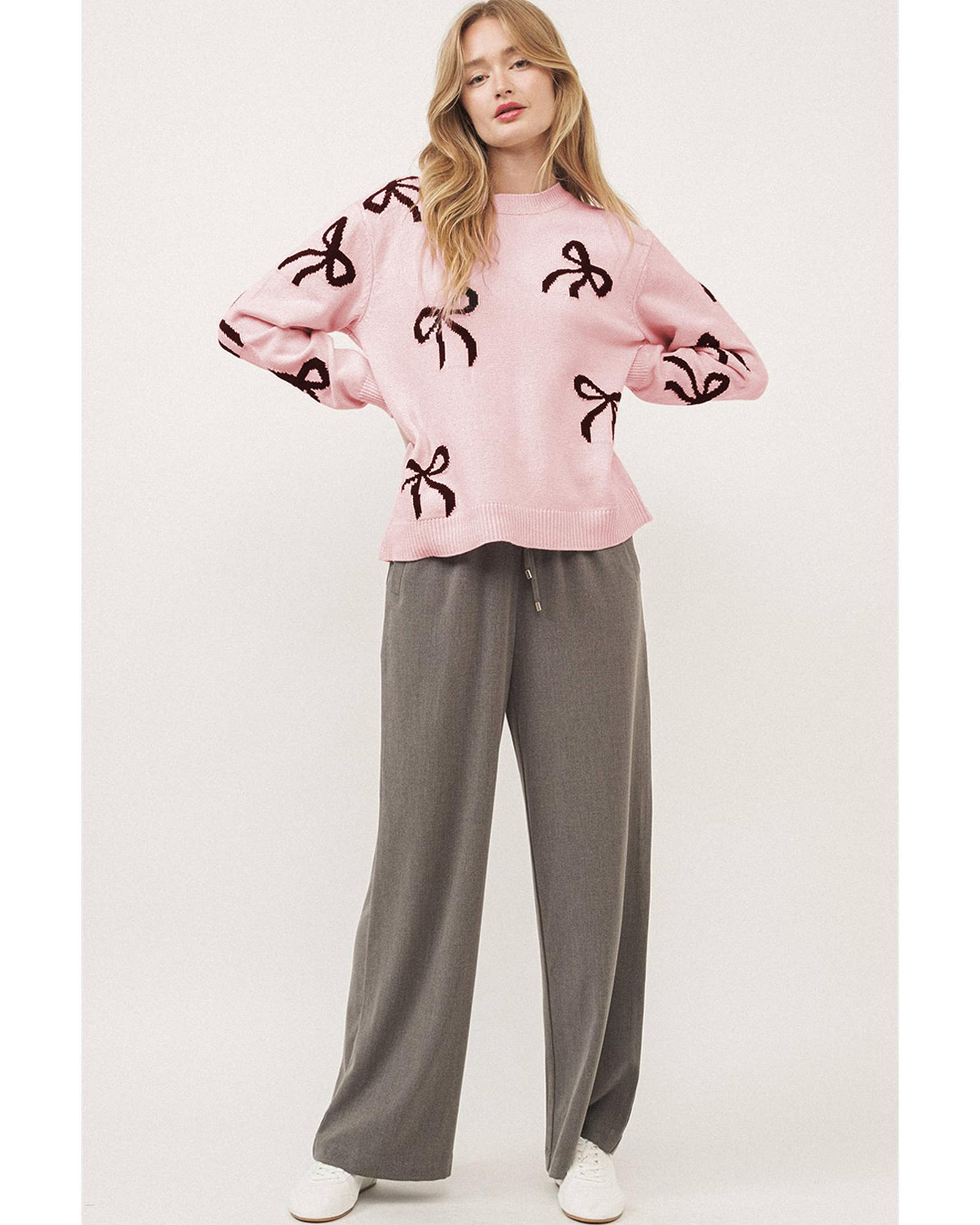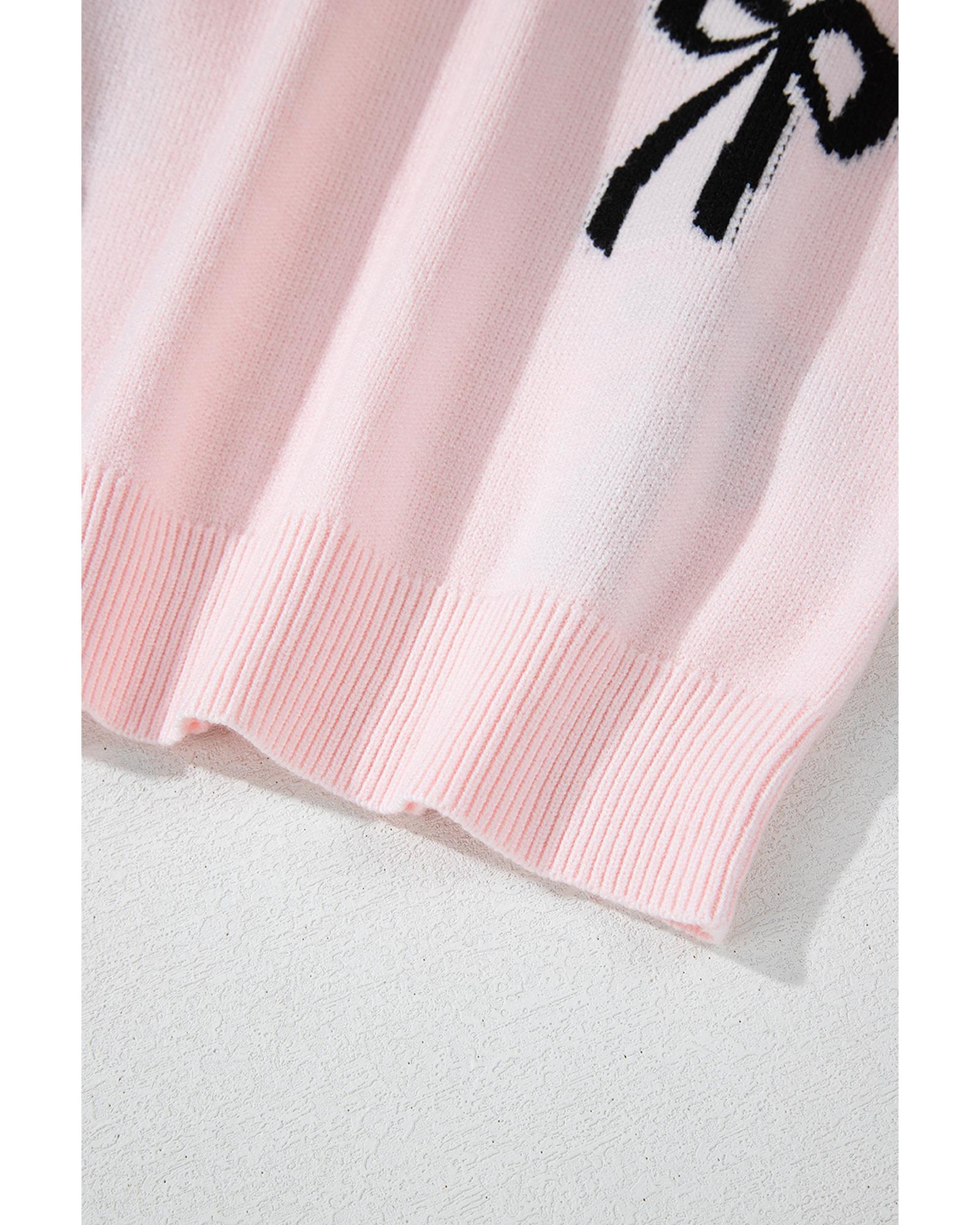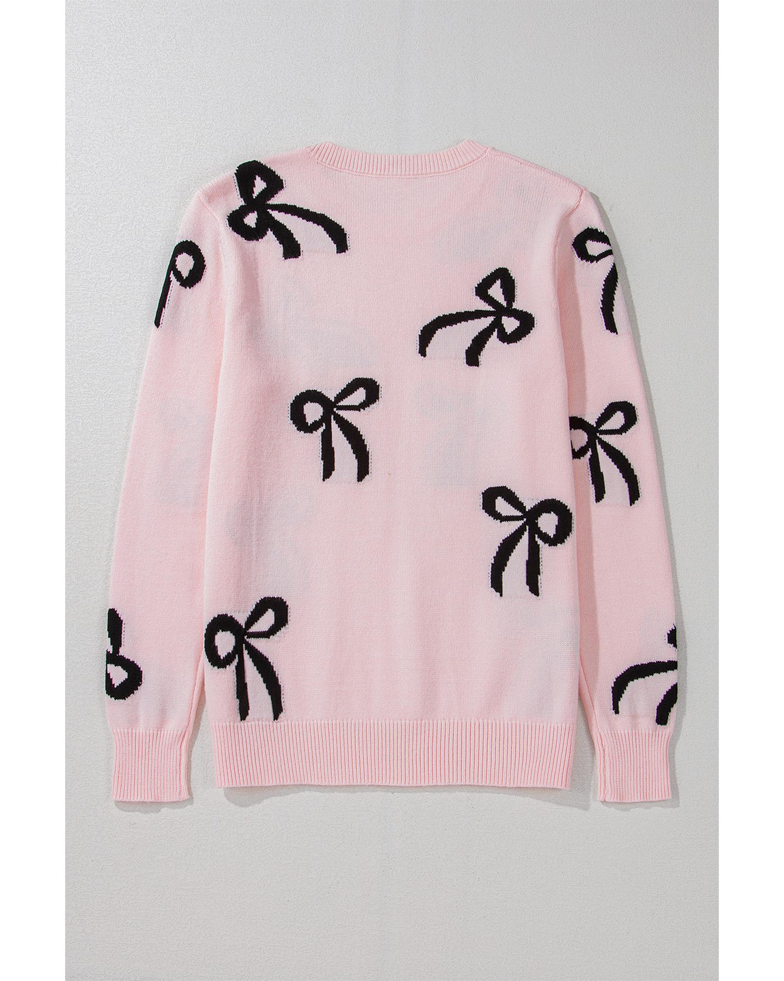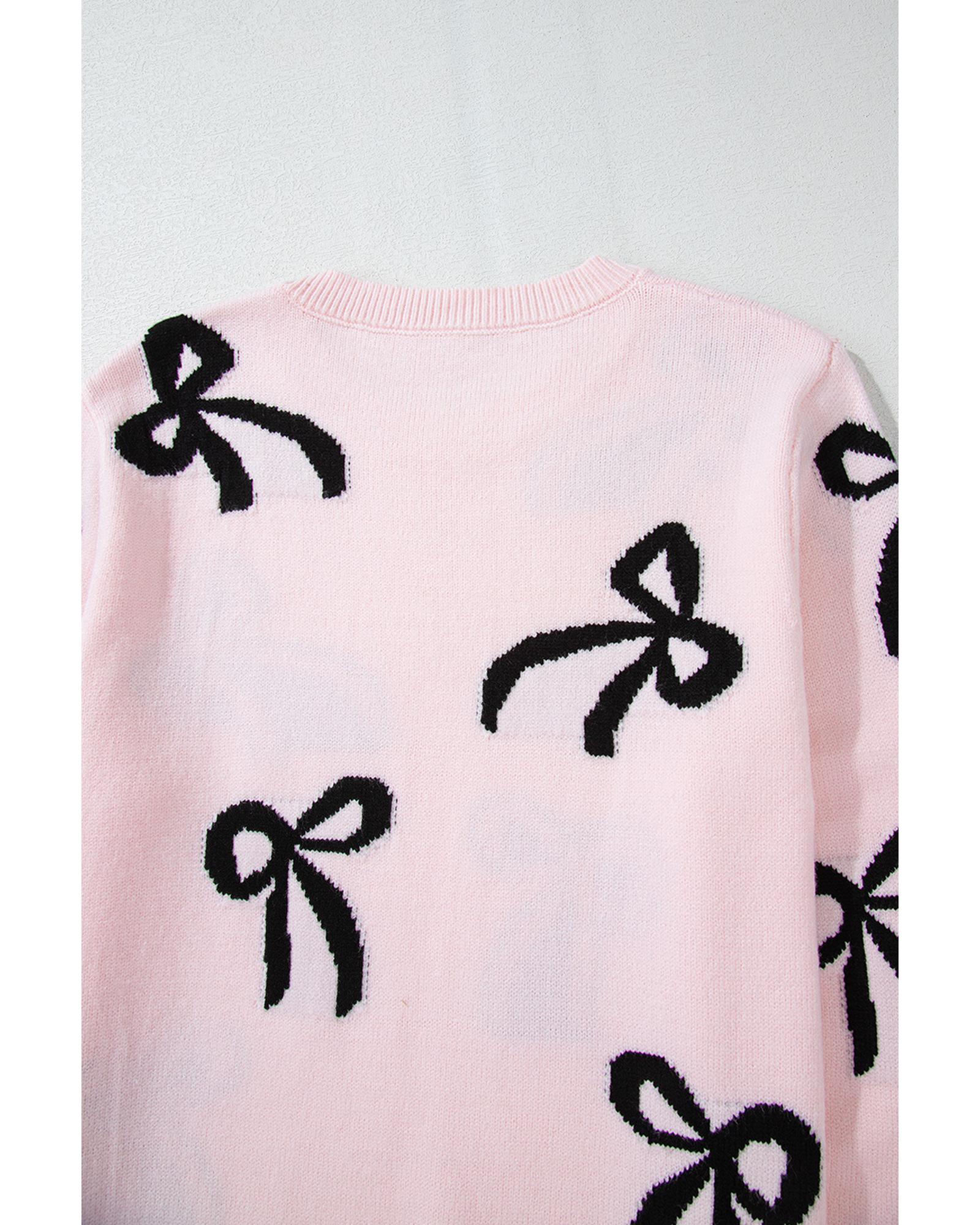 - Light Pink Bow Pattern Knitted Loose Fit Sweater