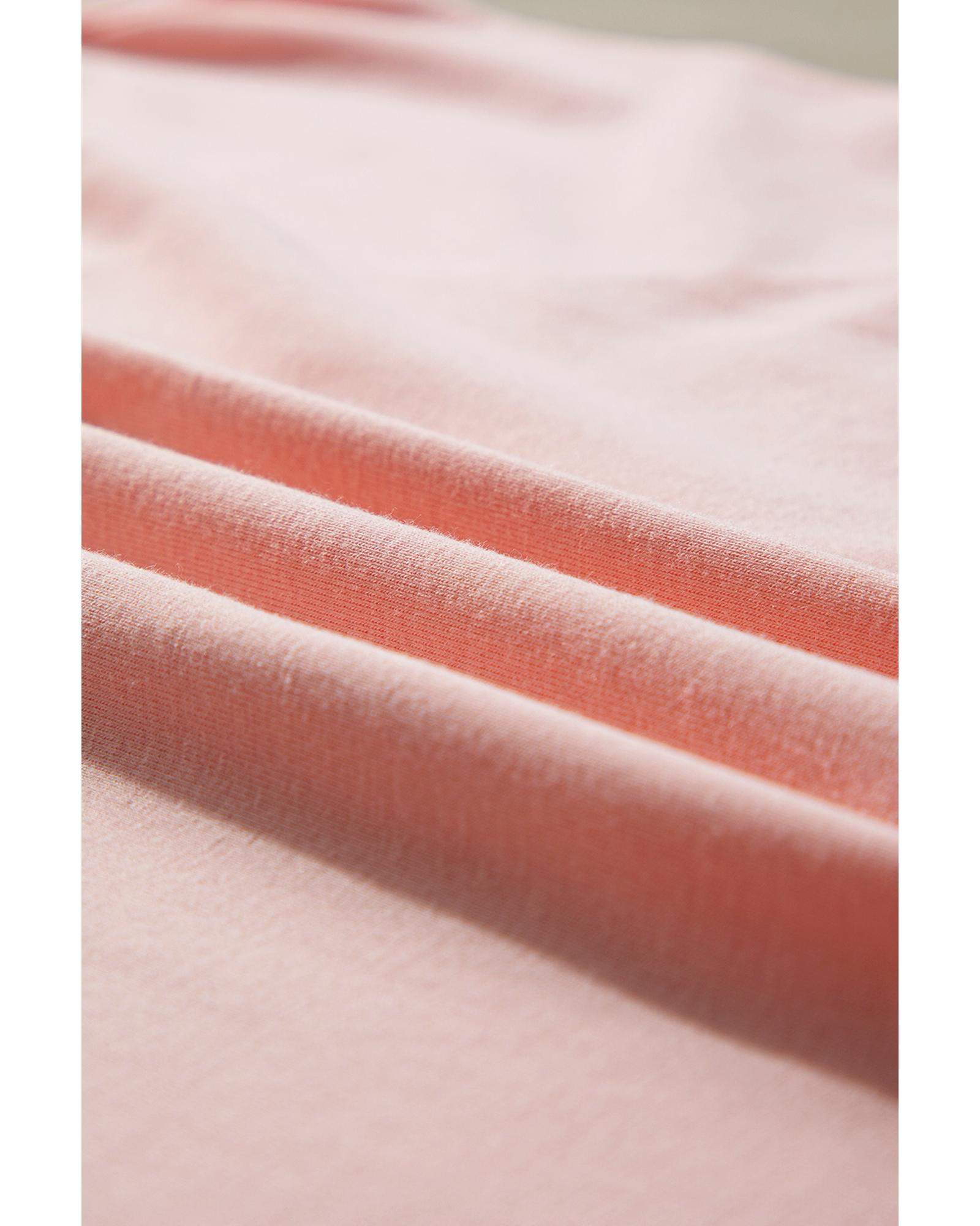 Dusty Pink Floral Patchwork Textured Knit Drawstring V Neck Blouse - S