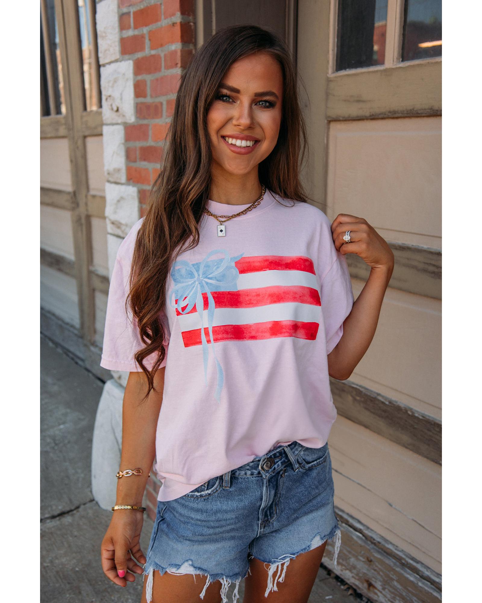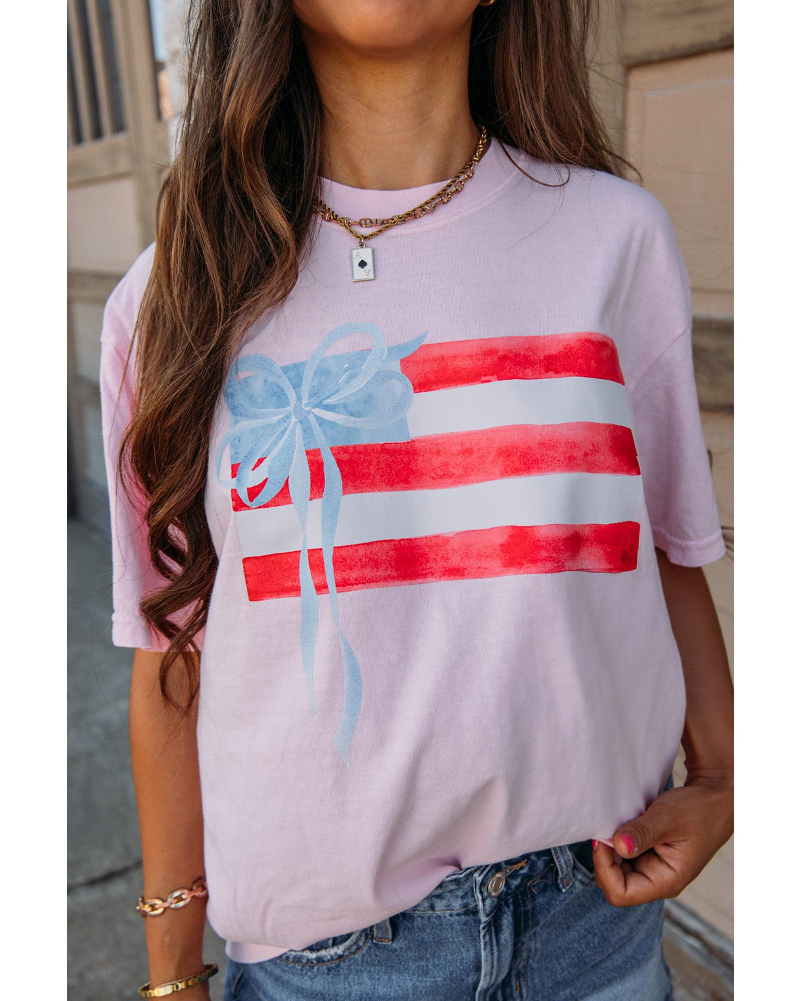 Light Pink Flag Bow Graphic Crewneck Tee – S