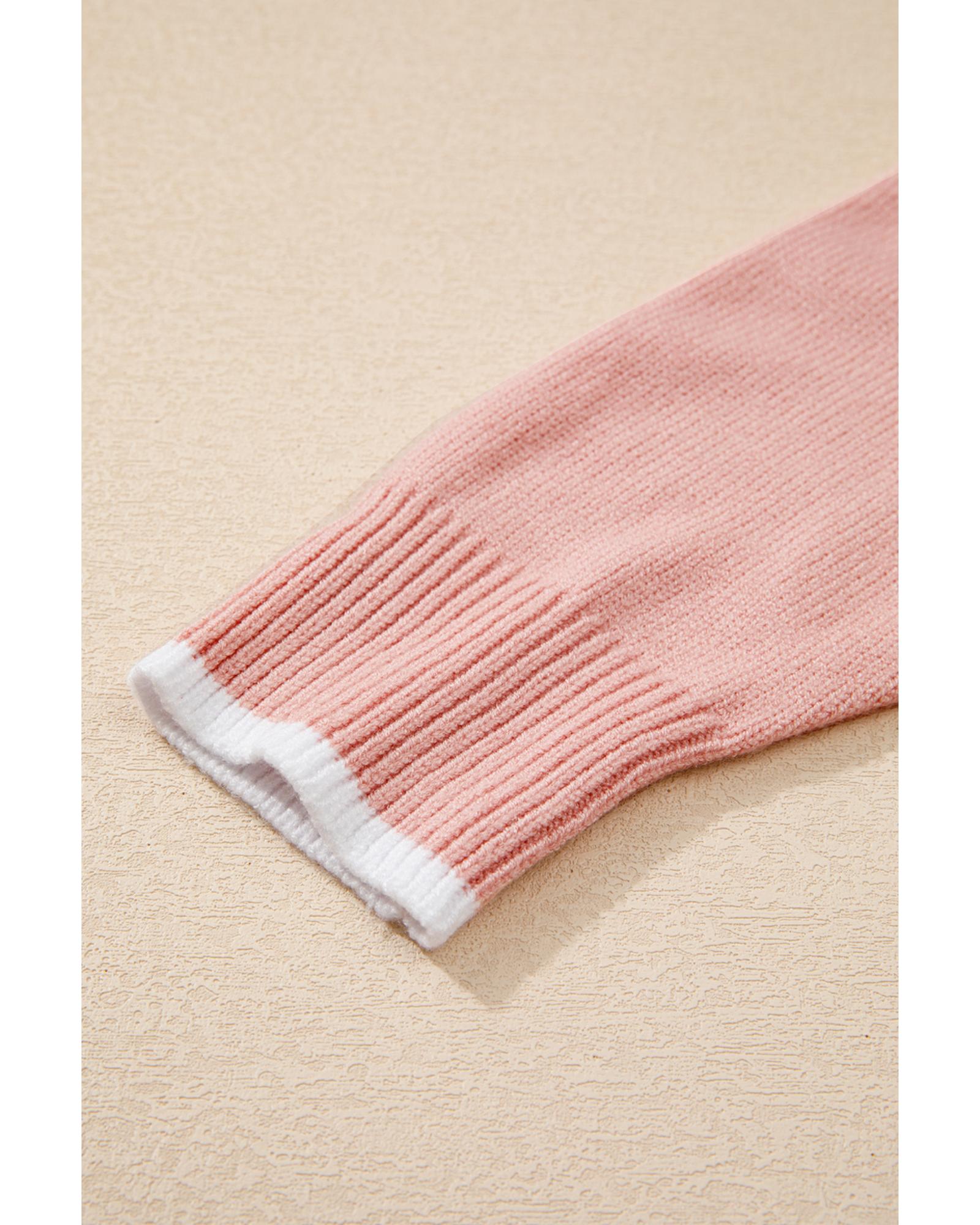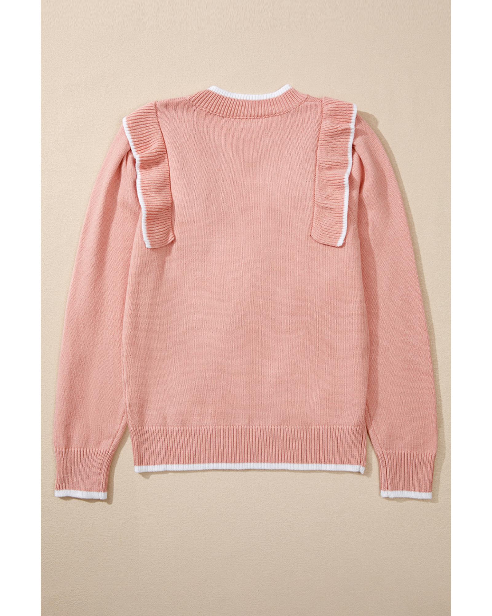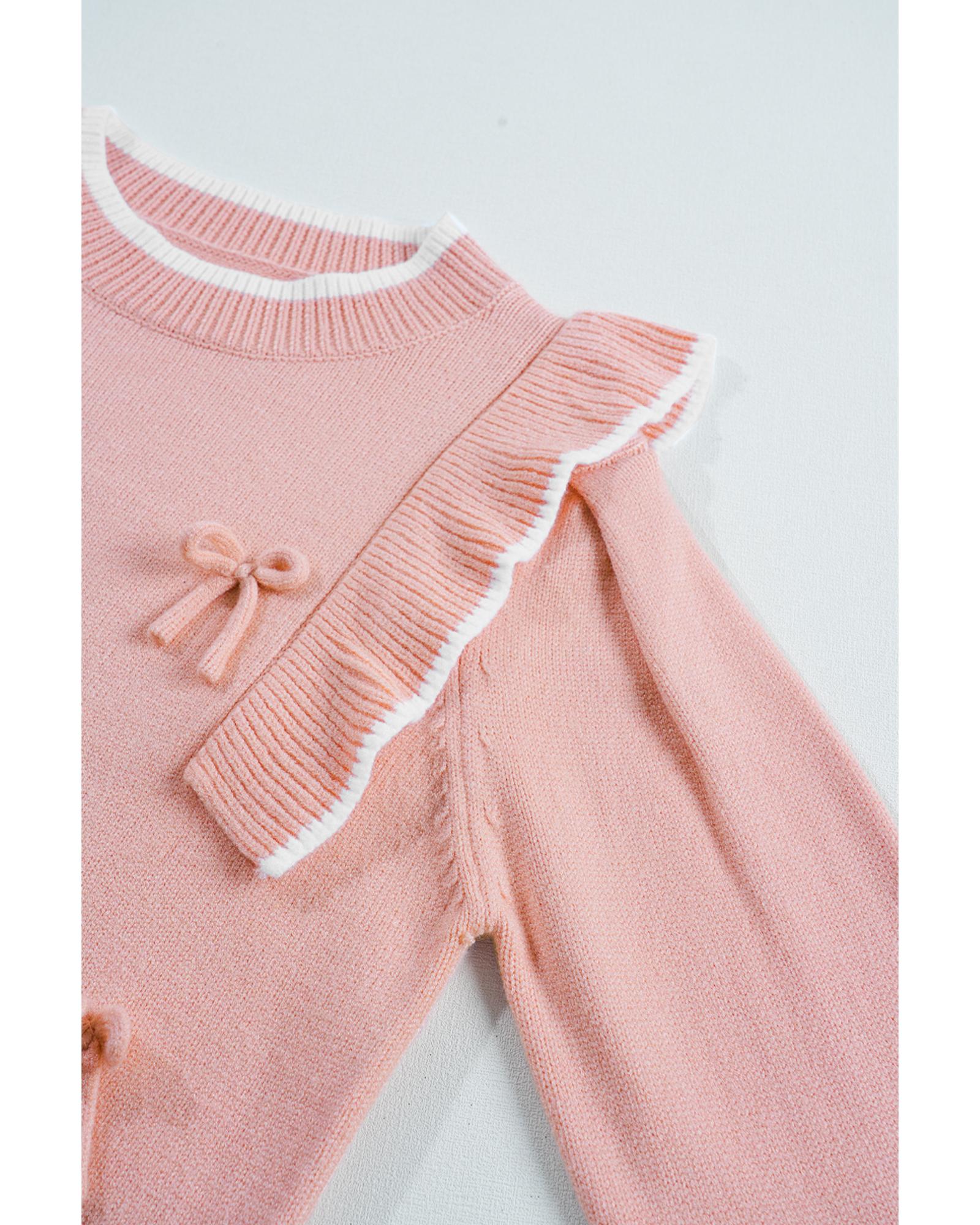 Light Pink Ruffled Bowknot Ribbed Trim Long Sleeve Sweater – XL