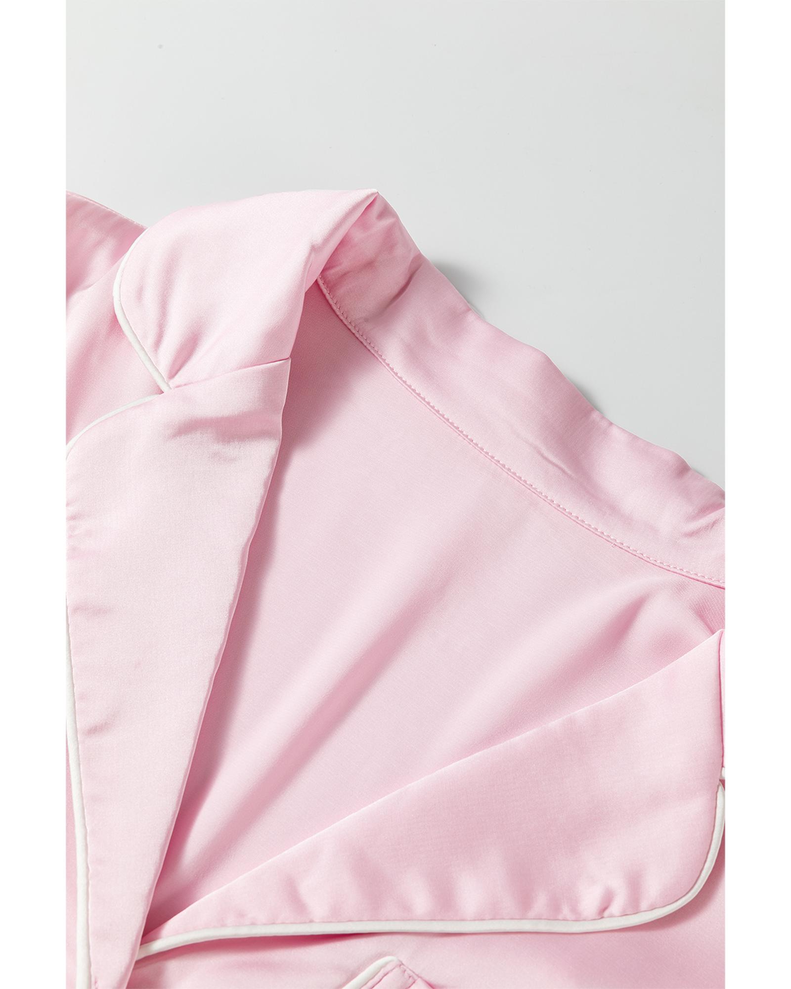 Light Pink Satin Knot Accent Shirt and Ruffled Pants Lounge Set – L