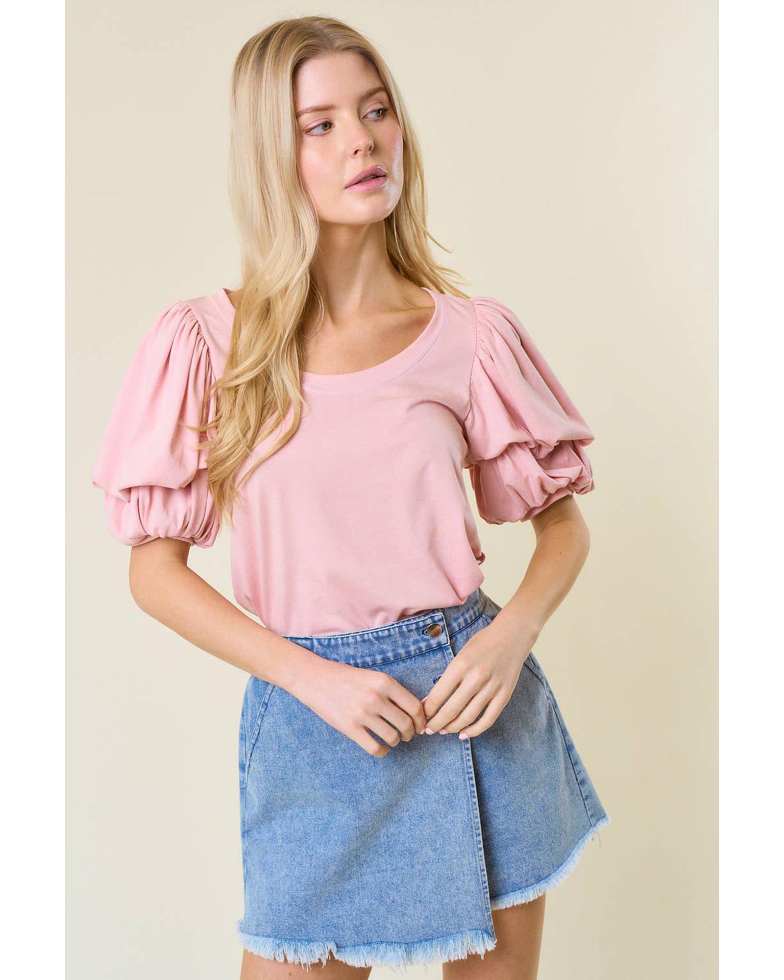 Light Pink Scoop Neck Bubble Sleeve Tee – M