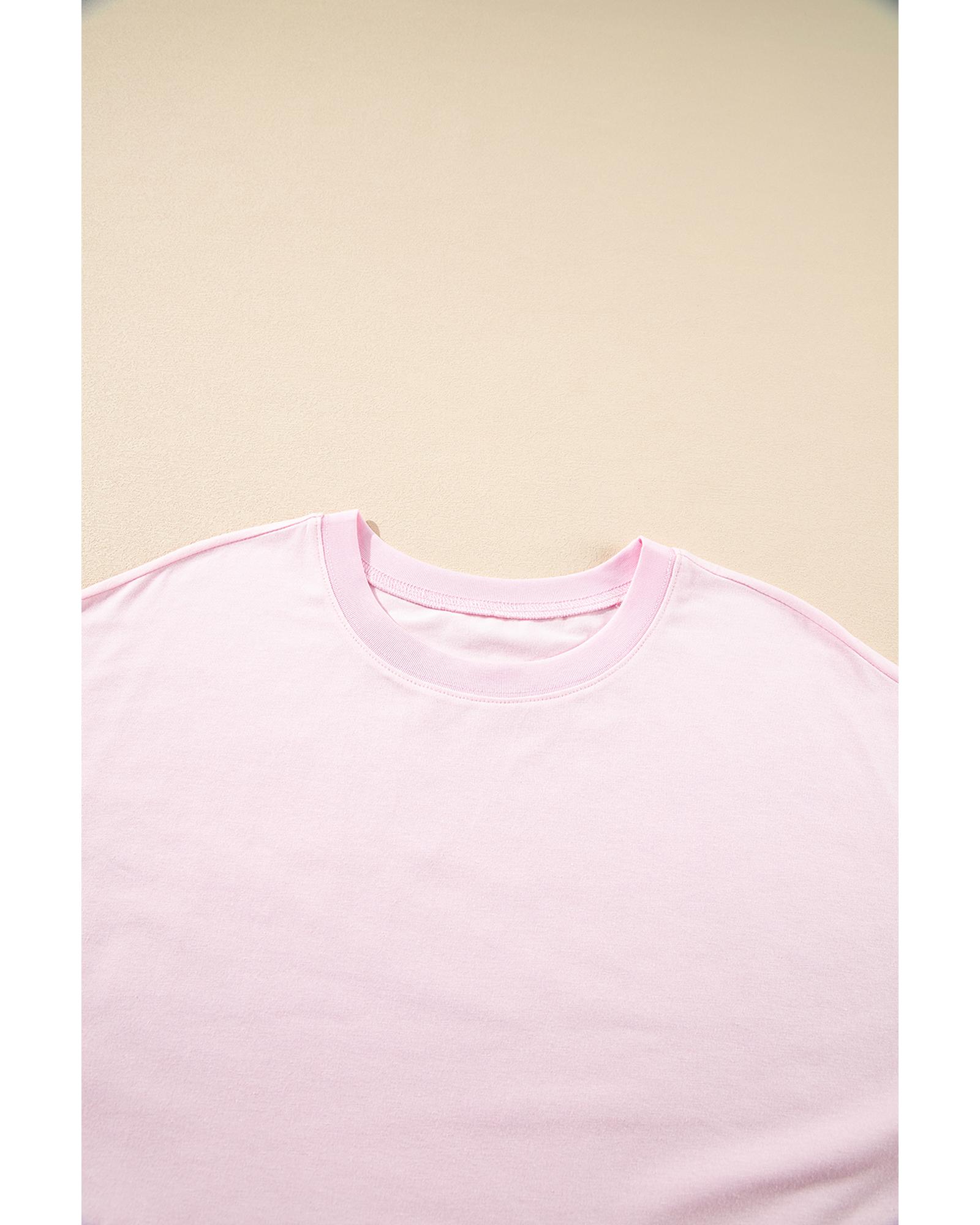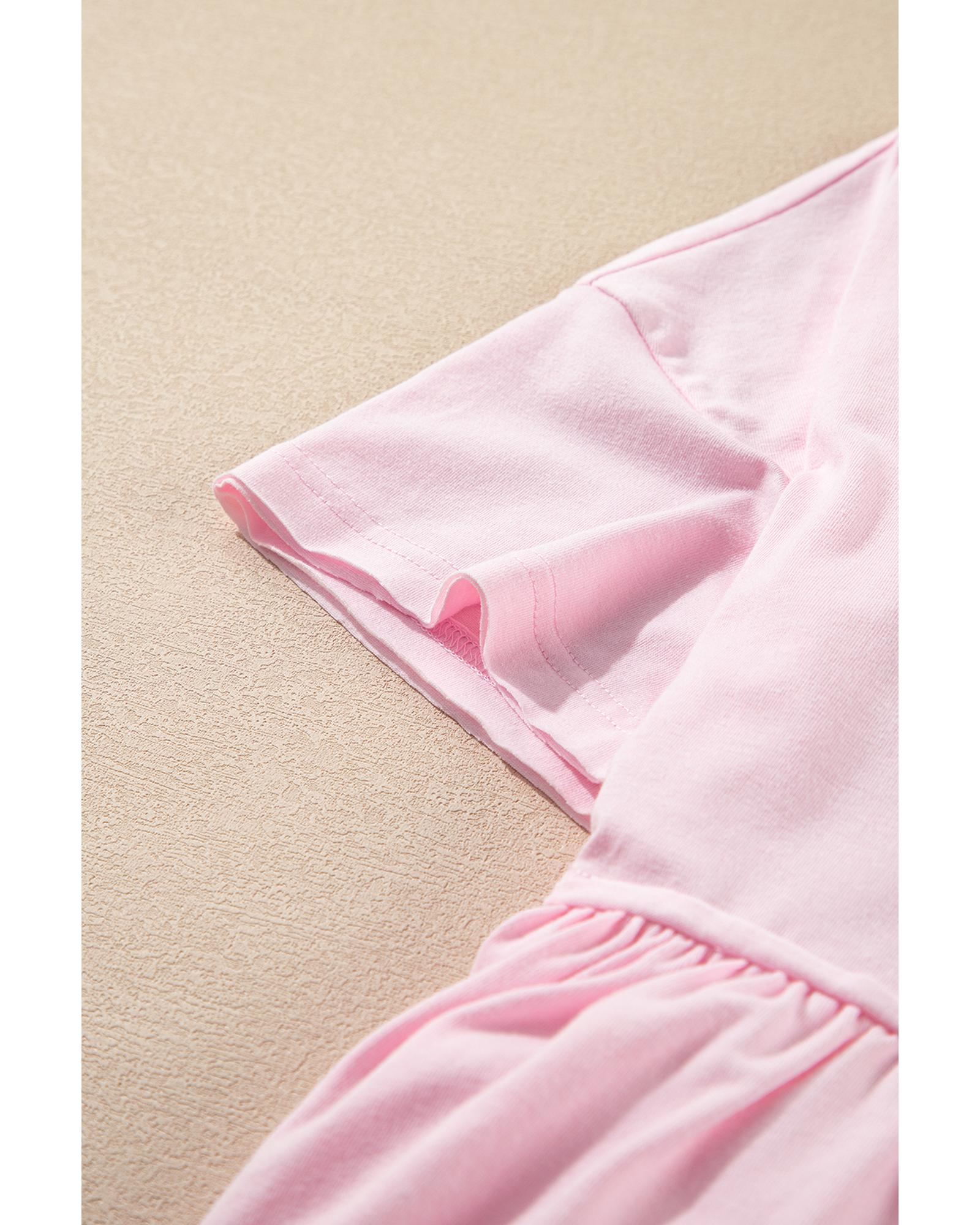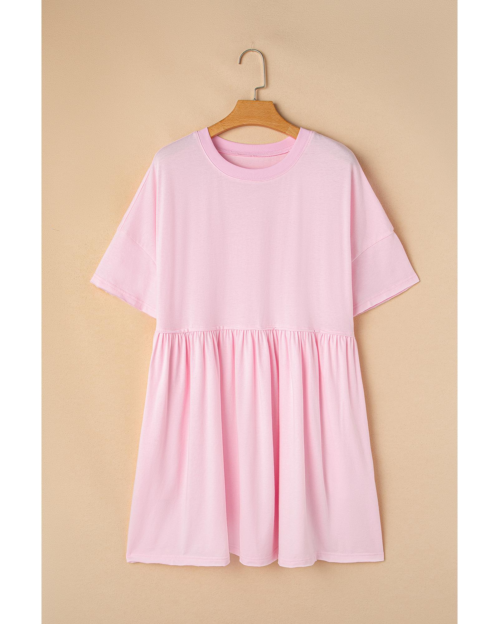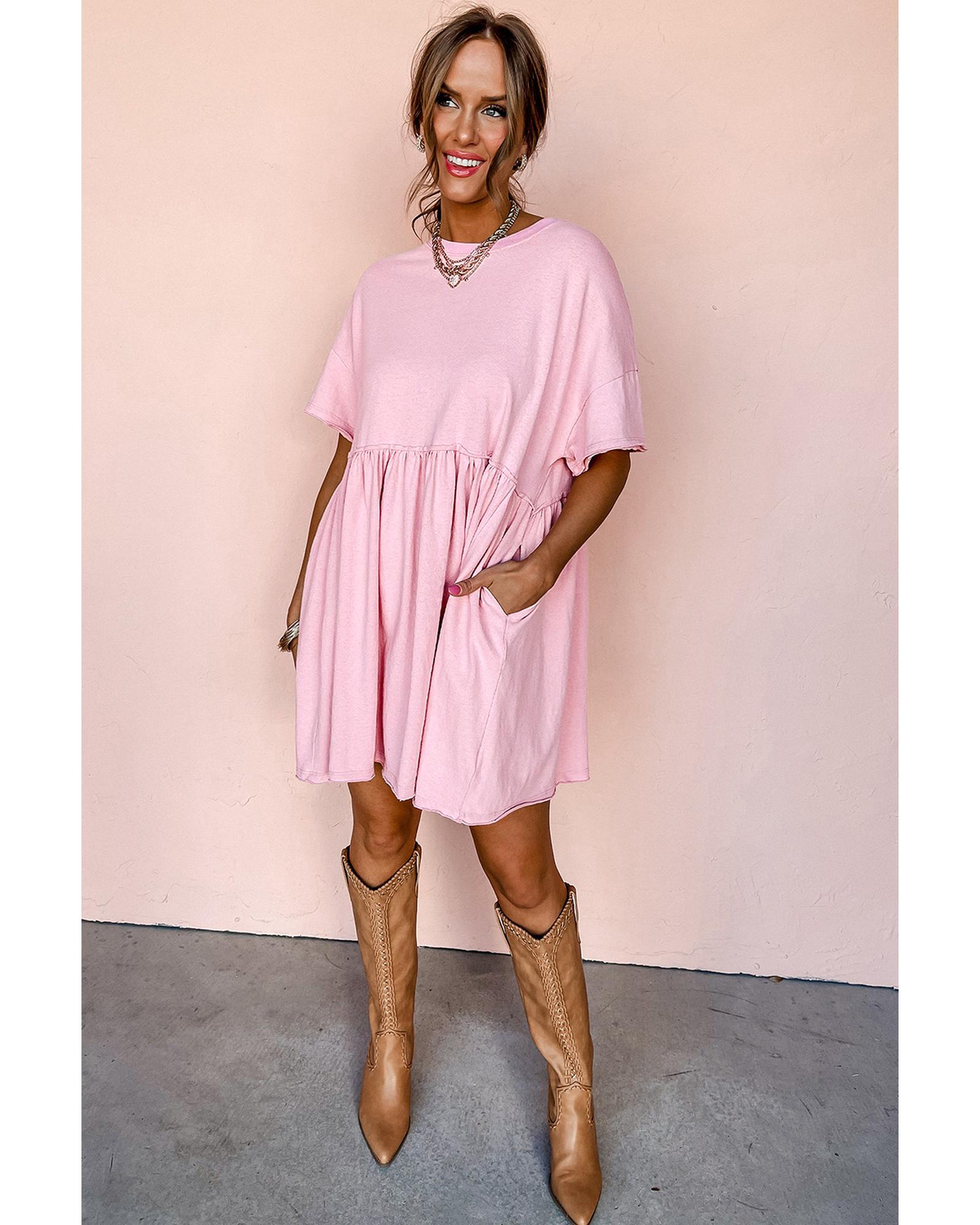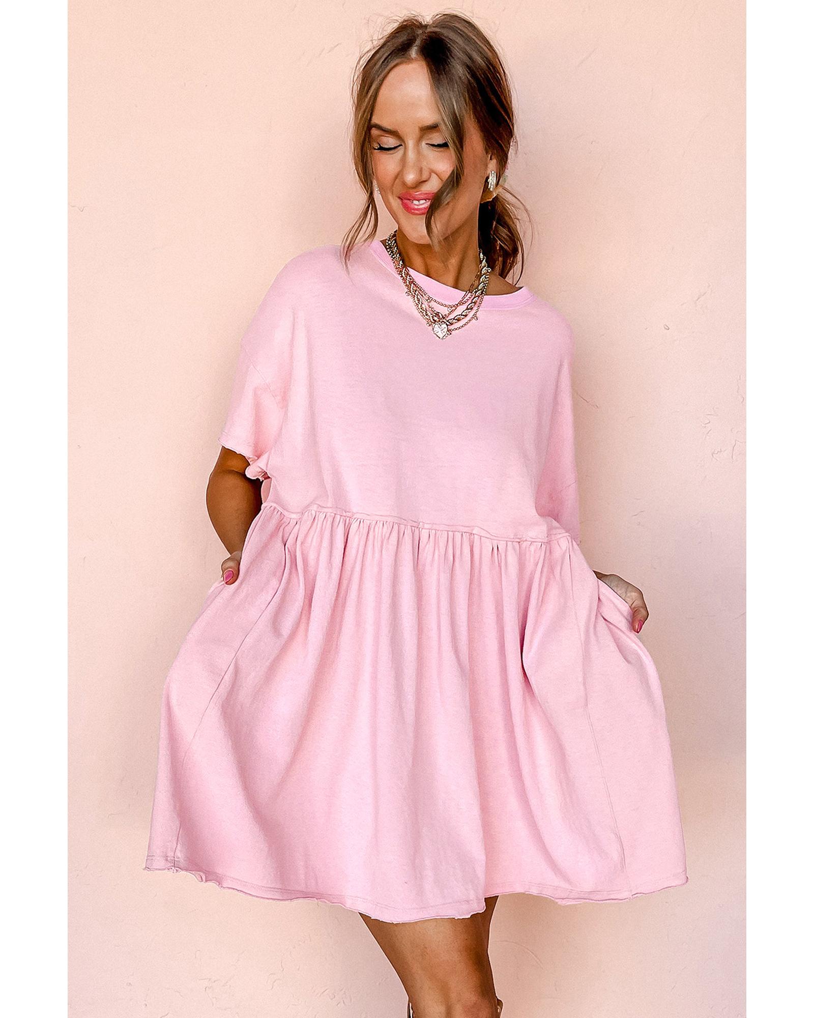 Light Pink Solid Color Pocketed Raw Edge Babydoll Dress – L