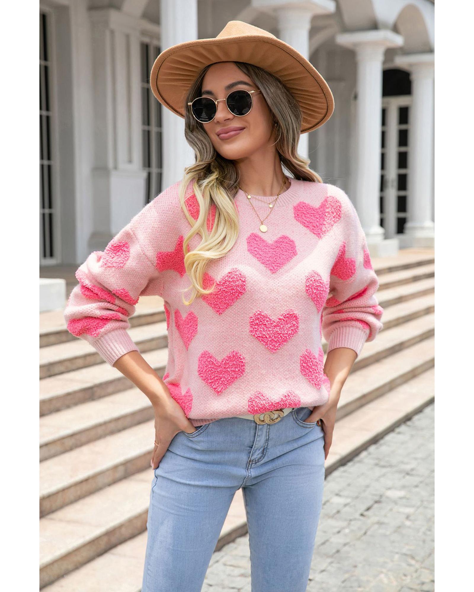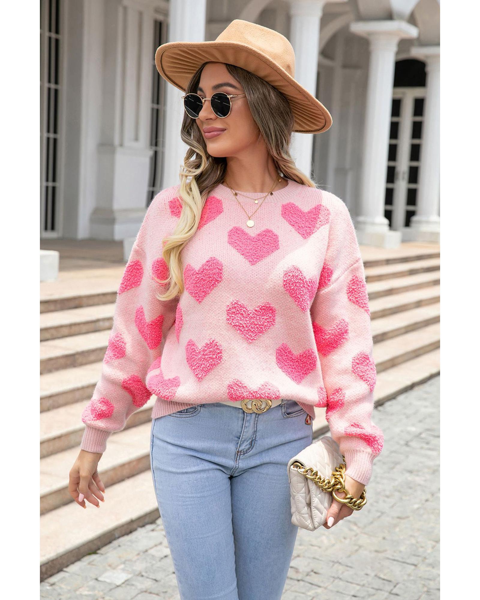 • Light Pink Valentine’s Day Heart Jacquard Knit Sweater