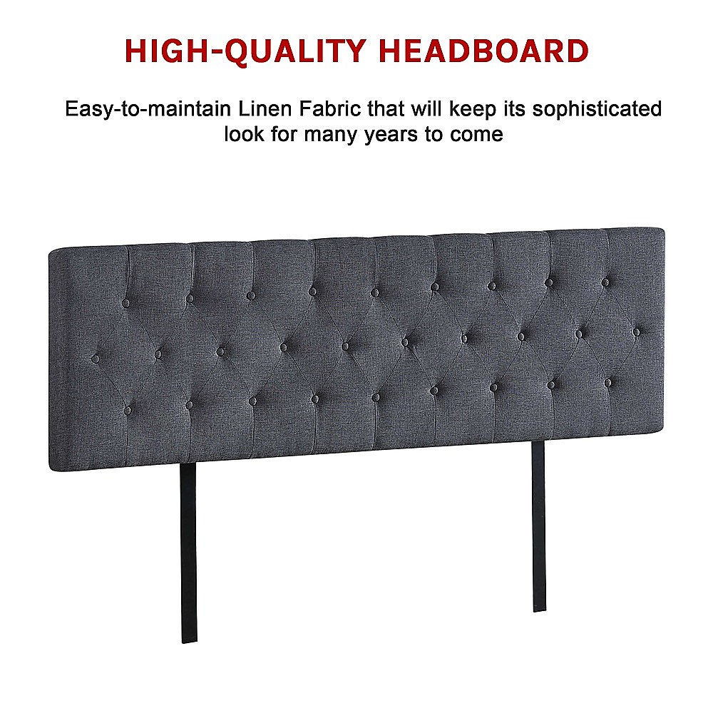 Linen Fabric Queen Bed Deluxe Headboard Bedhead - Grey
