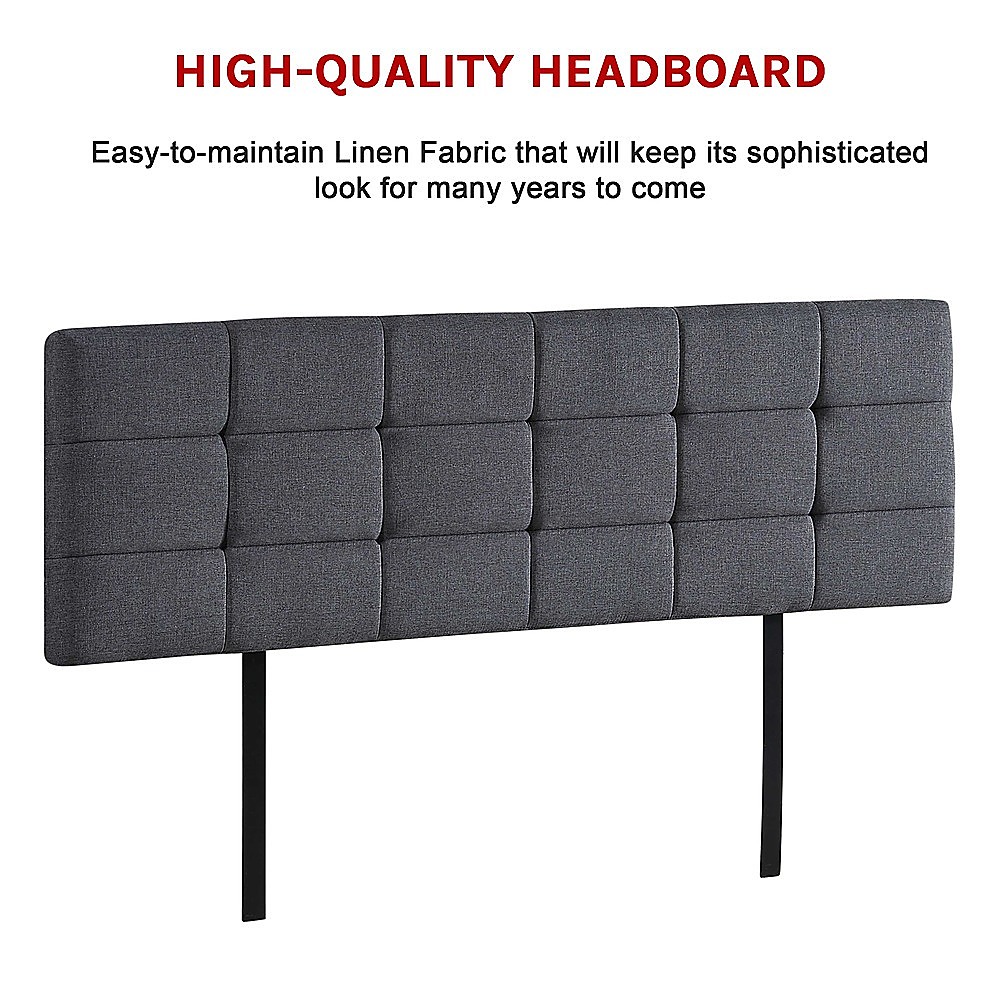 Linen Fabric King Bed Deluxe Headboard Bedhead – Grey