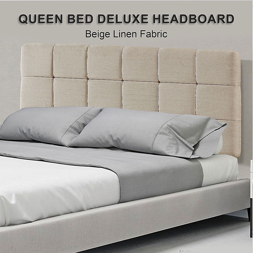 Linen Fabric Queen Bed Deluxe Headboard Bedhead – Beige