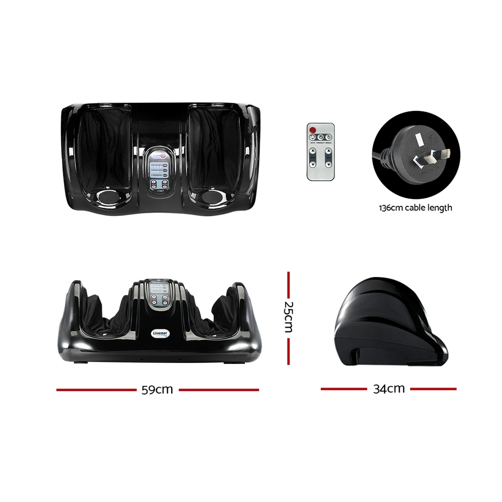 Livemor Foot Massager Shiatsu Massagers Electric Remote Roller Kneading Black