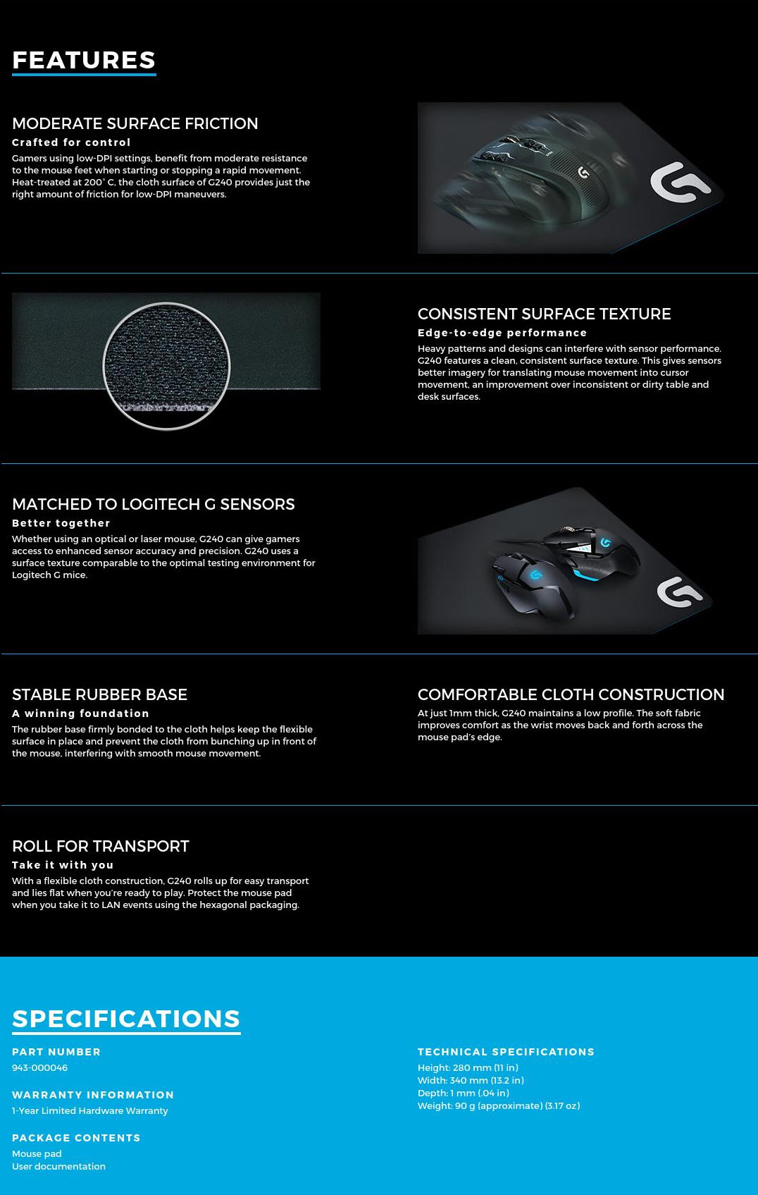 Logitech G240 Cloth Gaming Mouse Pad (943-000046)